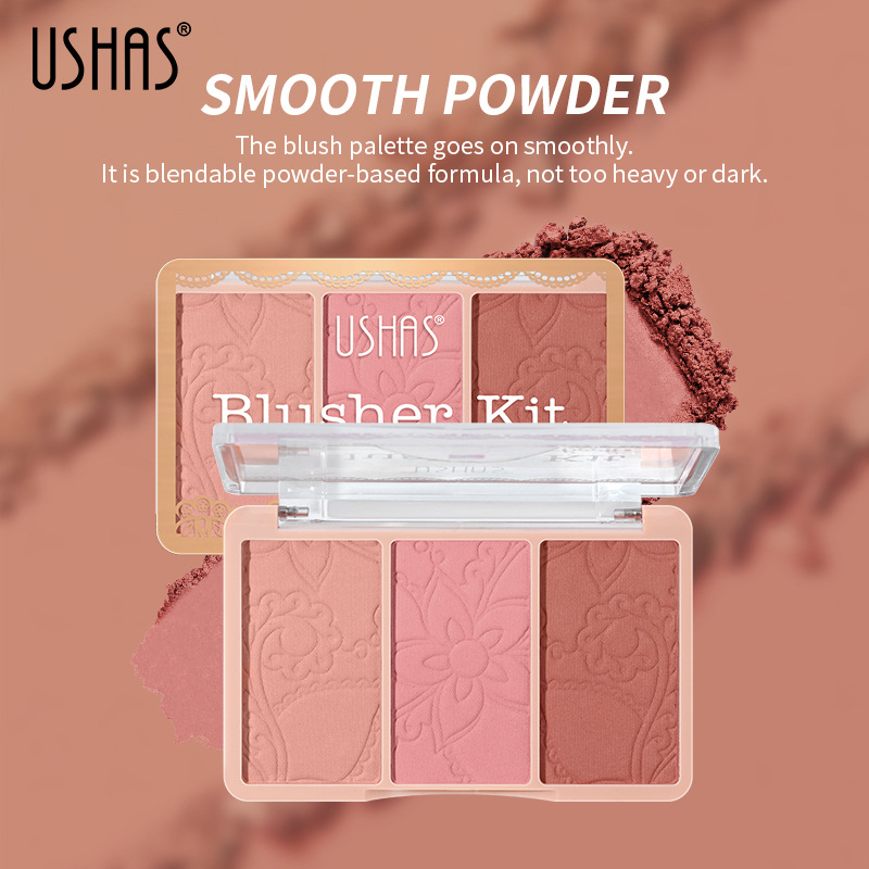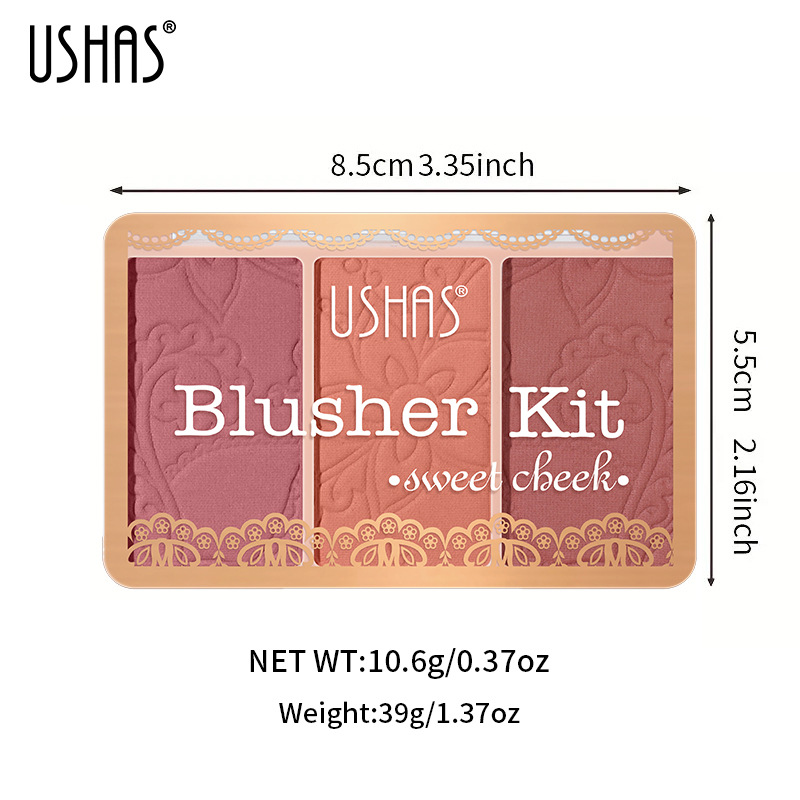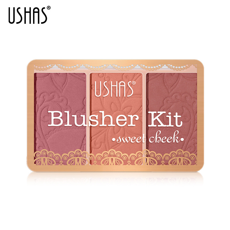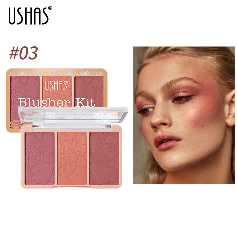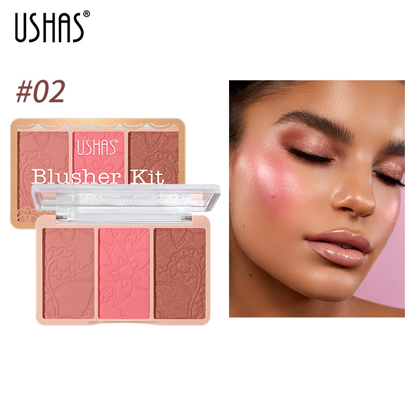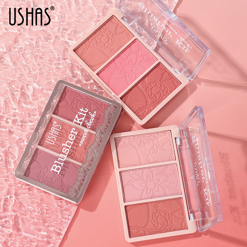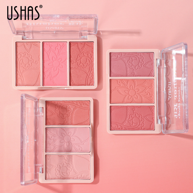 USHAS Amazon mezcla transfronteriza colorete degradado de tres colores plato de reparación de maquillaje desnudo natural rosa no es fácil de volar