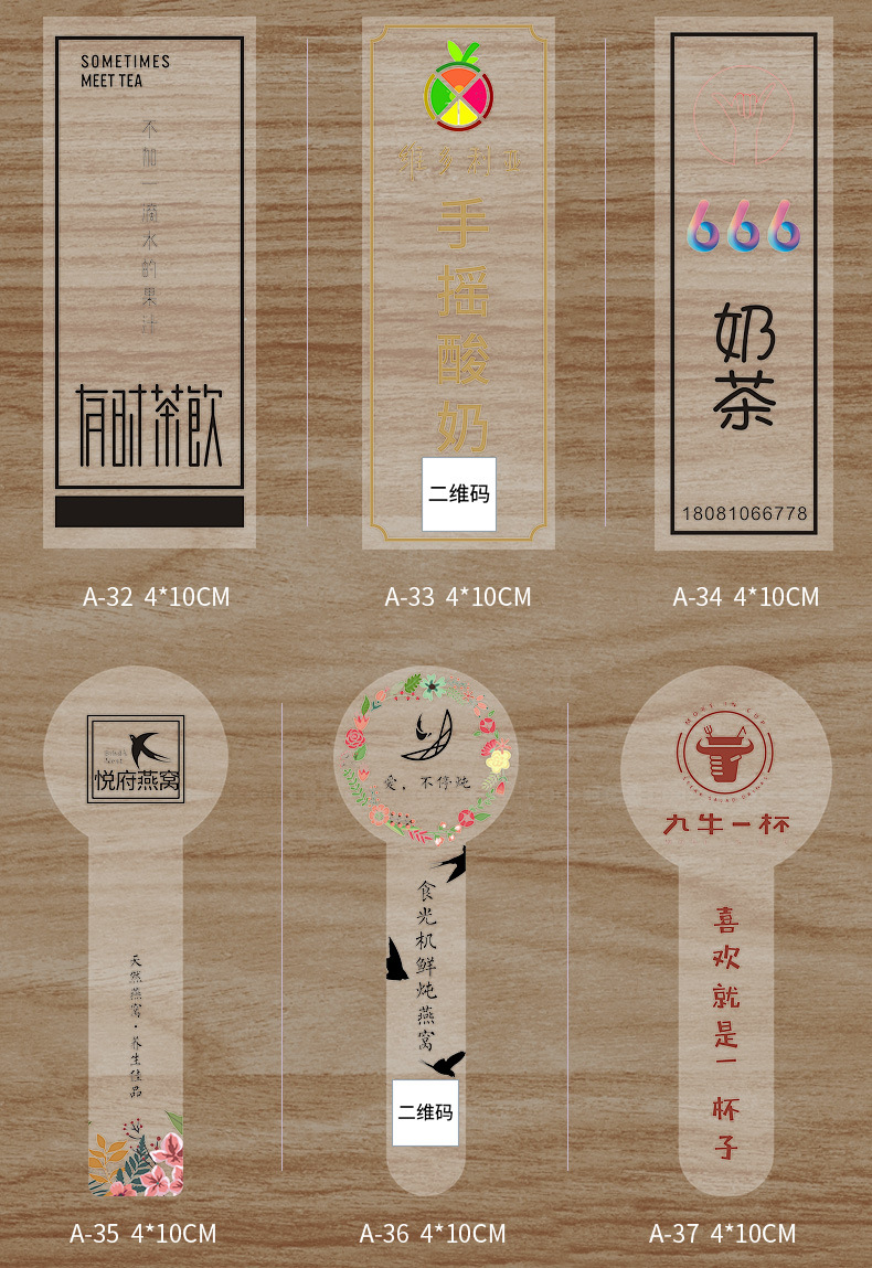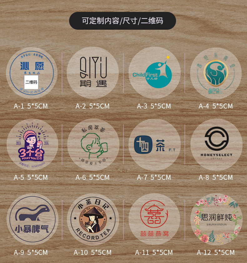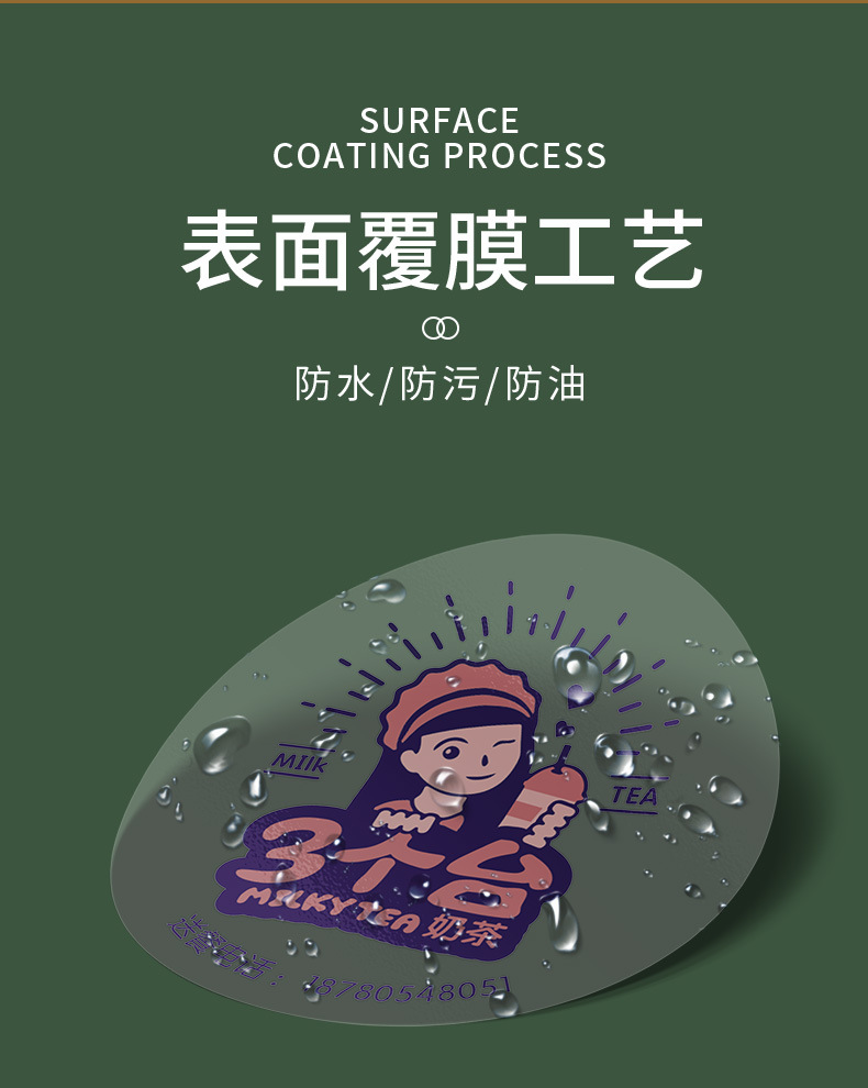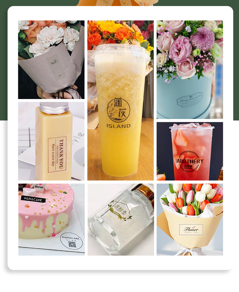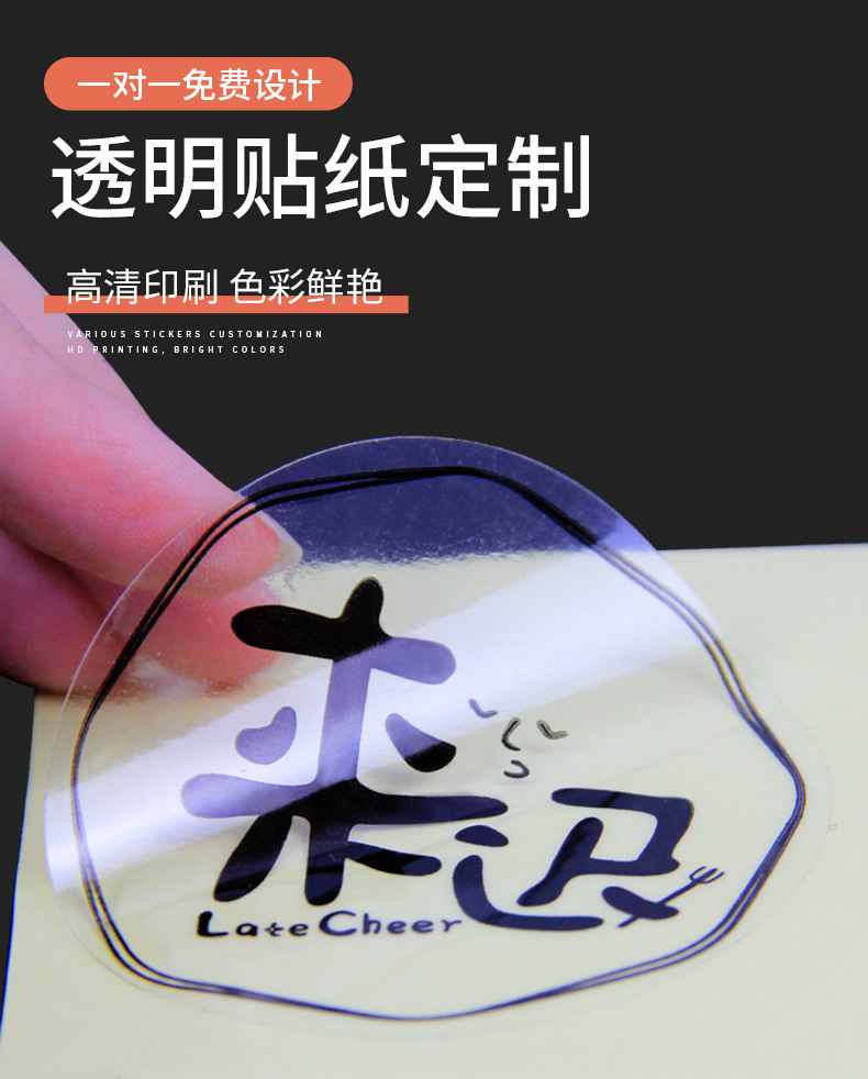 Etiqueta de taza de té con leche transparente, etiqueta adhesiva, logotipo redondo, sello, impresión, café. Adhesivo de código QR PV para llevar en la tienda