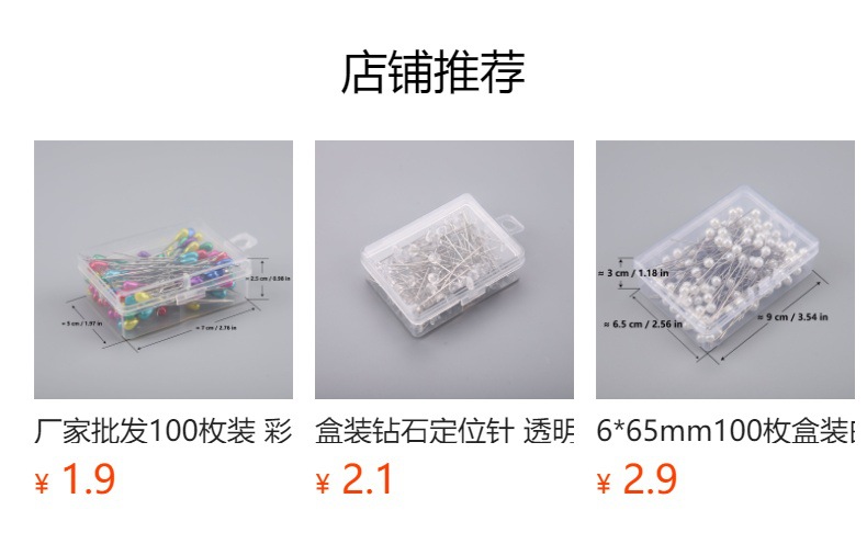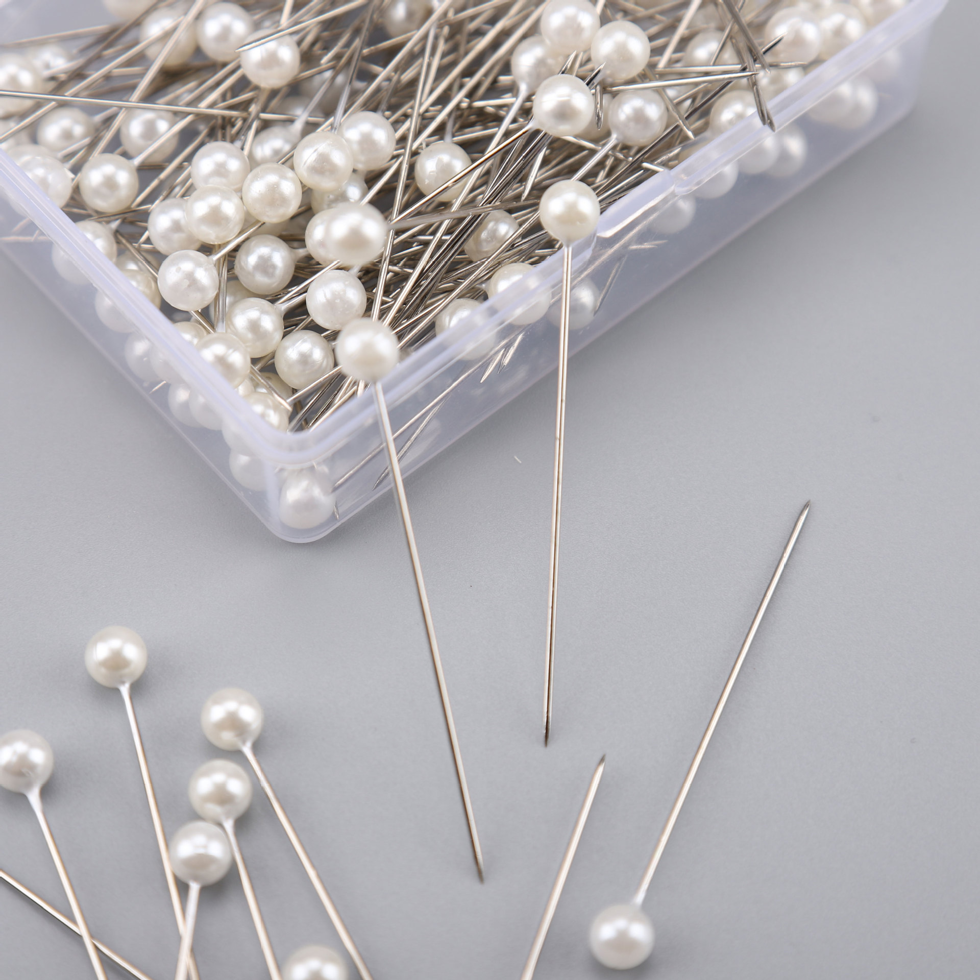 6*65 mm100 accesorios en caja, aguja decorativa fija, aguja perlada brillante, aguja perlada blanca