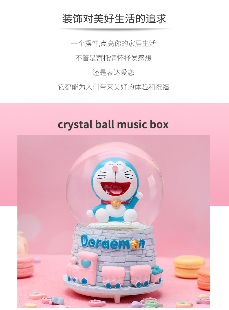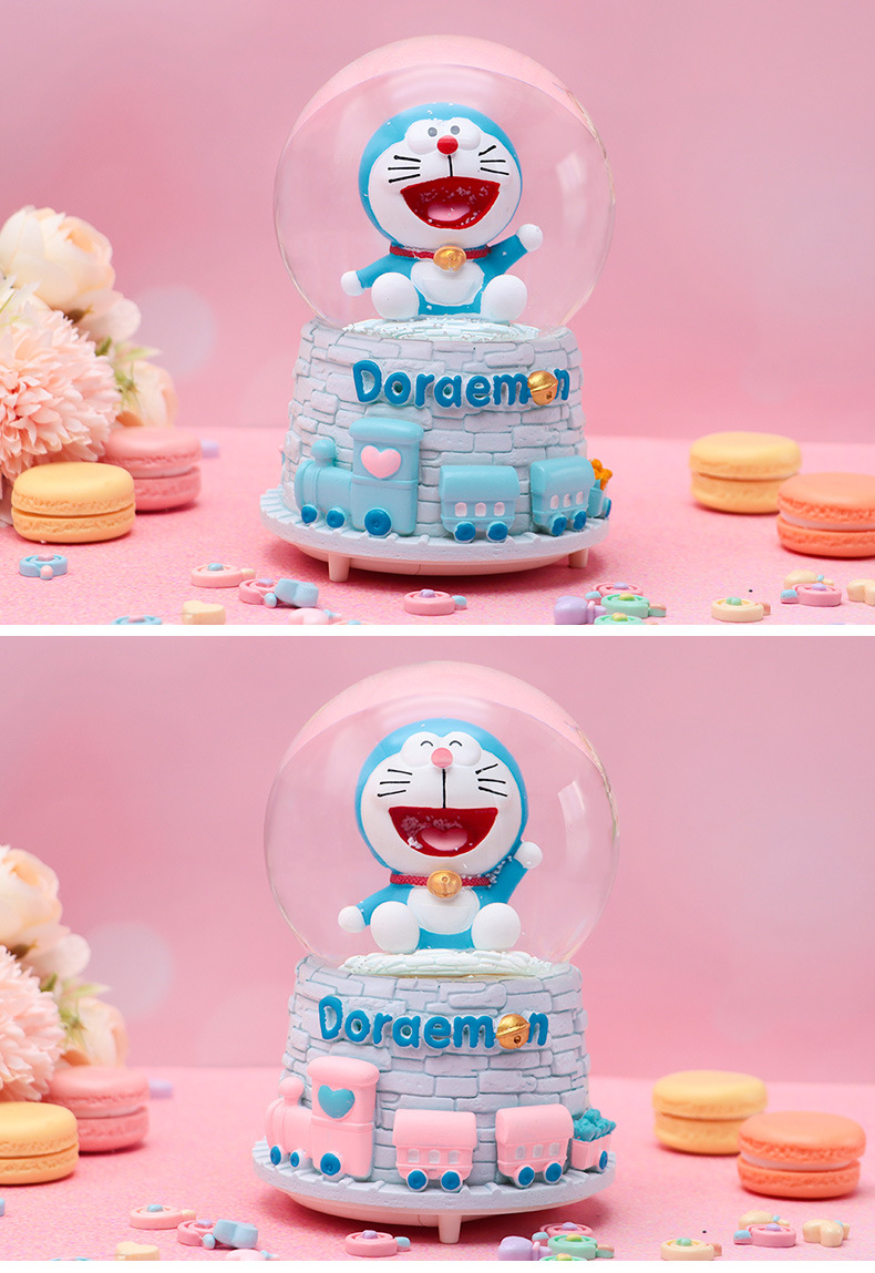 Linda campana tren azul gordo bola de cristal caja de música para niños y compañeros de clase regalo caja de música de nieve brillante