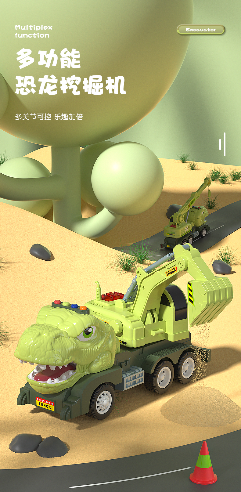 Excavadora de dinosaurios para niños, coche de juguete, coche de ingeniería, juego de juguete, excavadora de coche, excavadora de tierra, 3 años, 4 Jin Xiao