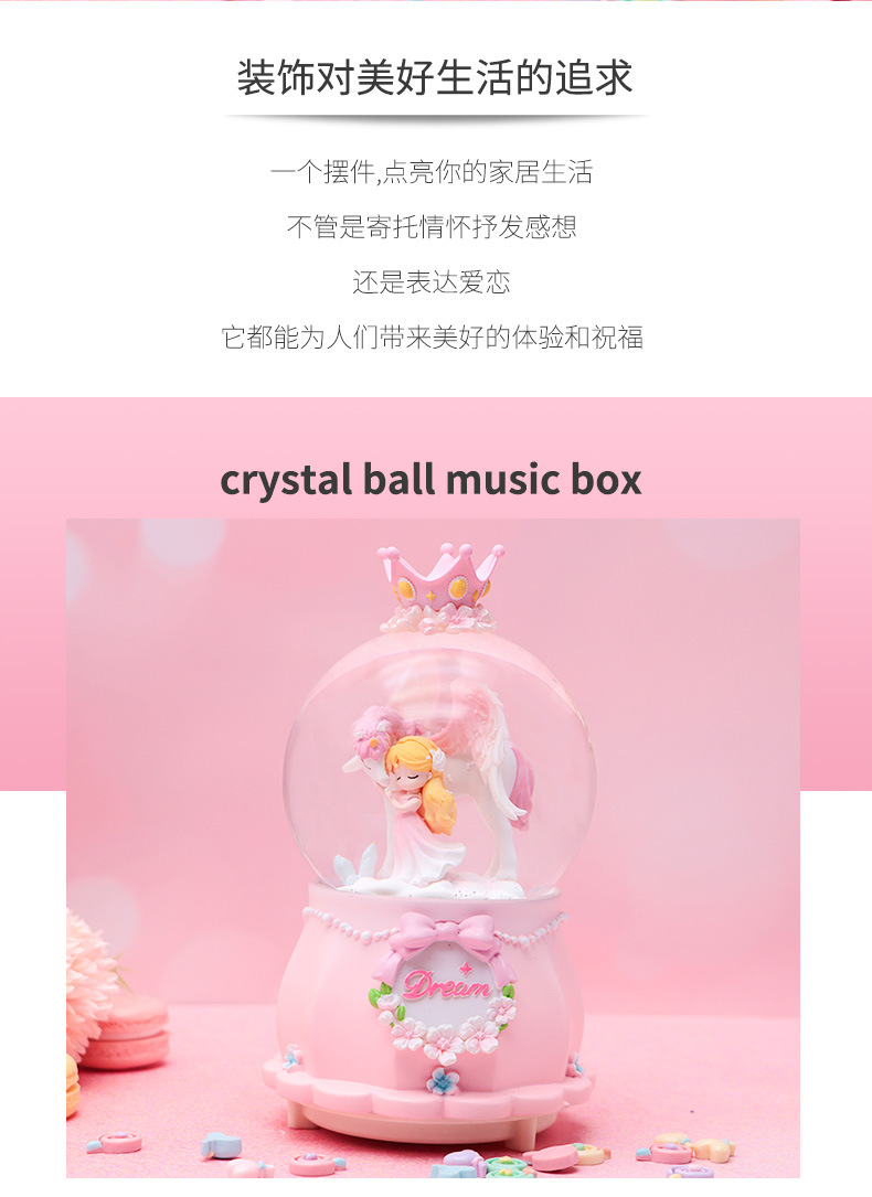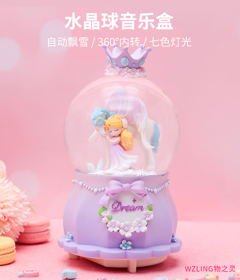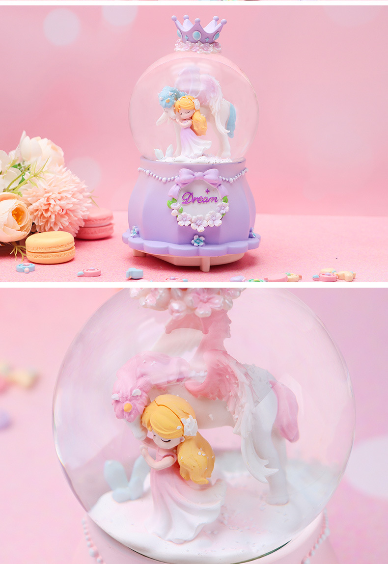 Romántico secreto bosque bola de cristal luminosa caja de música caballo blanco creativo decoración de escritorio de niña regalo de estudiante al por mayor