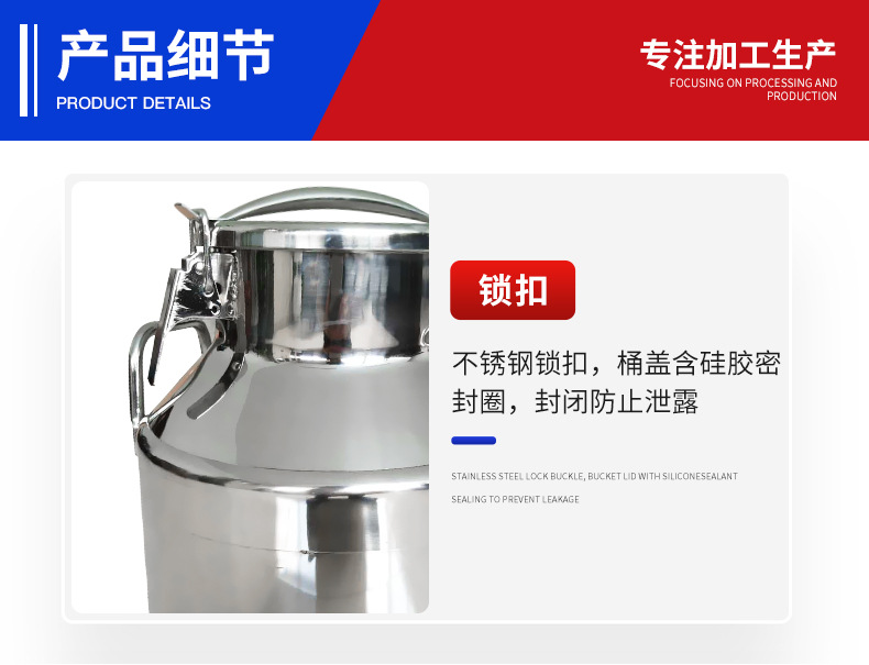 Cubo de leche de acero inoxidable 304 Cubo de sellado engrosado Almacenamiento Transporte comercial Cubo de aceite de maní Cubo de vino se puede personalizar al por mayor