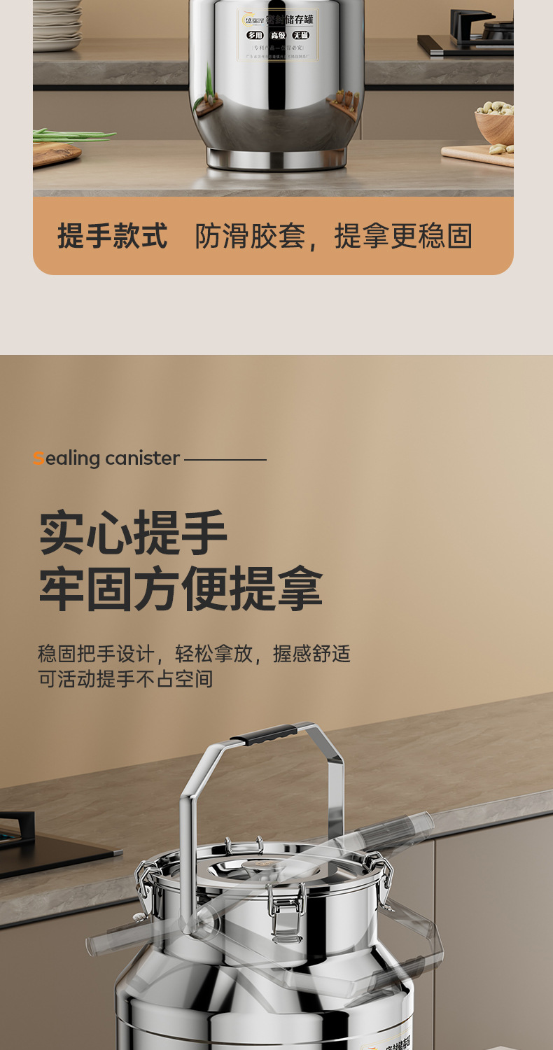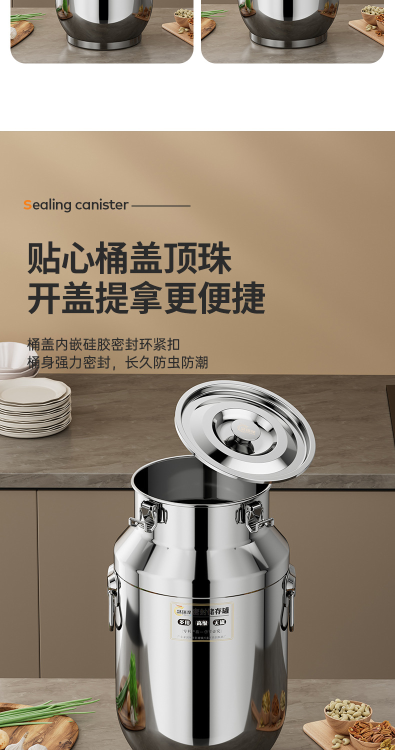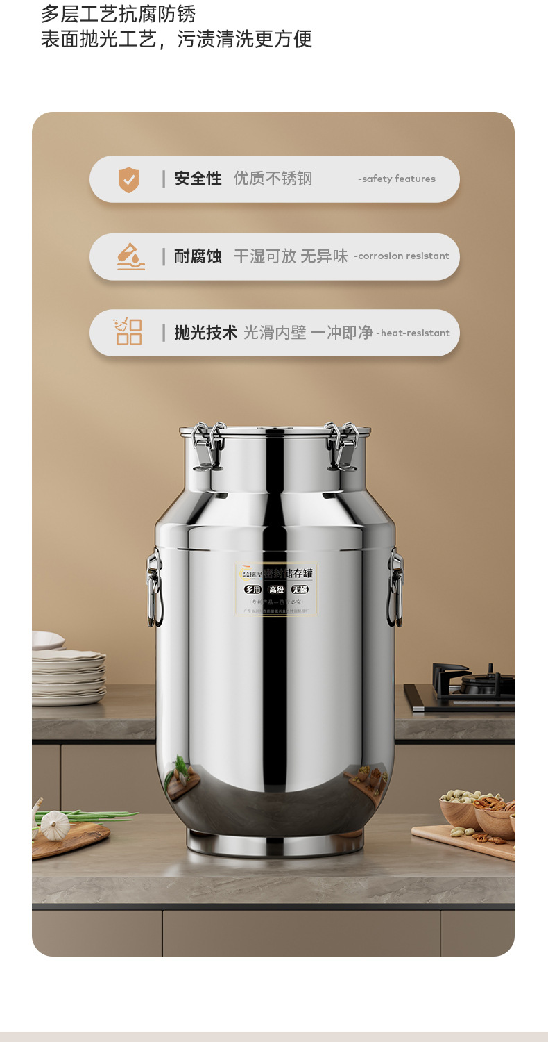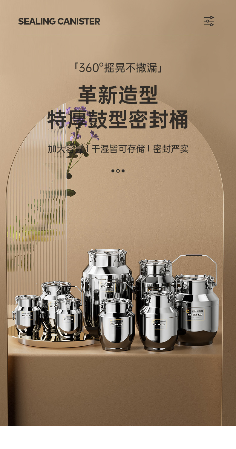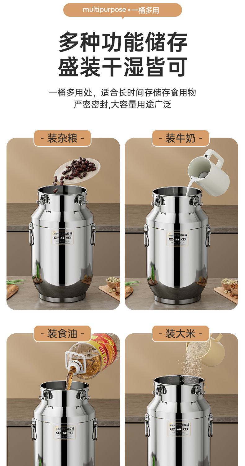 Barril sellado de acero inoxidable extra grueso, latas de té a prueba de humedad para el hogar, barriles de cáscara de mandarina, barriles de transporte, barriles de leche, barriles de vino, barriles de aceite de cocina