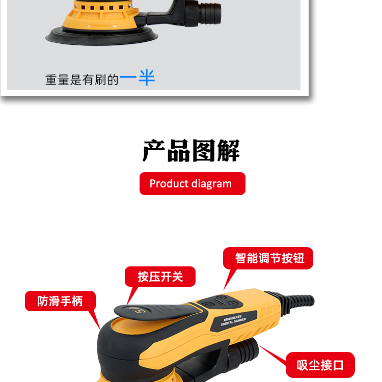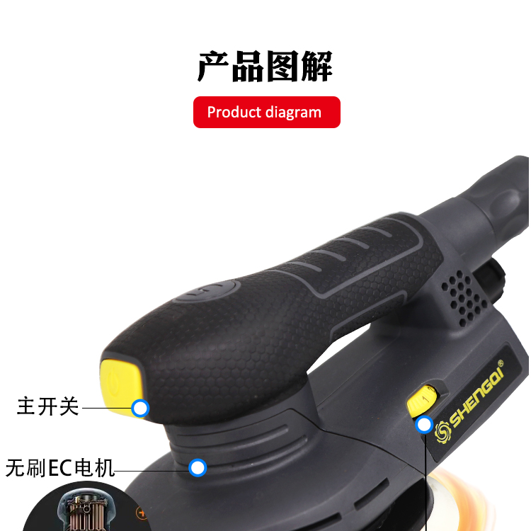 Kt molinillo seco amoladora eléctrica sin polvo cabezal de molienda en seco para pintura de coche masilla molida papel de lija gris molienda sin escobillas pulido
