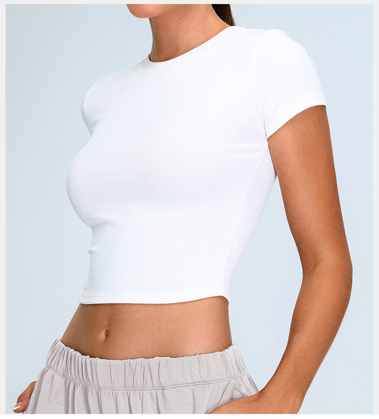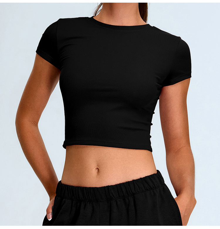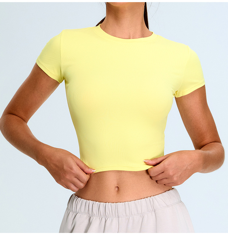 Nuevo cross-border yoga de mangas cortas mujeres ajustadas ropa de yoga corta casual camiseta deportiva de secado rápido para correr camisas de fitness