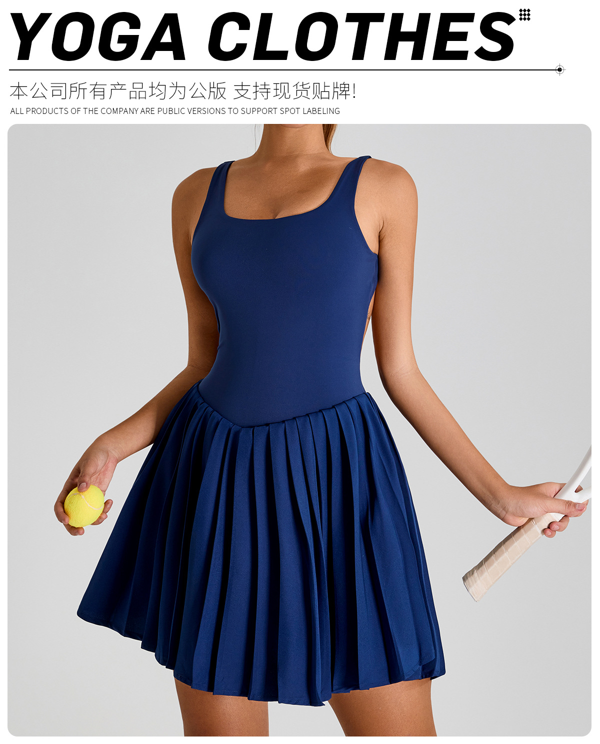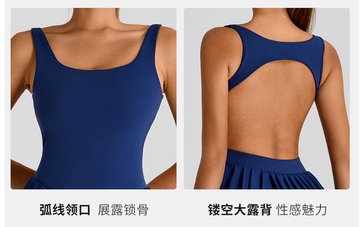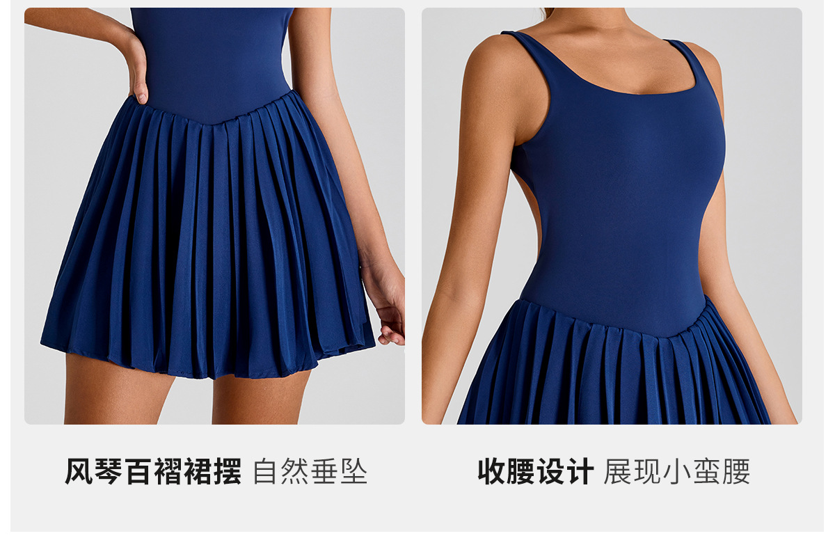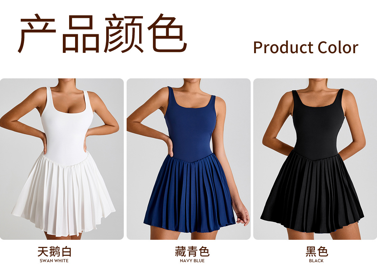 Nuevo estilo europeo y americano, gran espalda halter, hermoso vestido deportivo, falda de yoga plisada anti-desnudo para mujer, falda de tenis de fitness al aire libre
