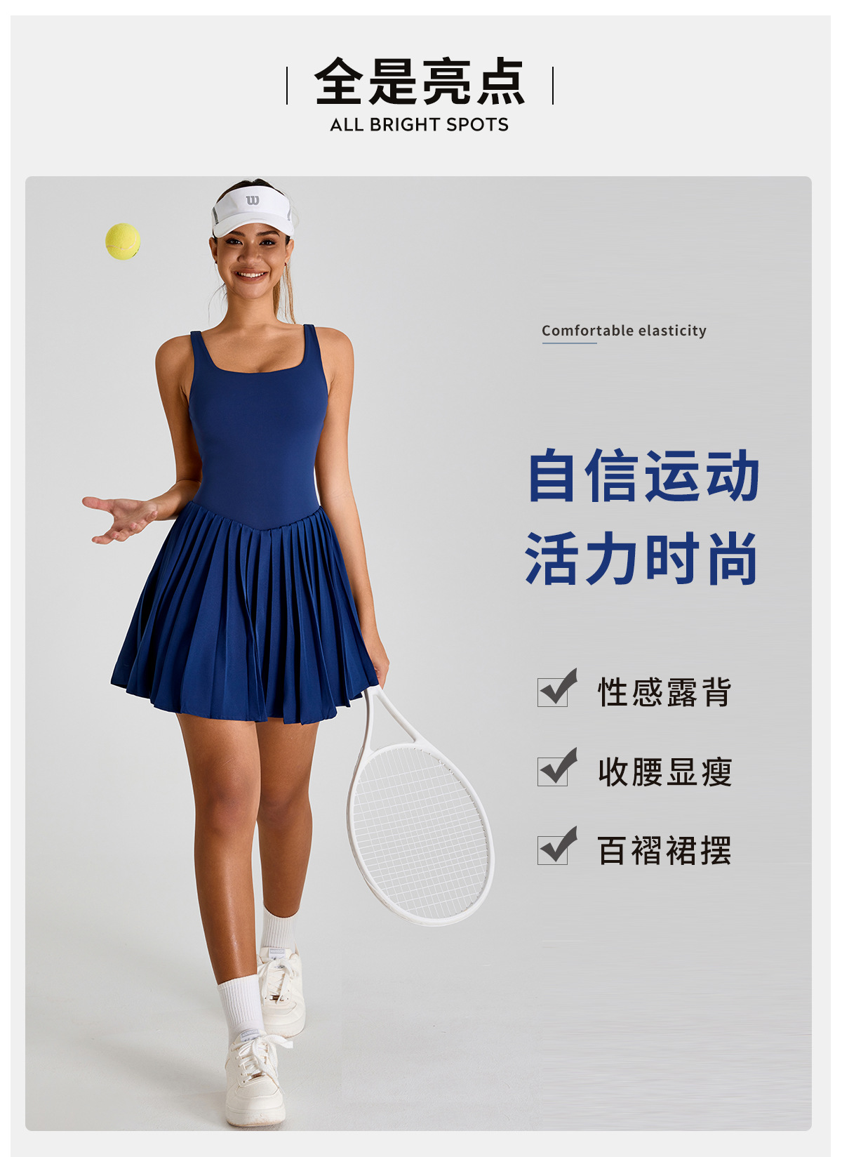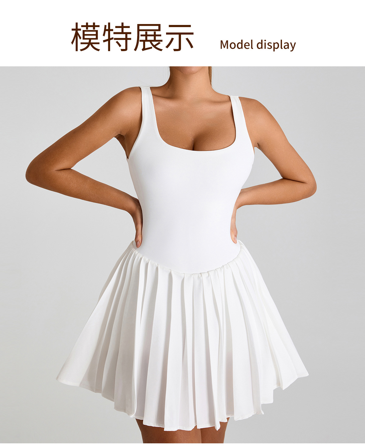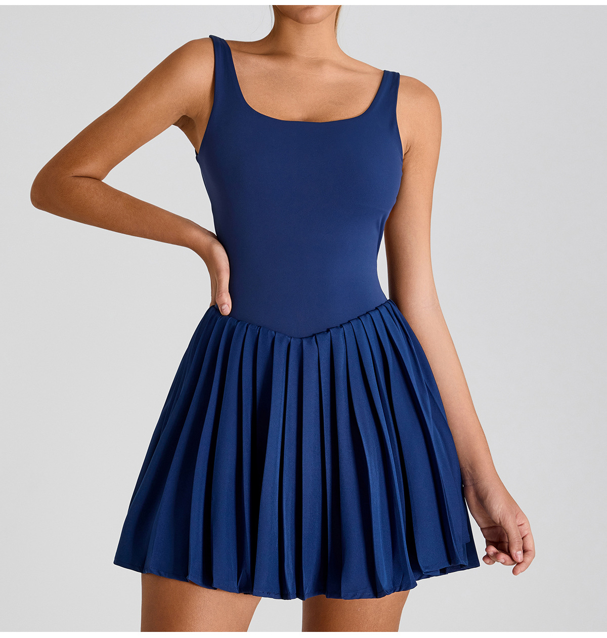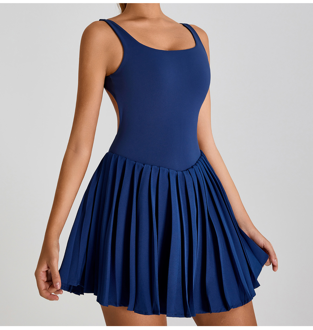Nuevo estilo europeo y americano, gran espalda halter, hermoso vestido deportivo, falda de yoga plisada anti-desnudo para mujer, falda de tenis de fitness al aire libre