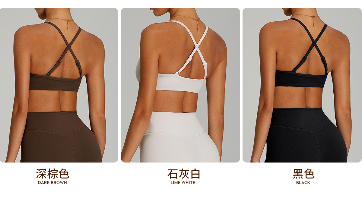 Sujetador de yoga con espalda ajustada desnuda europea y americana, ropa de yoga con tirantes de secado rápido para mujer, ropa interior deportiva de fitness para correr