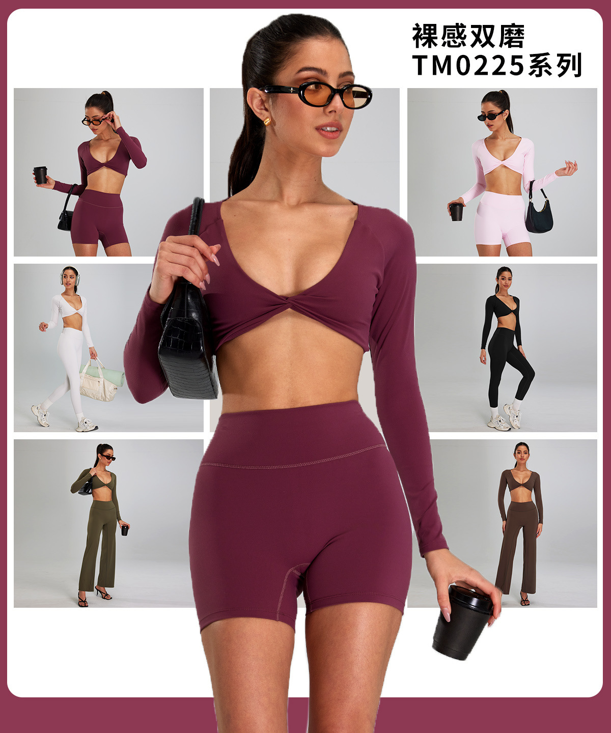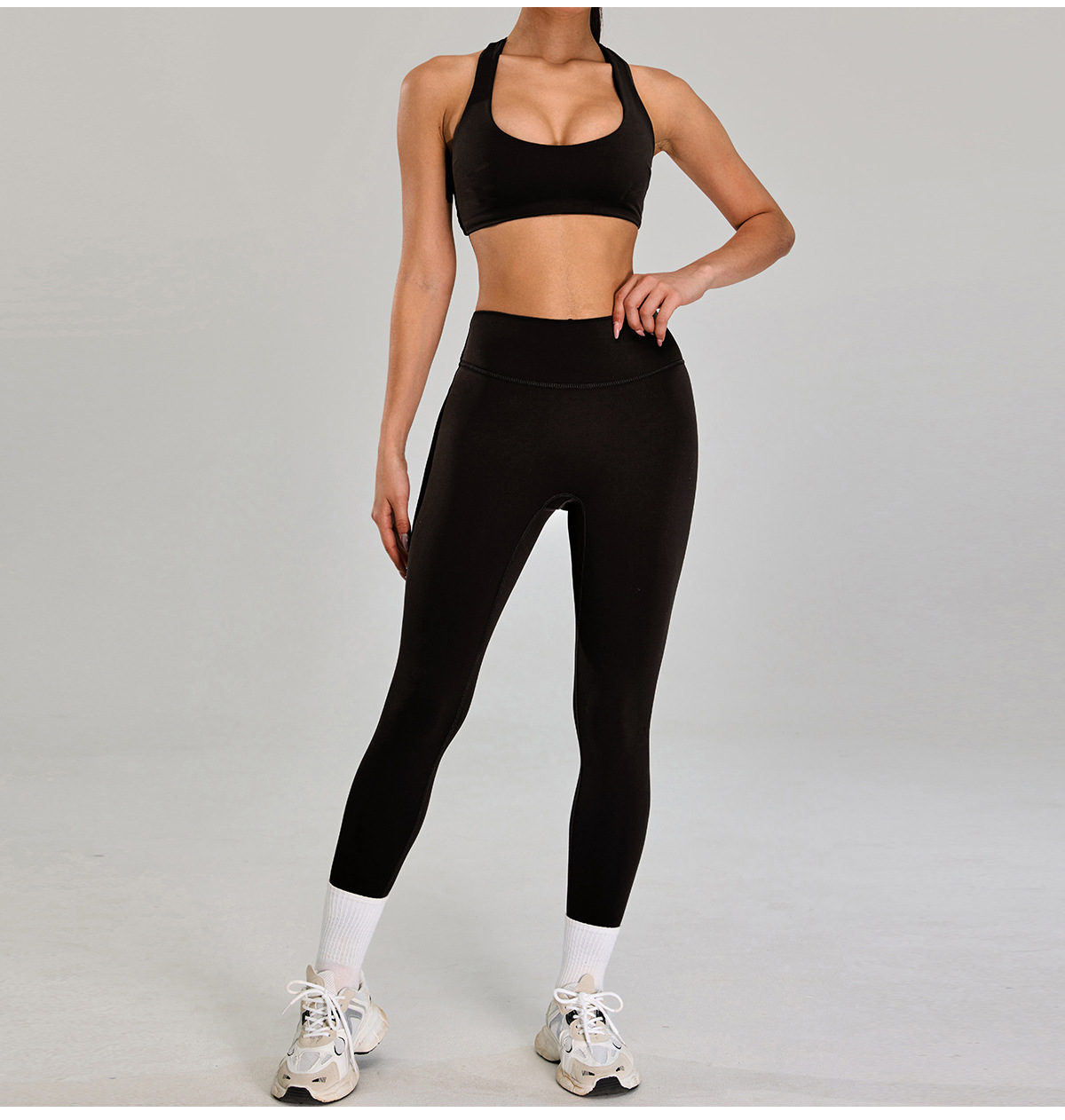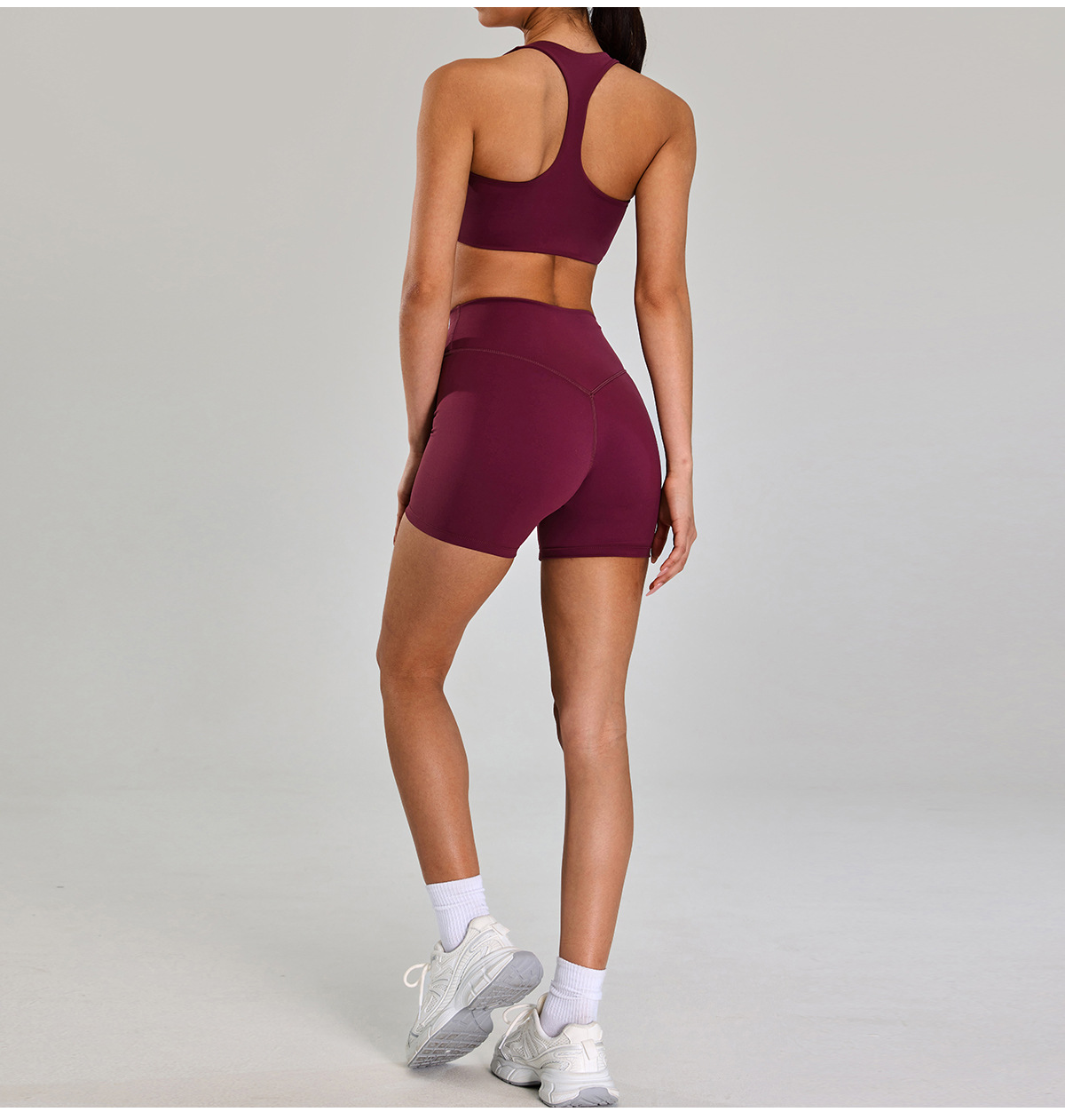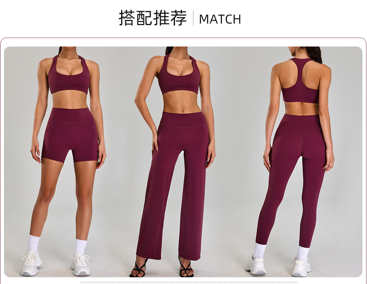 Traje deportivo de alta intensidad europeo y americano, correr al aire libre, ropa de fitness desnuda, cintura alta delgada, ropa de yoga de cinco piezas