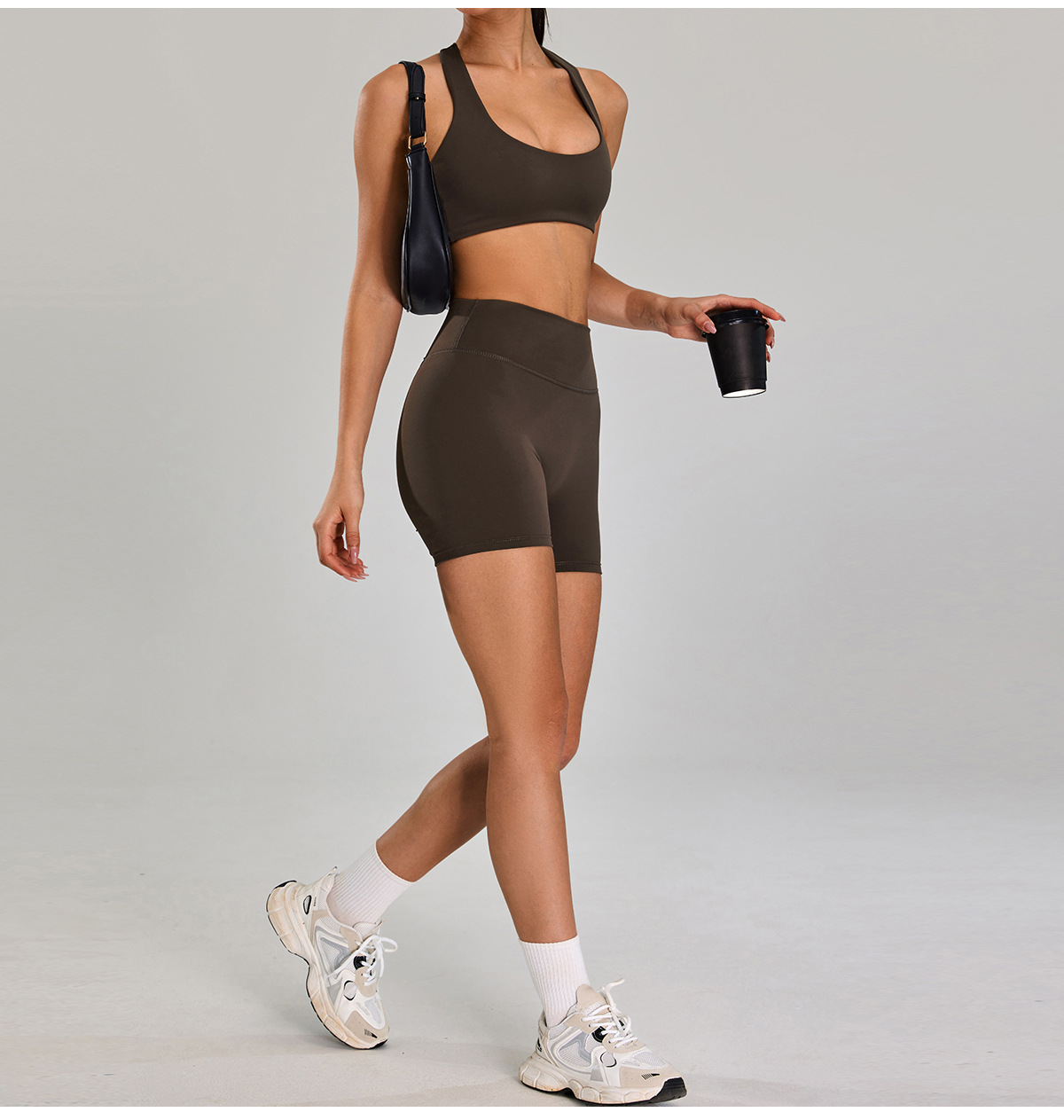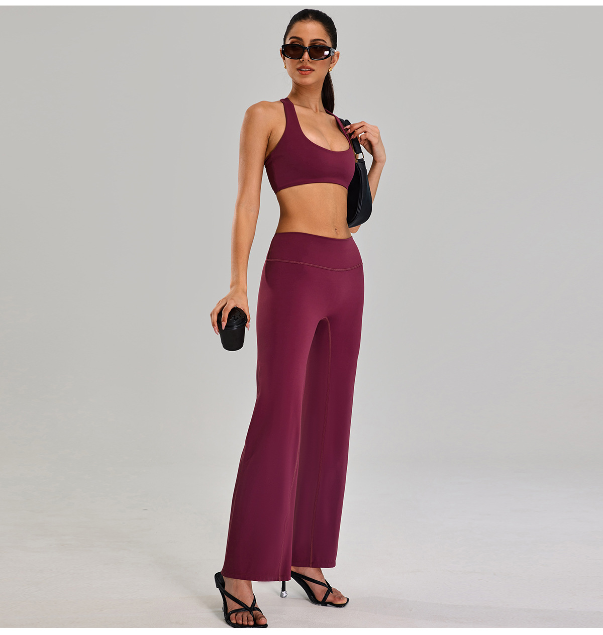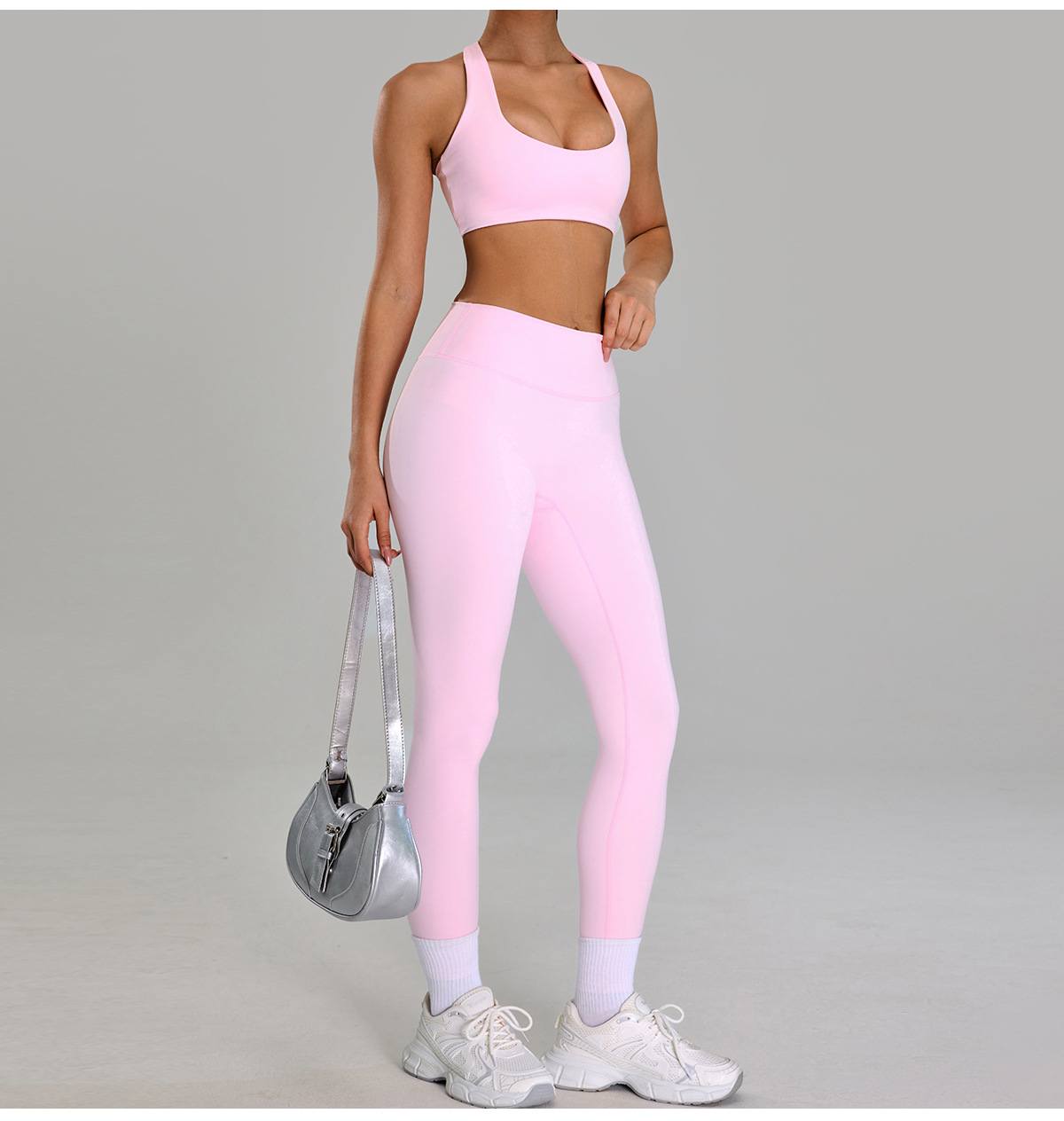 Traje deportivo de alta intensidad europeo y americano, correr al aire libre, ropa de fitness desnuda, cintura alta delgada, ropa de yoga de cinco piezas