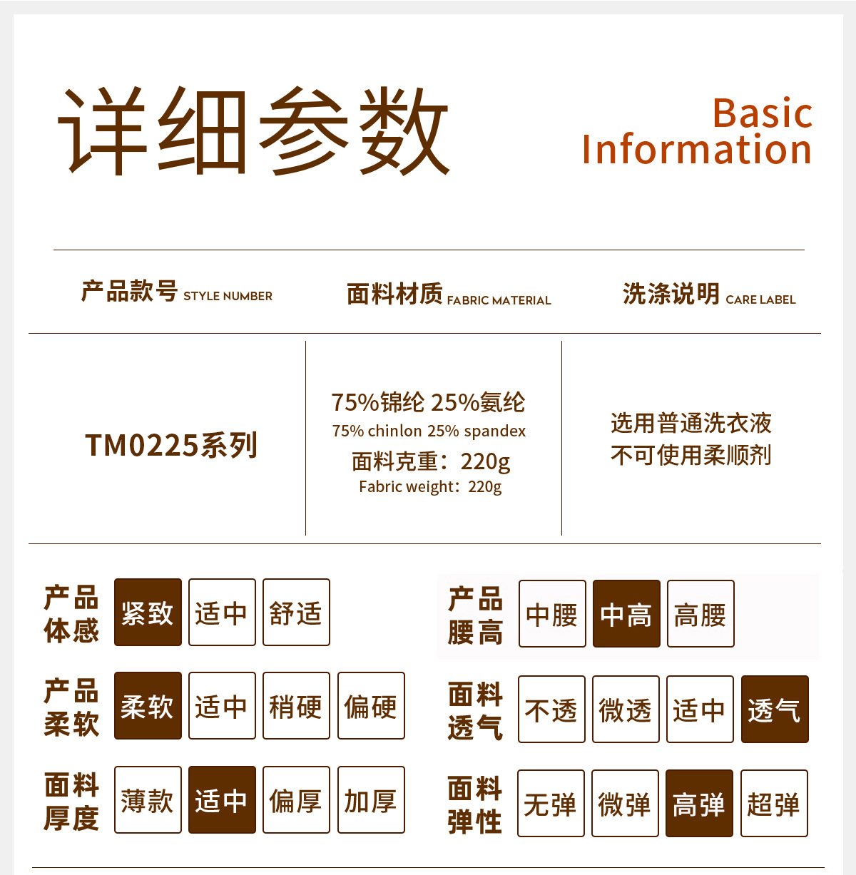 | Contenido de composición de la tela | 75 |