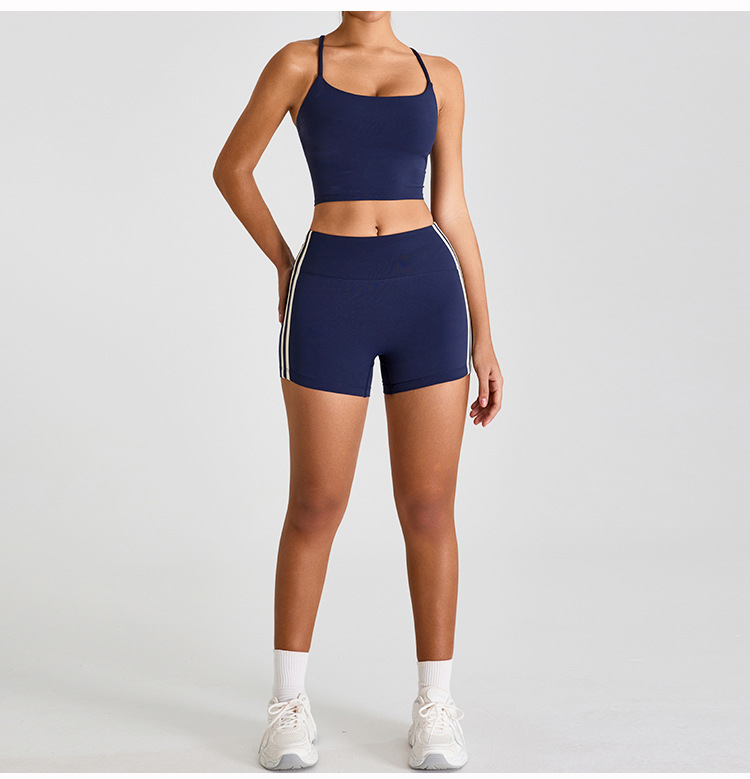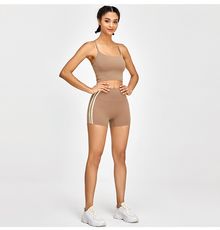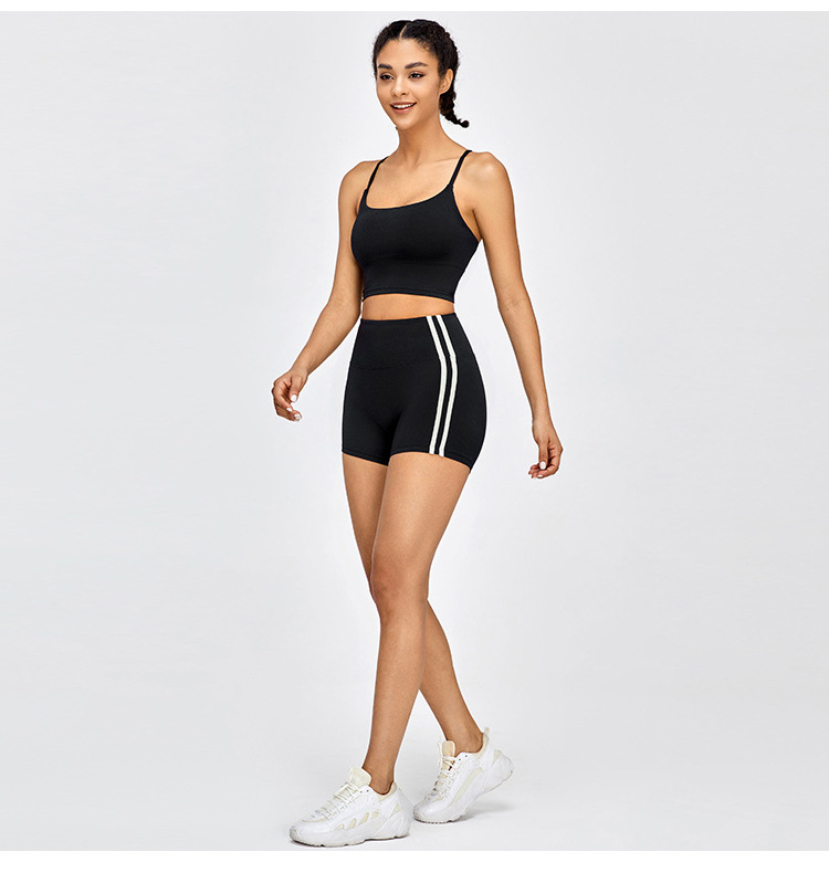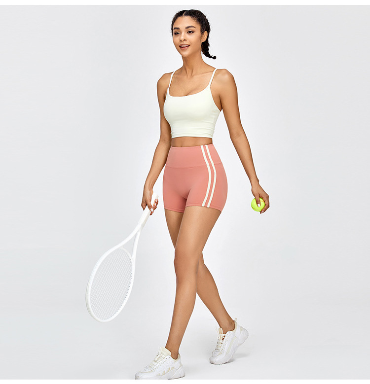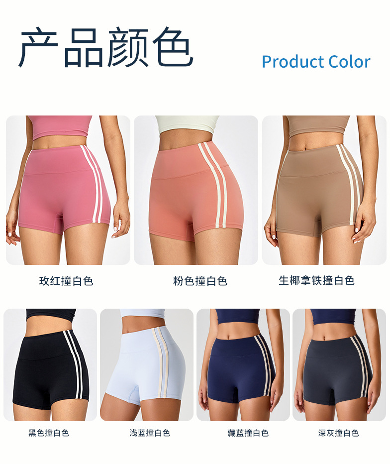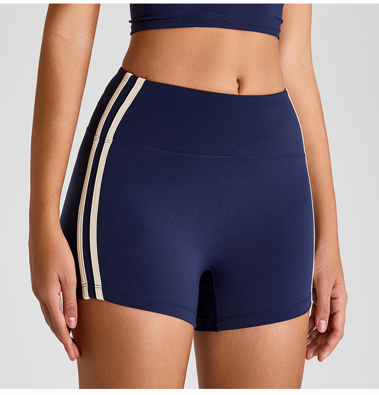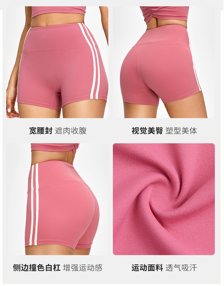 Primavera y verano nuevos pantalones cortos deportivos a rayas de color contraste, pantalones cortos de yoga ajustados de cintura alta, pantalones cortos de fitness