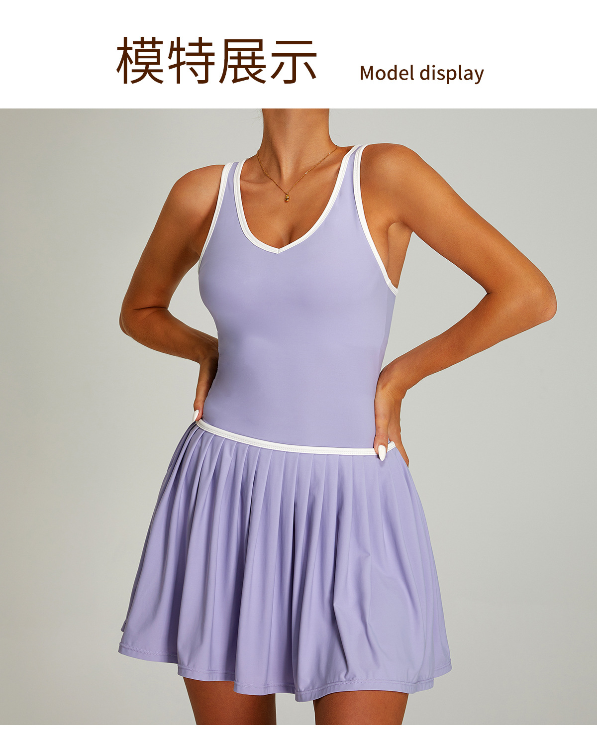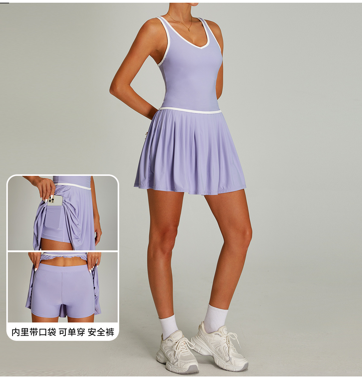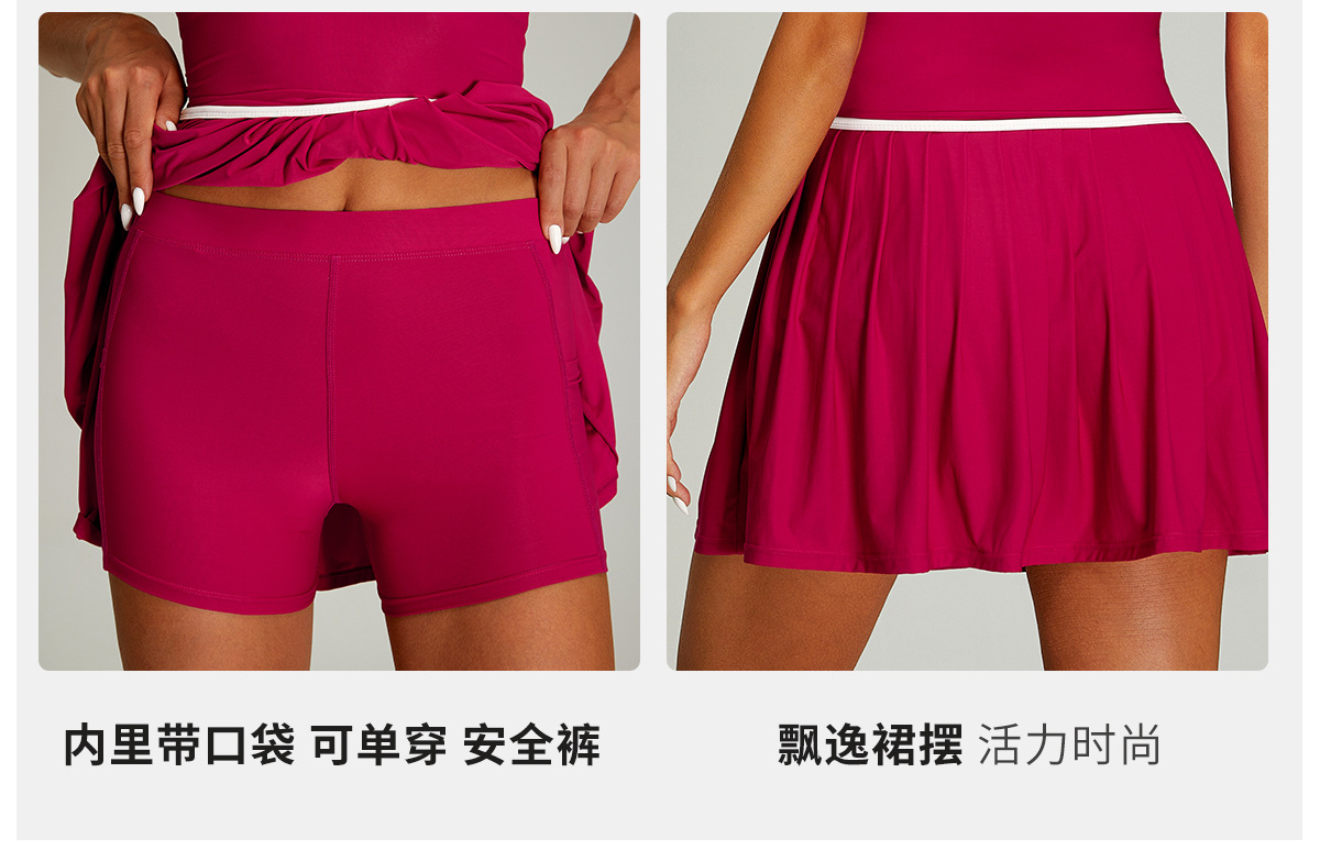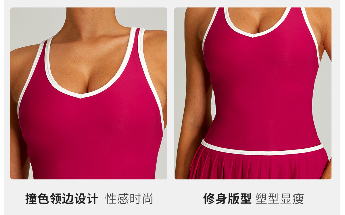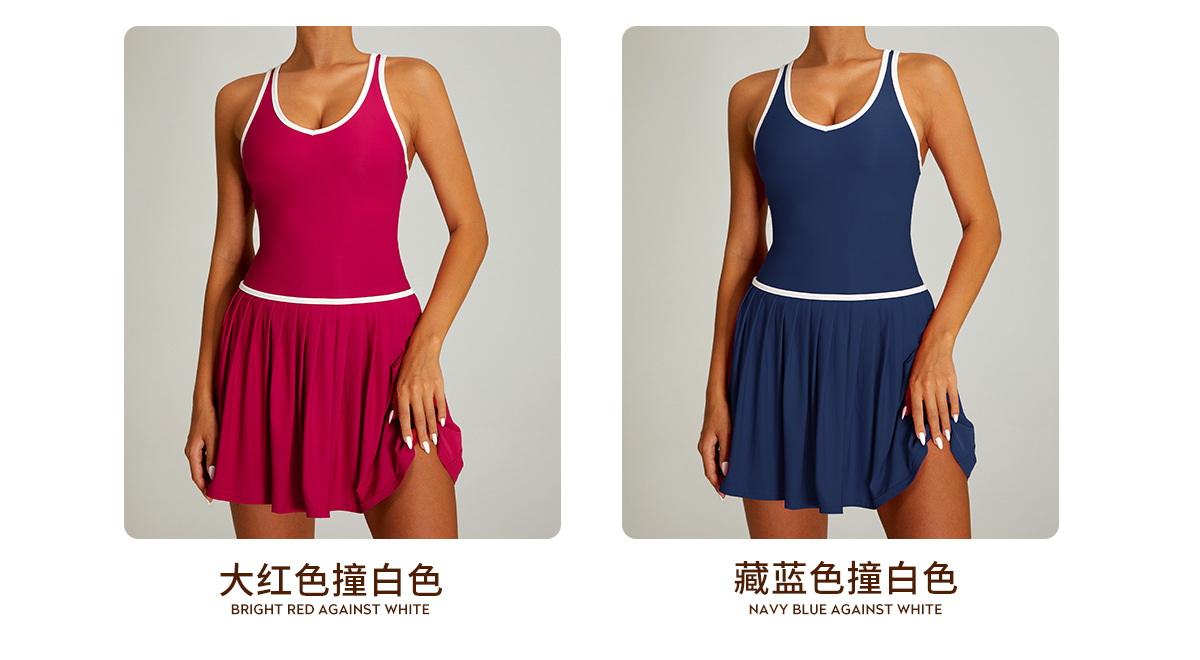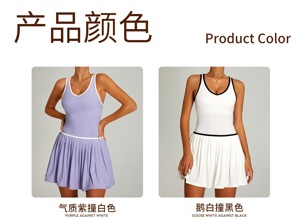 Vestido de tenis deportivo con bloques de color transfronterizos para mujer, falda de tenis plisada anti-exposición de secado rápido para correr al aire libre y fitness.