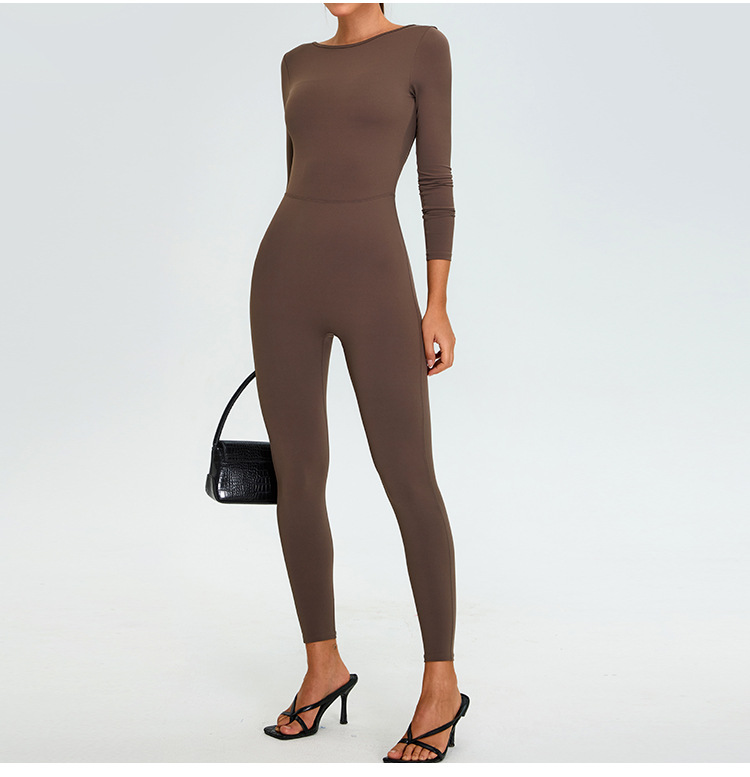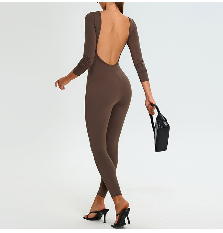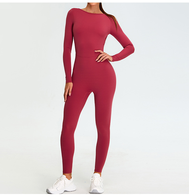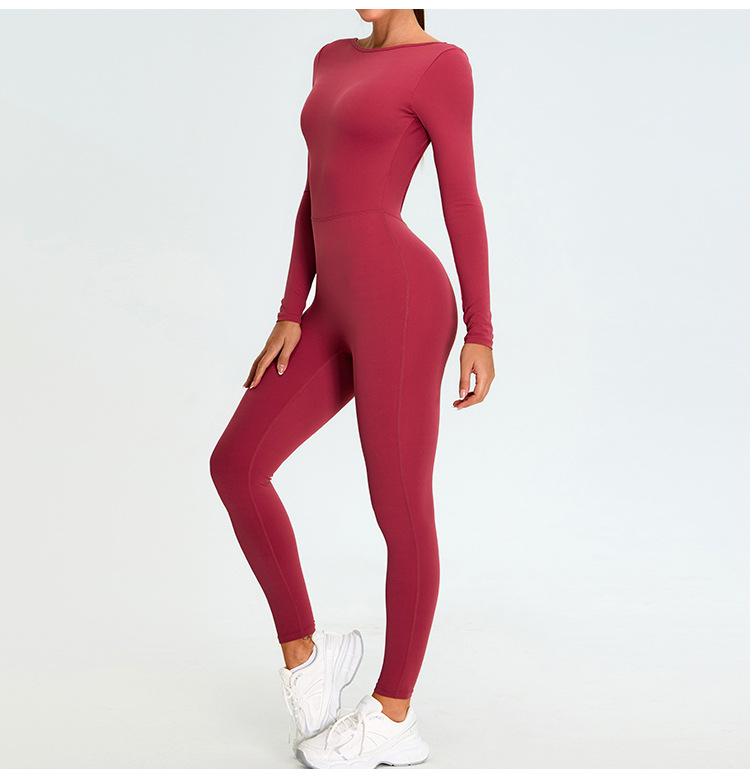 Europa y los Estados Unidos nuevo otoño y invierno sensación desnuda manga larga yoga uniforme en forma de U belleza de la espalda deportiva unida ropa de ejercicio apretada para correr