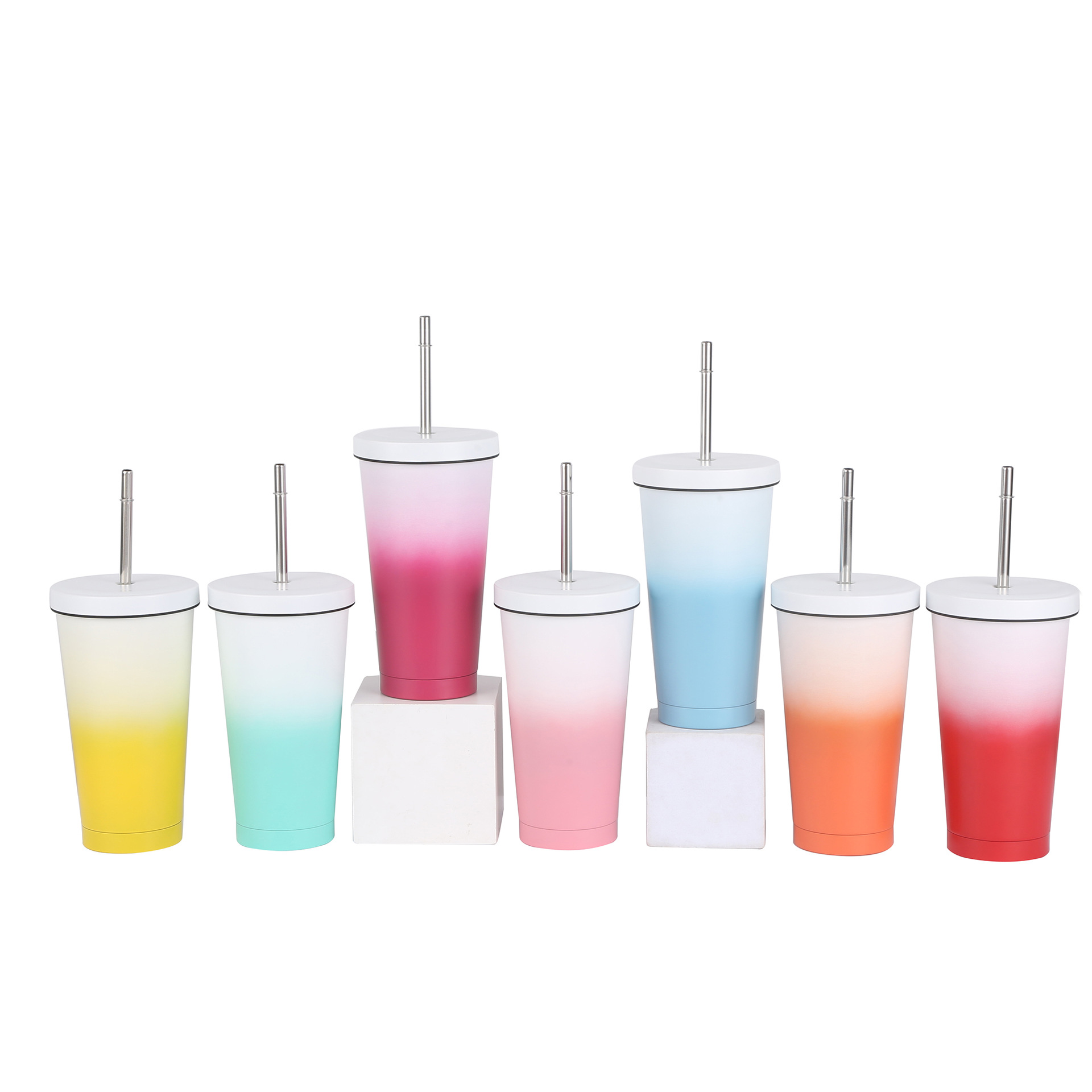 Taza de paja de acero inoxidable de color gradiente de gran capacidad taza de café taza de vacío de doble capa taza de aislamiento de calor taza de té de leche casual