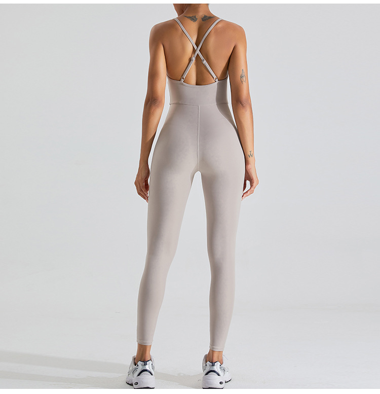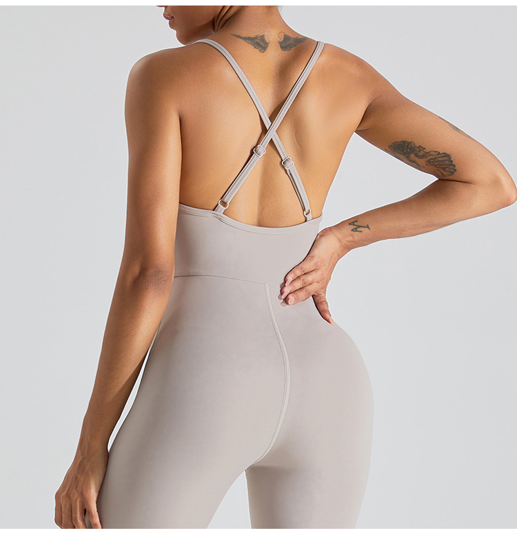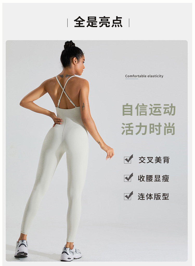 Traje de ropa de Yoga de una pieza de belleza desnuda transfronteriza traje de mujer SLIM-Fit danza ropa deportiva fitness apretado mono deportivo