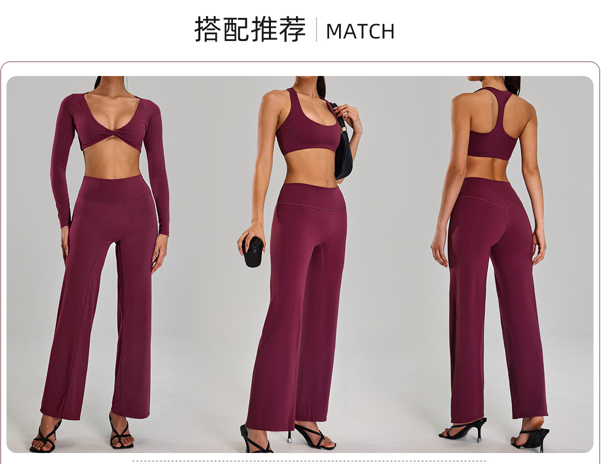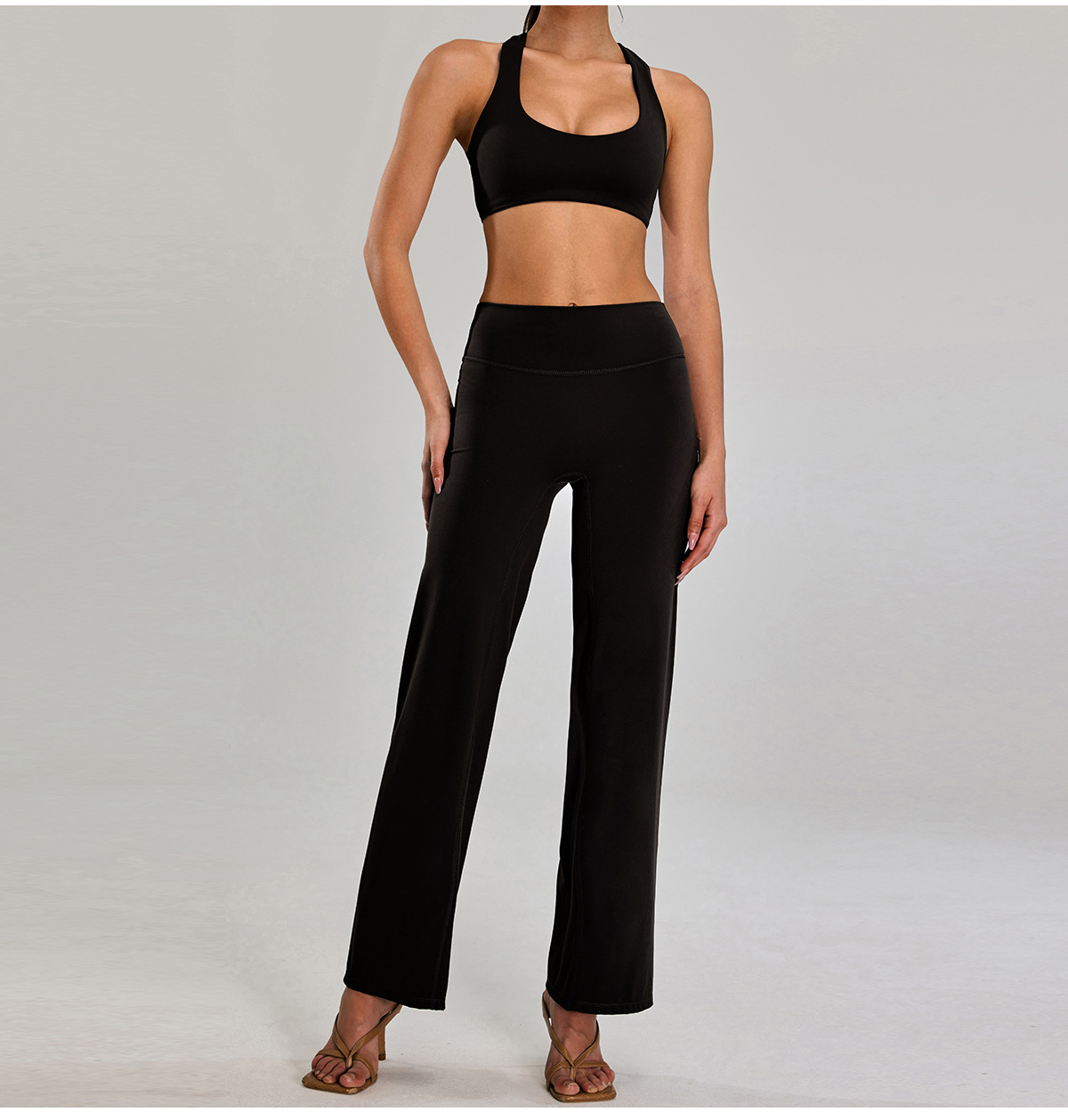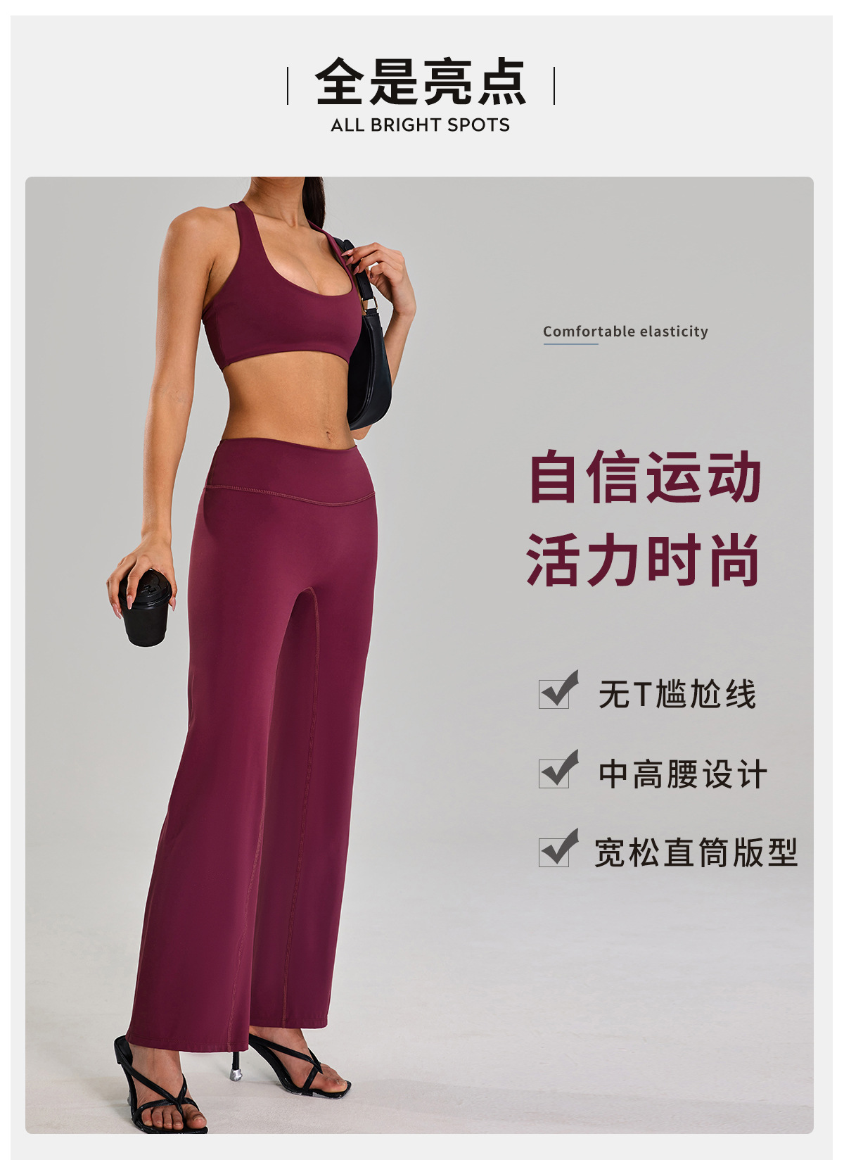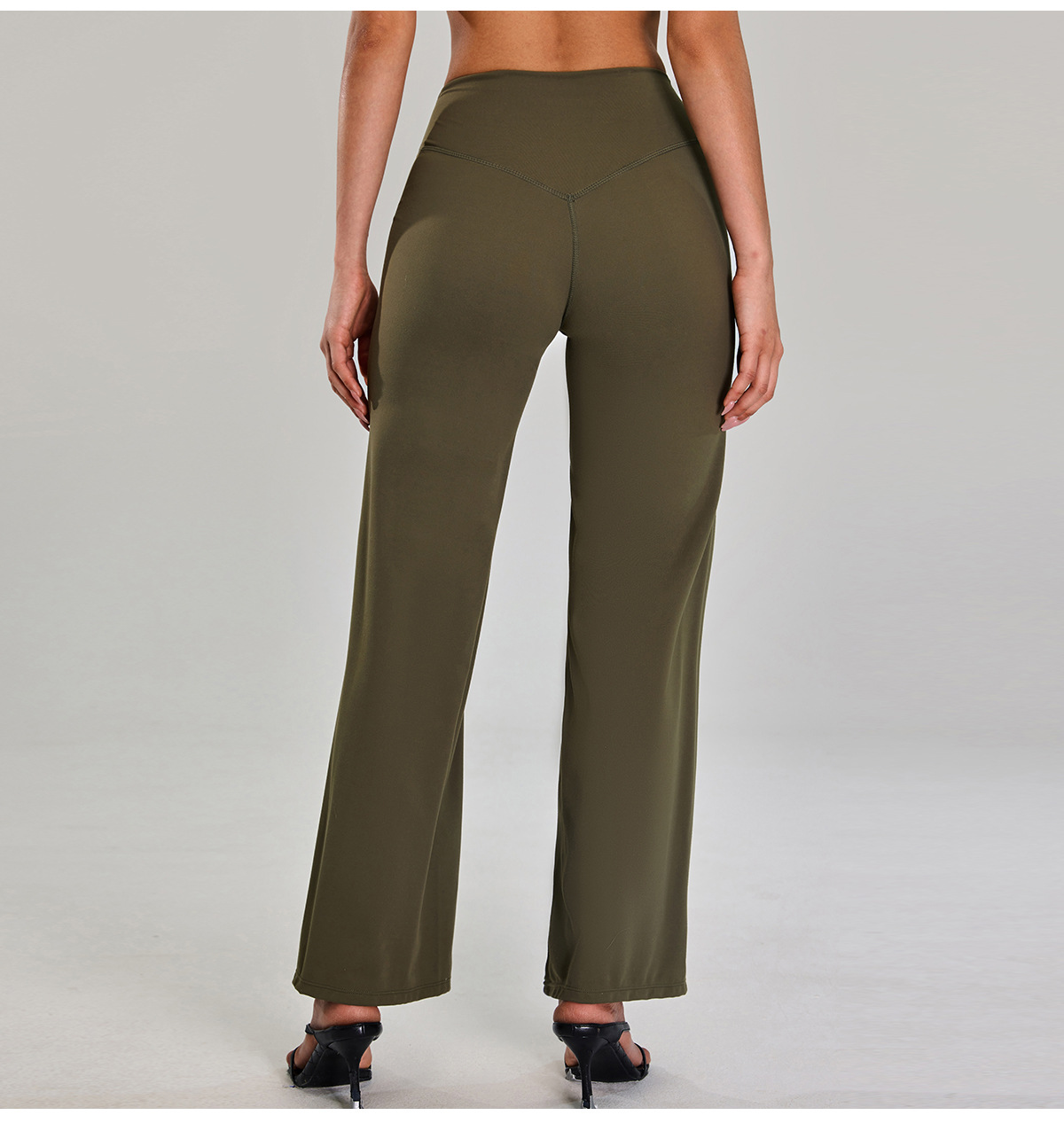 Europa y América desnudos pantalones de calzado de calzado para correr al aire libre deportivo rápido secado pantalones de piernas largas rectas de cintura alta para mujeres pantalones de gimnasio