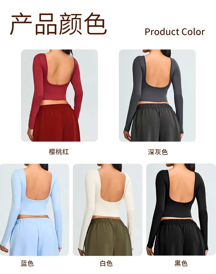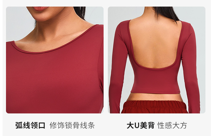 Yoga de mangas largas, camiseta de fitness de mujer, camiseta de yoga de espalda, camiseta de ejercicio al aire libre, ropa deportiva de secado rápido