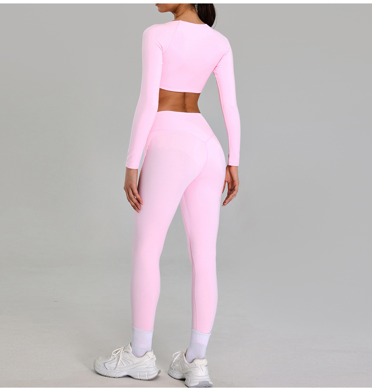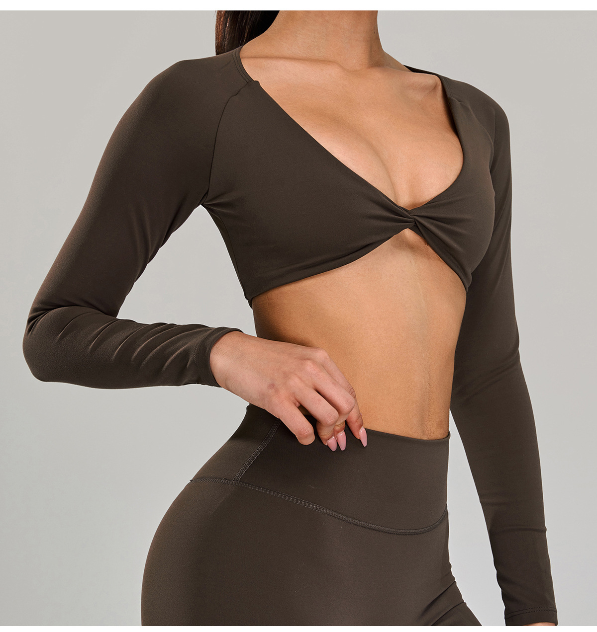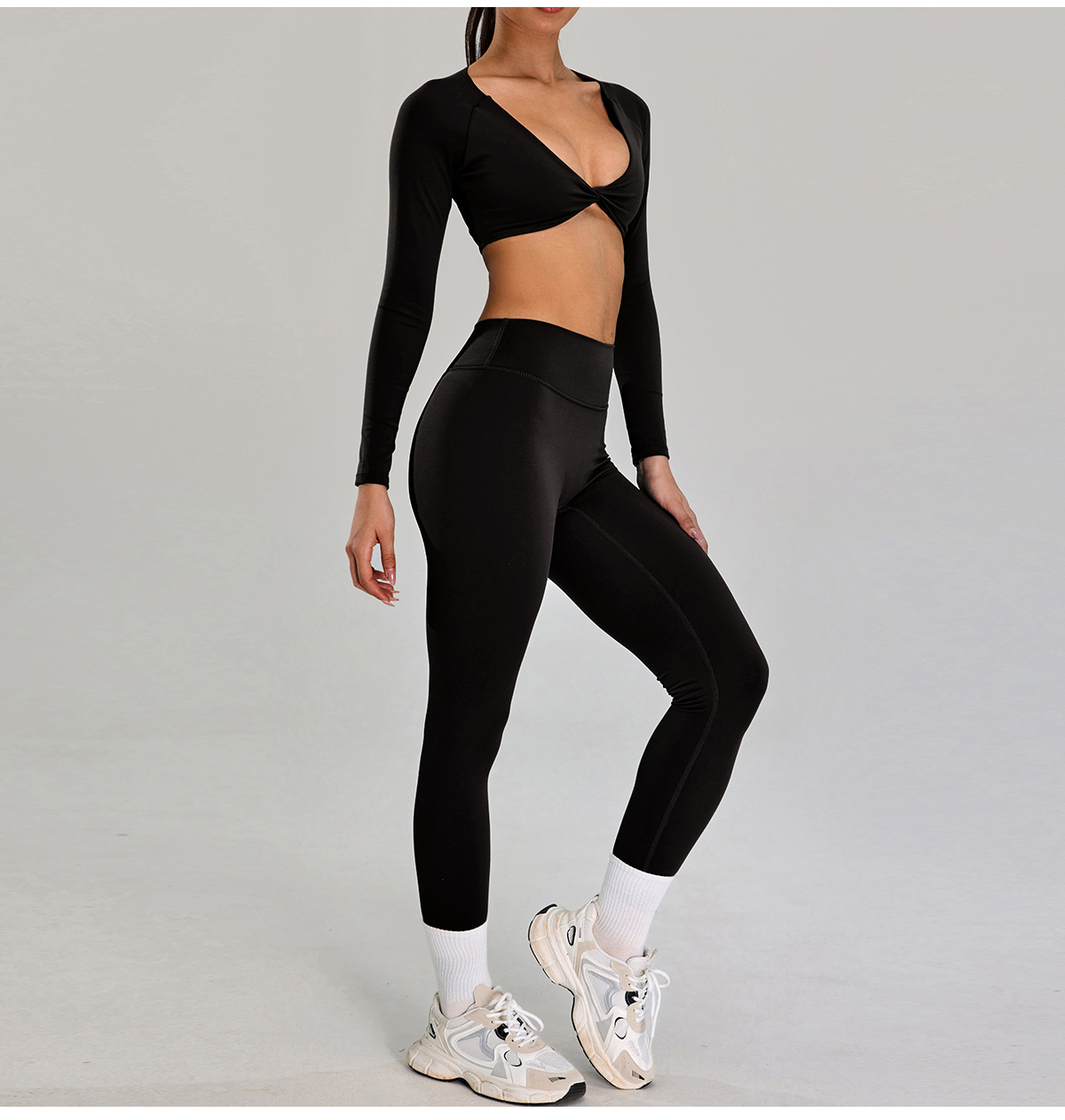 Nueva ropa de yoga europea y americana, camiseta ajustada transpirable de secado rápido para mujer, ropa de fitness, deportes de carrera informal, top de manga larga