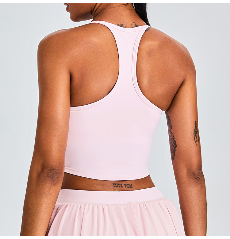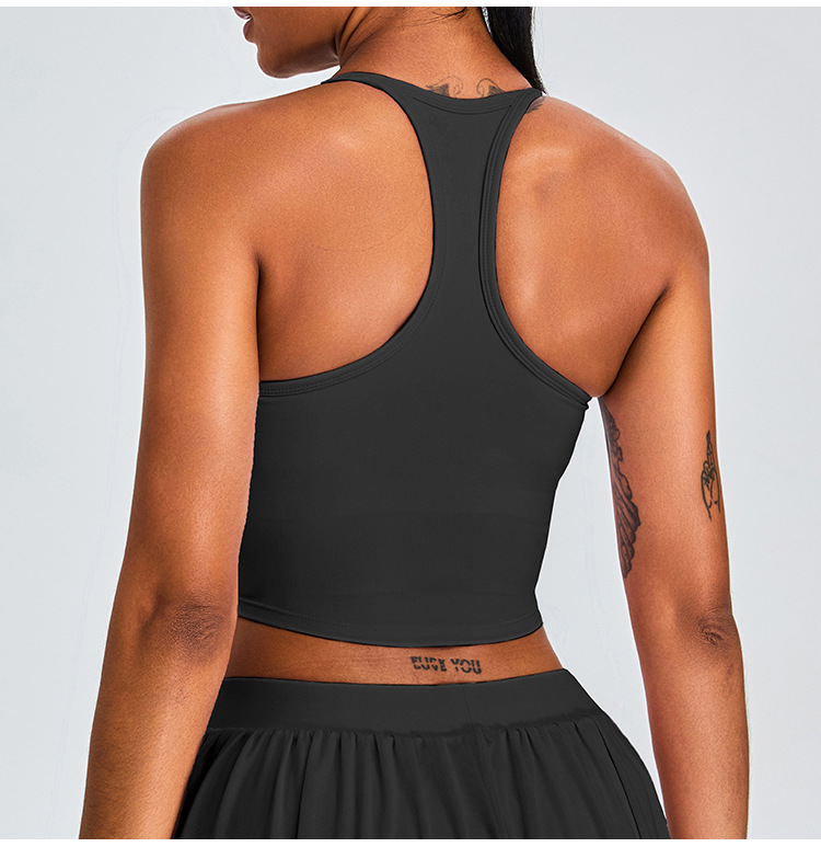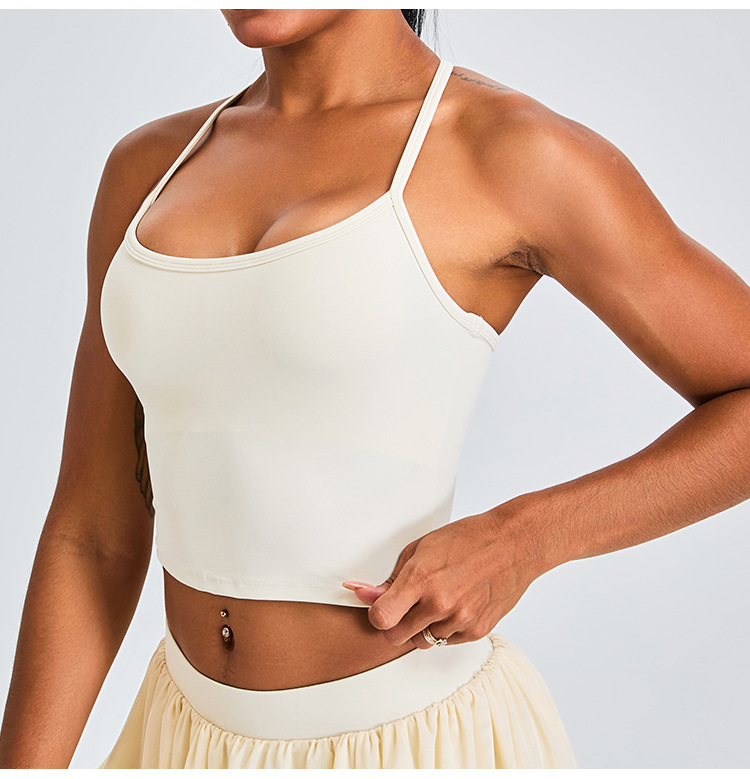 Nuevo chaleco de yoga transfronterizo de cuello en U mujer T-shape belleza ropa interior deportiva correa de hombro delgada secado rápido correr ropa de fitness chaqueta