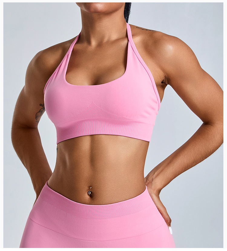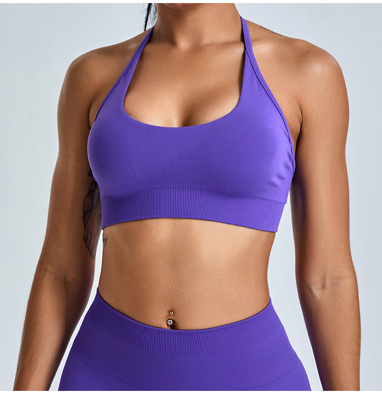 Cuello sin costuras antichoque ropa de belleza de espalda yoga sujetador mujer con cojín de pecho ropa interior deportiva de secado rápido correr chaleco de fitness