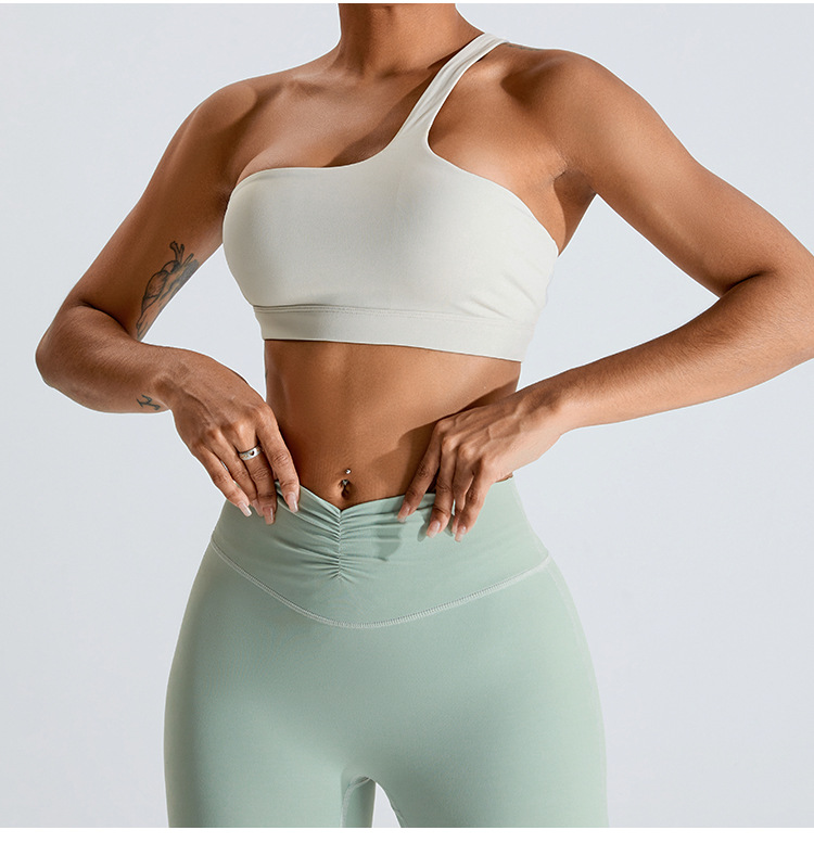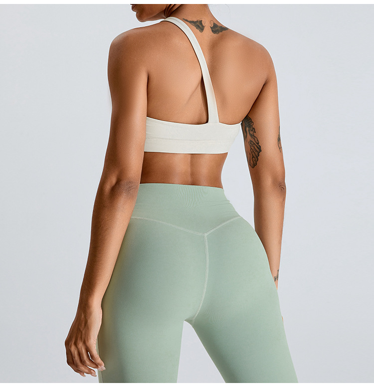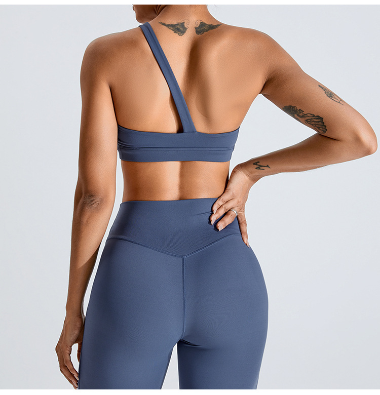 Transfronterizo nuevo oblicuo de un hombro ropa interior deportiva sujetador de yoga desnudo de las mujeres de secado rápido belleza espalda chaleco ropa de entrenamiento de yoga
