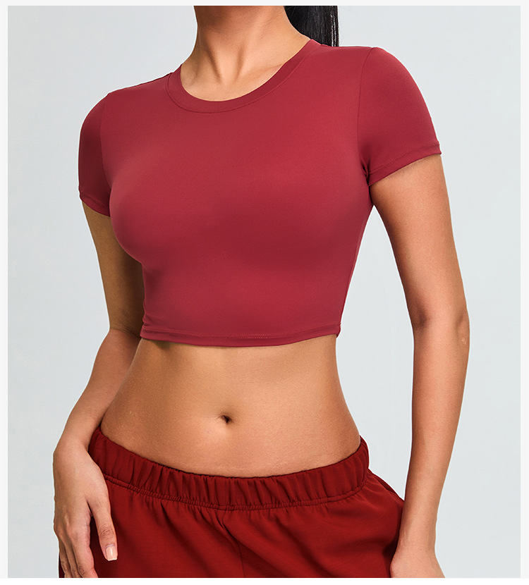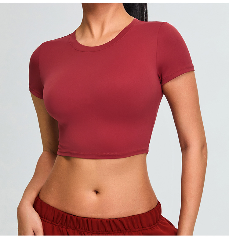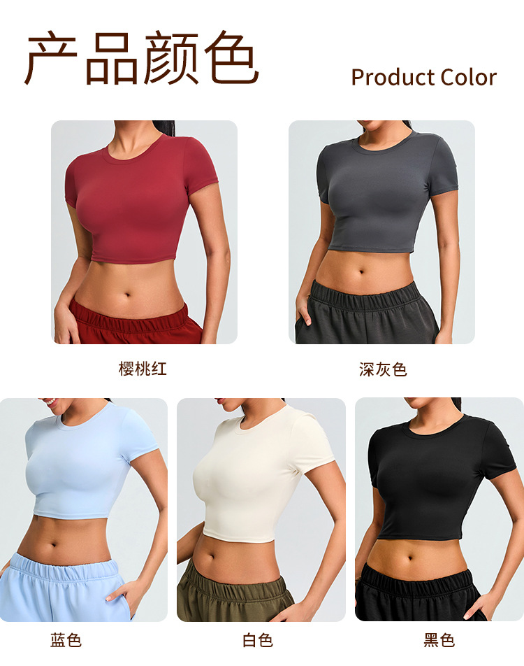 Tronos transfronterizos de nuevo estilo delgado ropa de yoga corta camiseta deportiva desnuda de manga corta ropa de fitness para correr al aire libre