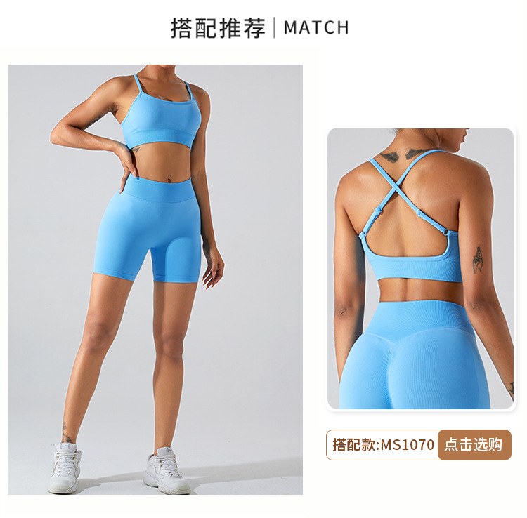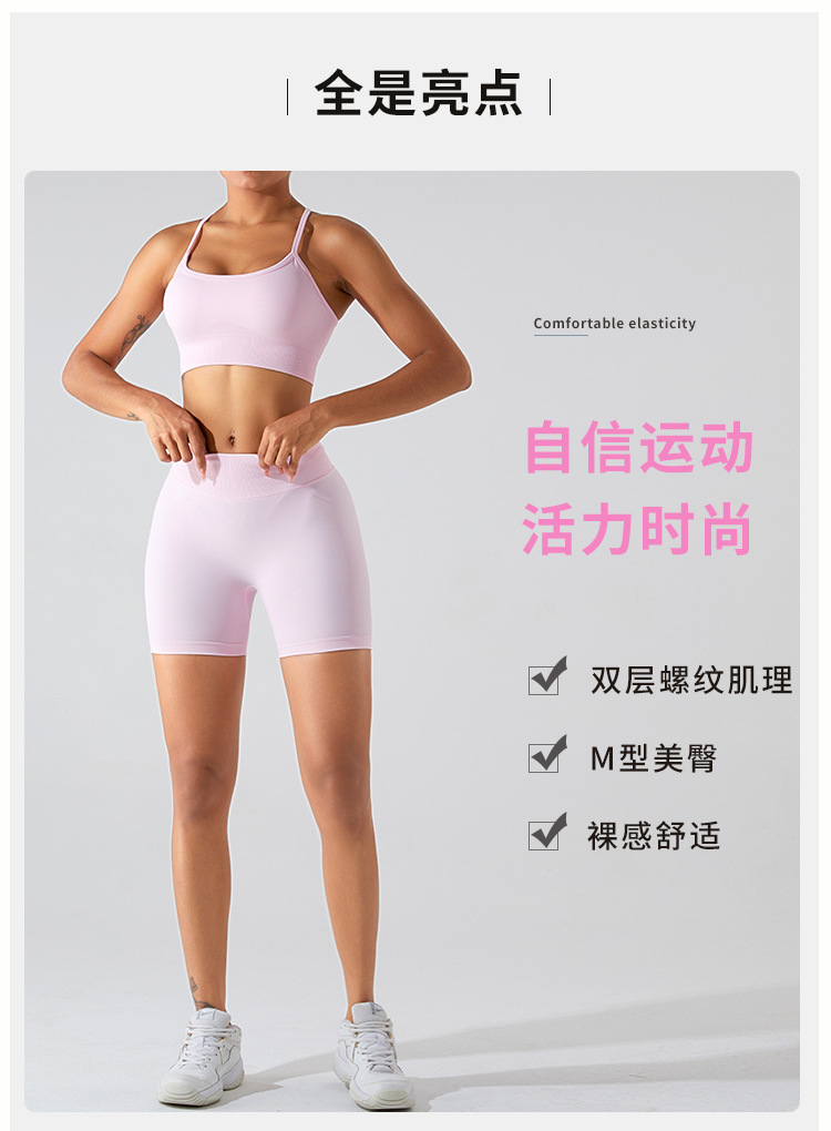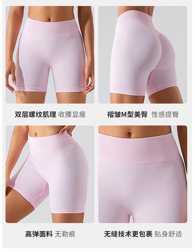 [Procesamiento personalizado] Nuevos pantalones cortos de yoga de cintura alta sin costuras para mujer, pantalones de elevación del vientre de melocotón, pantalones de fitness para correr