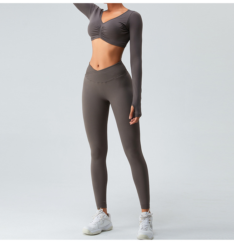 Primavera transfronteriza nueva ropa de yoga de manga larga ajustada para mujer corriendo camiseta deportiva ropa de fitness desnuda tops de yoga