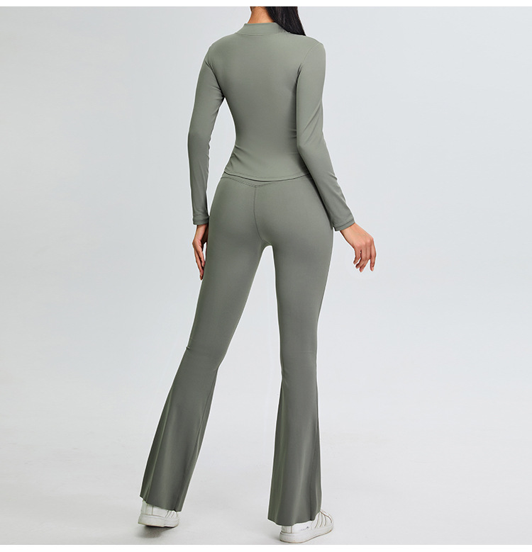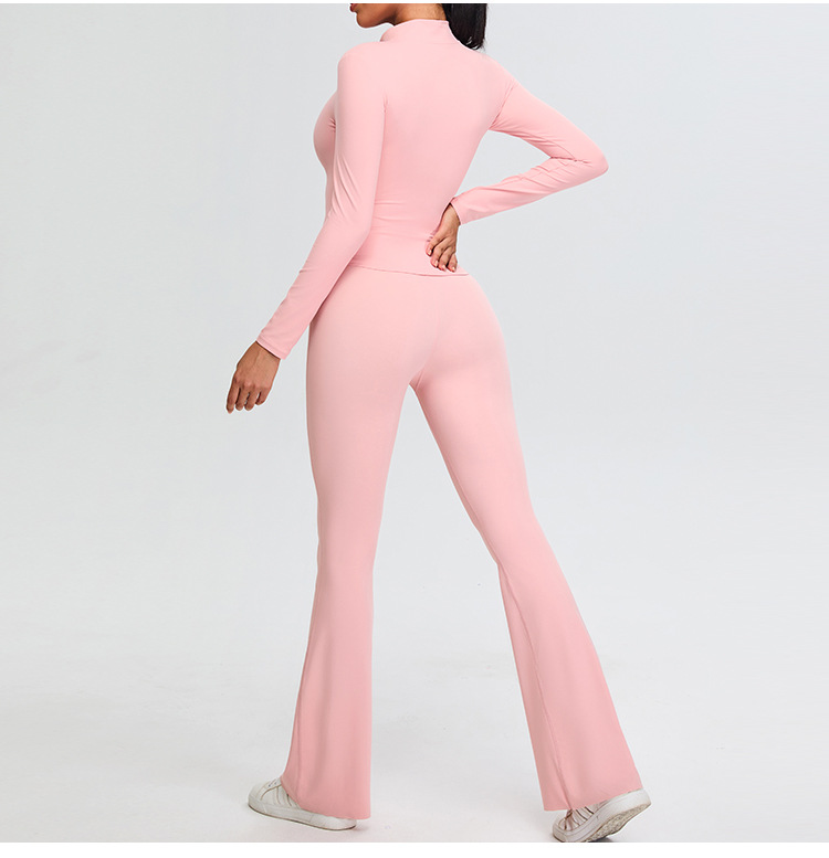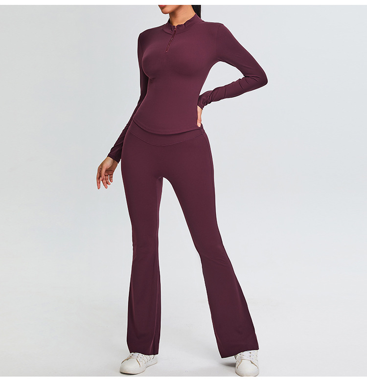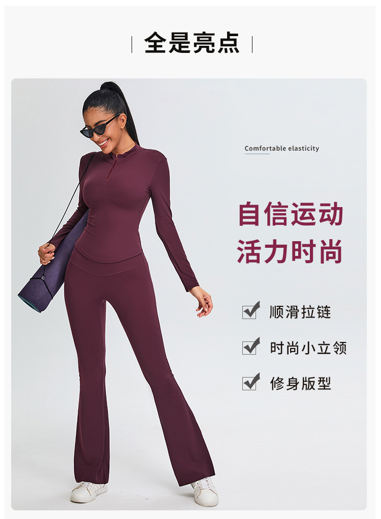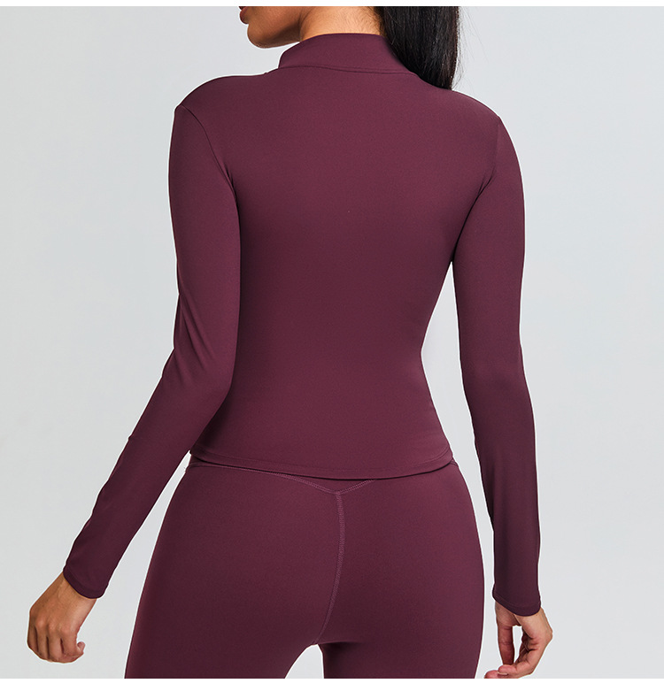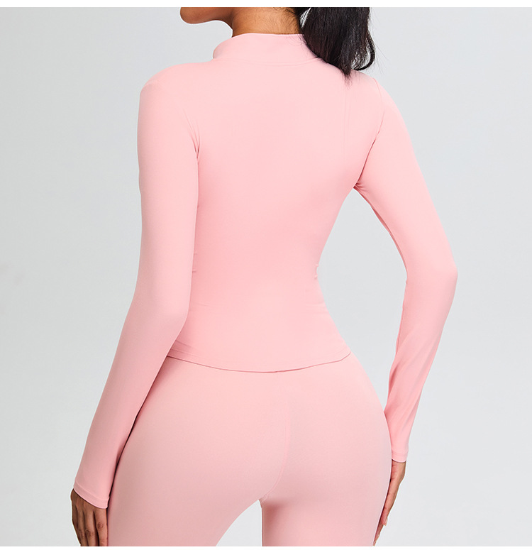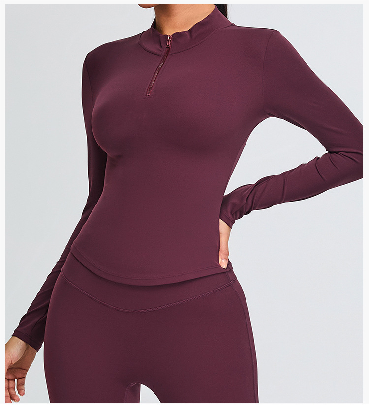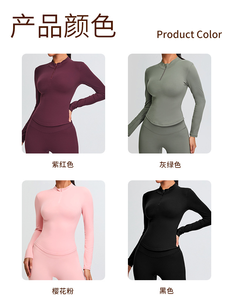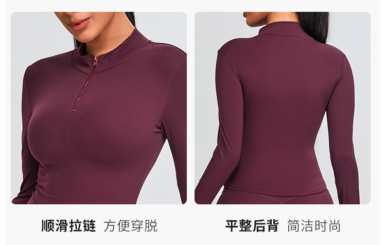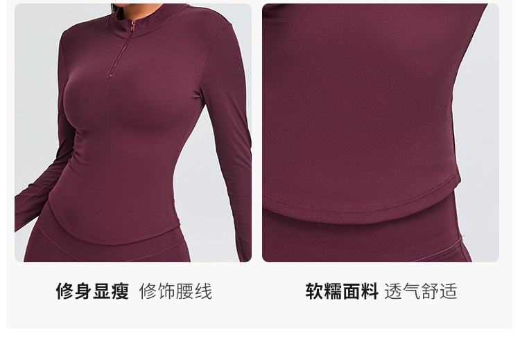 Ropa de yoga de manga larga con cuello alto de otoño e invierno, camisa deportiva de entrenamiento delgado con media cremallera para mujer, camiseta, ropa de fitness transpirable delgada