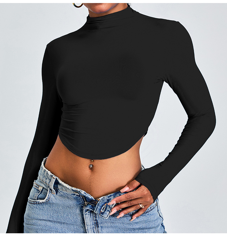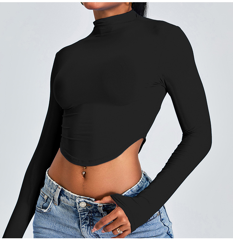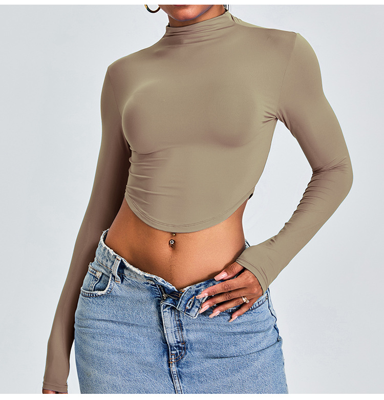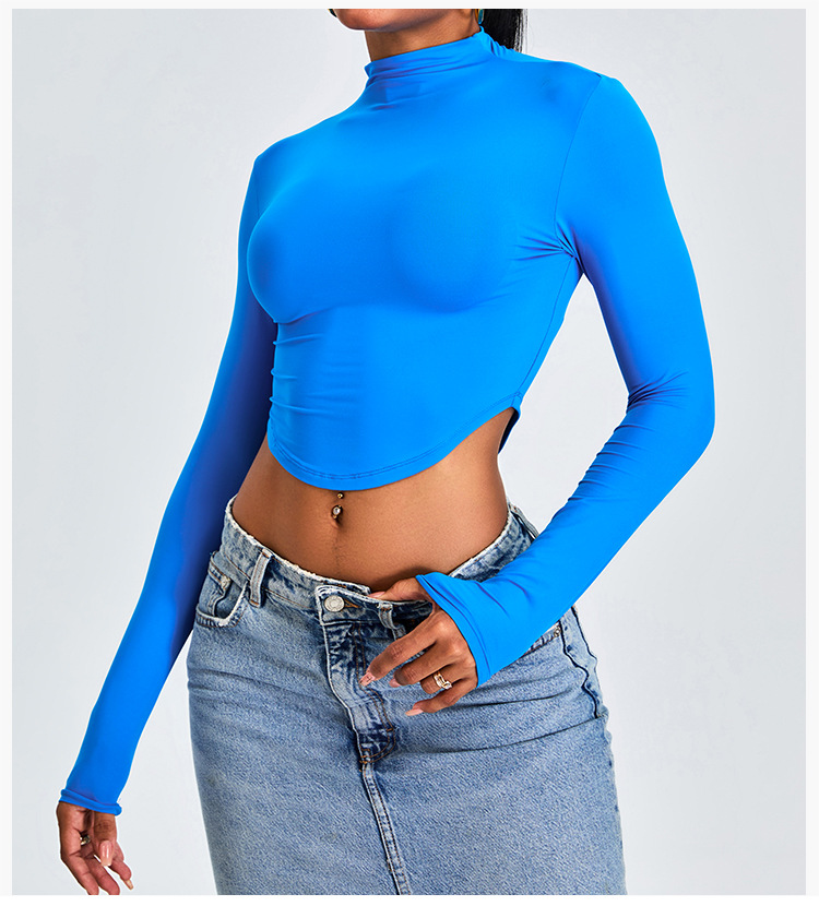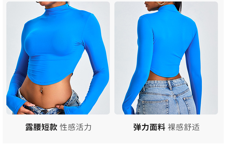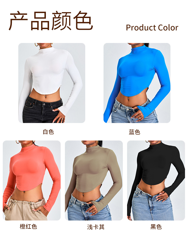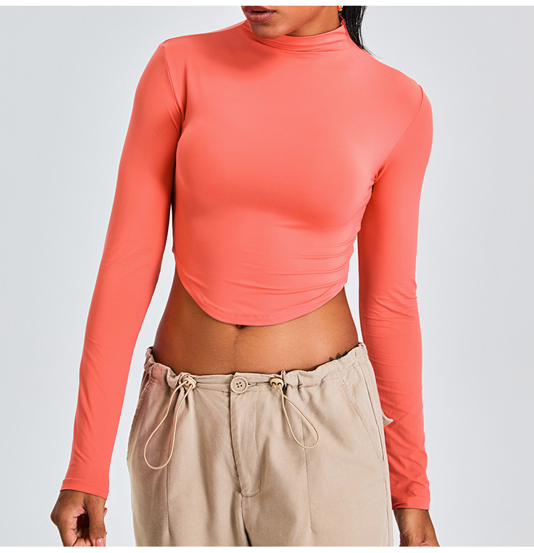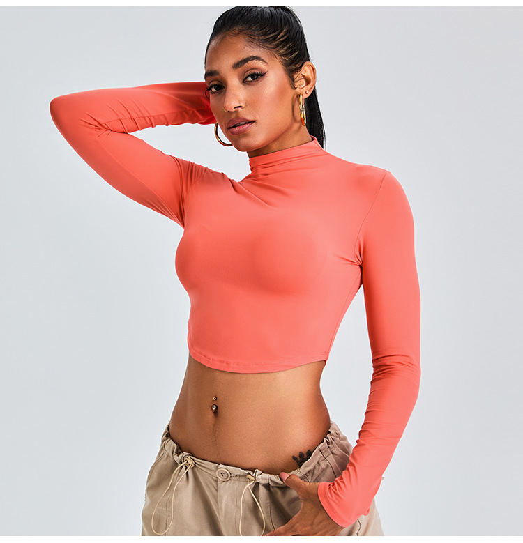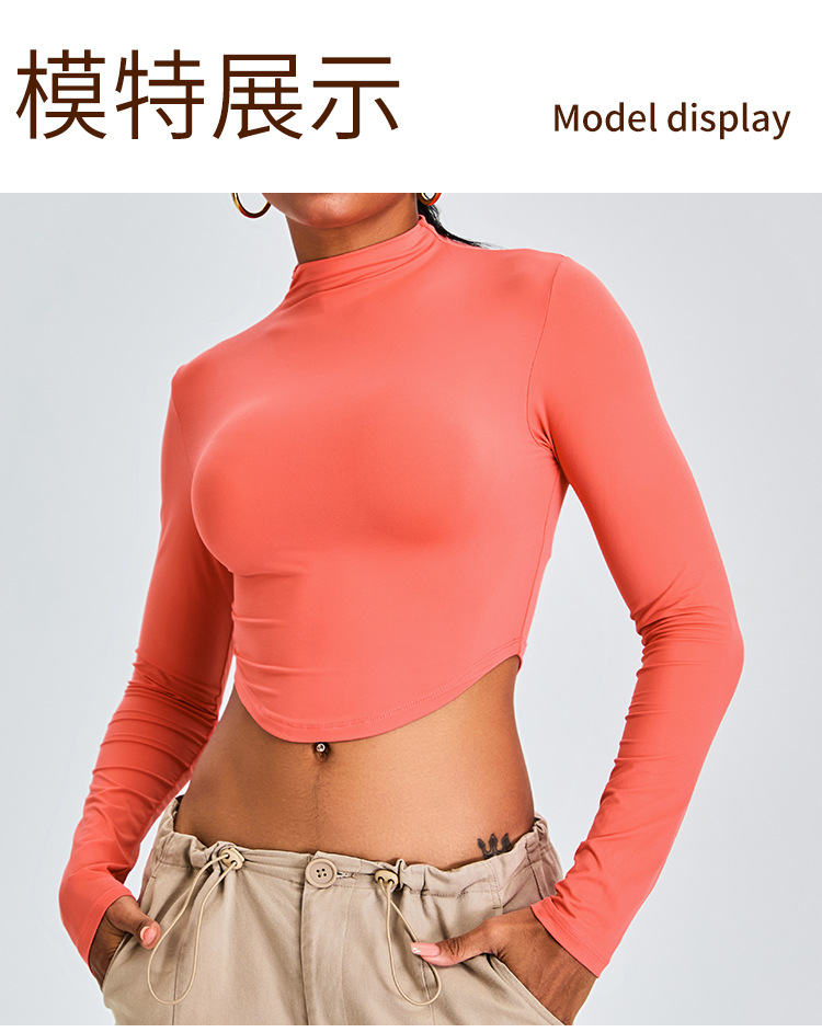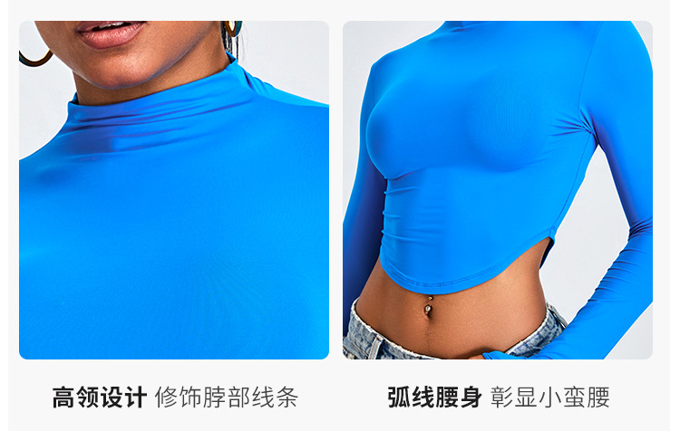 Otoño y invierno nueva camiseta deportiva de cuello medio alto camiseta de mujer delgada ropa de yoga de manga larga secado rápido ropa de ejercicio para correr