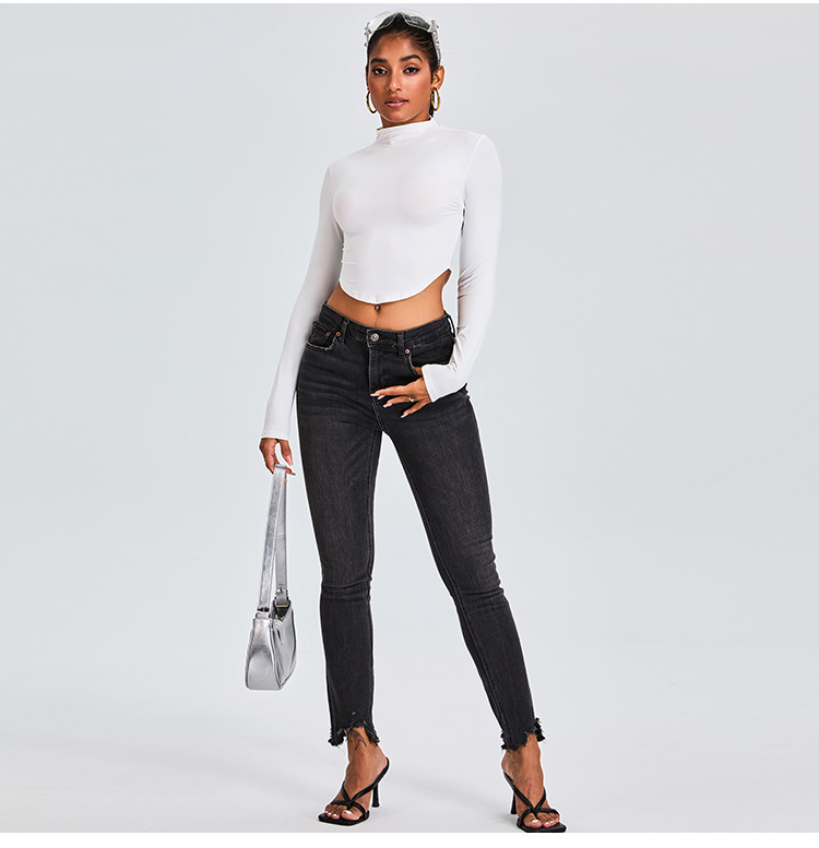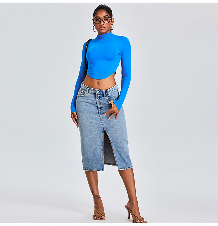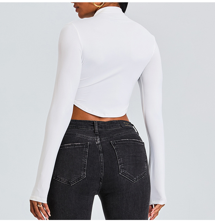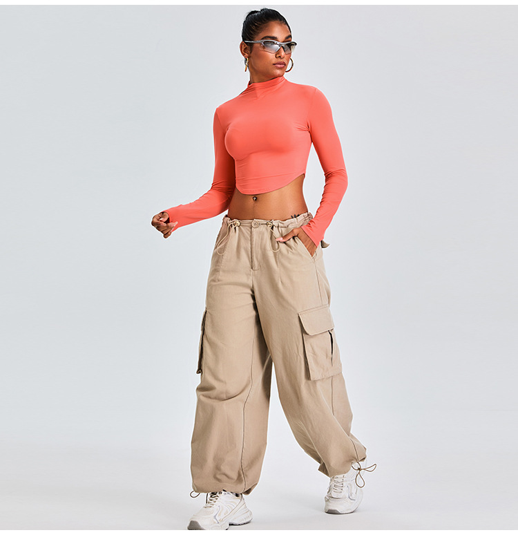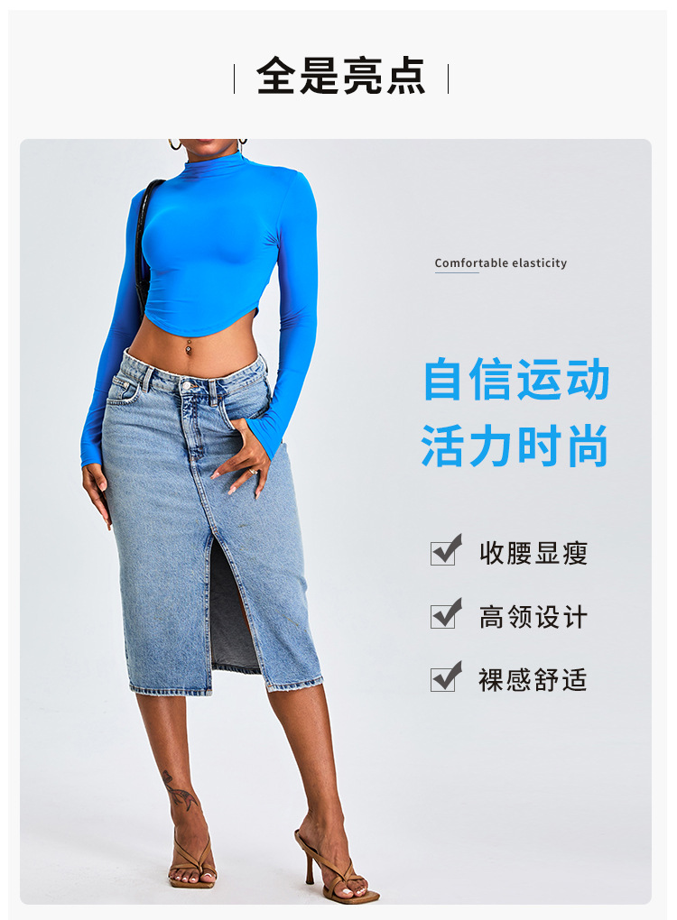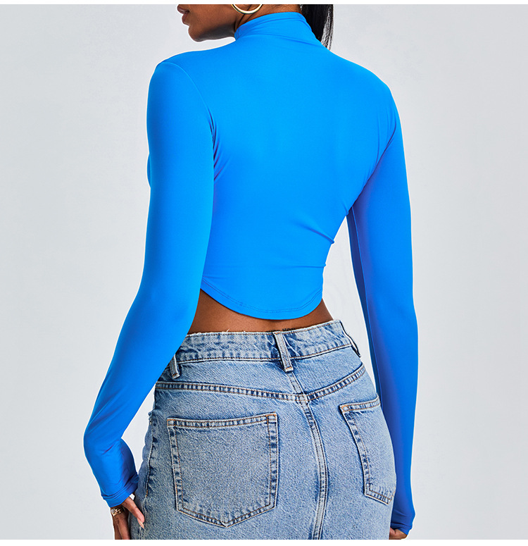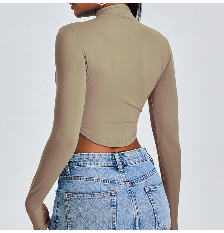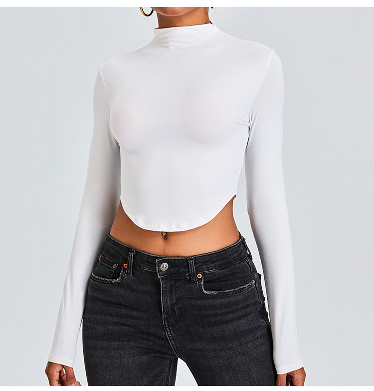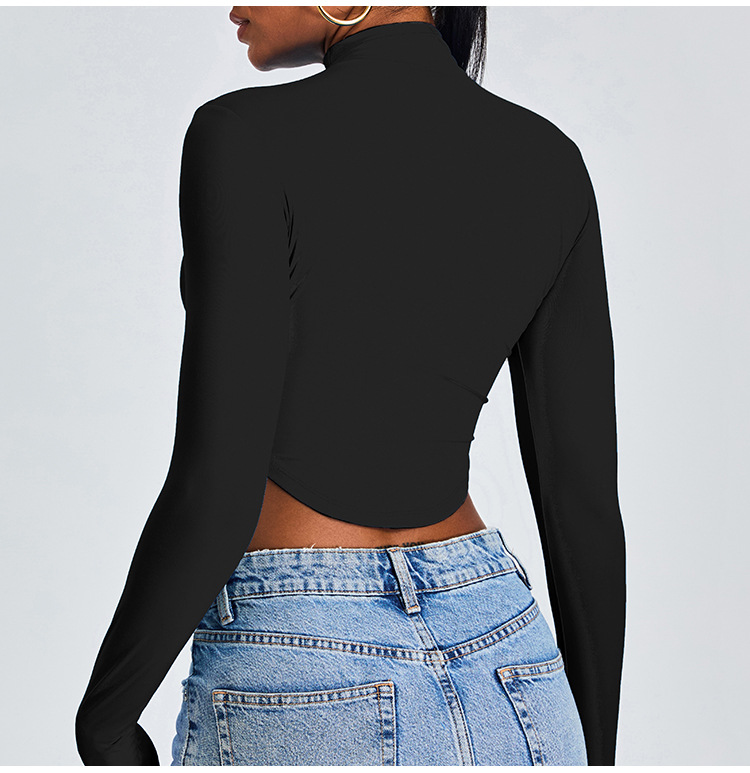 Otoño y invierno nueva camiseta deportiva de cuello medio alto camiseta de mujer delgada ropa de yoga de manga larga secado rápido ropa de ejercicio para correr