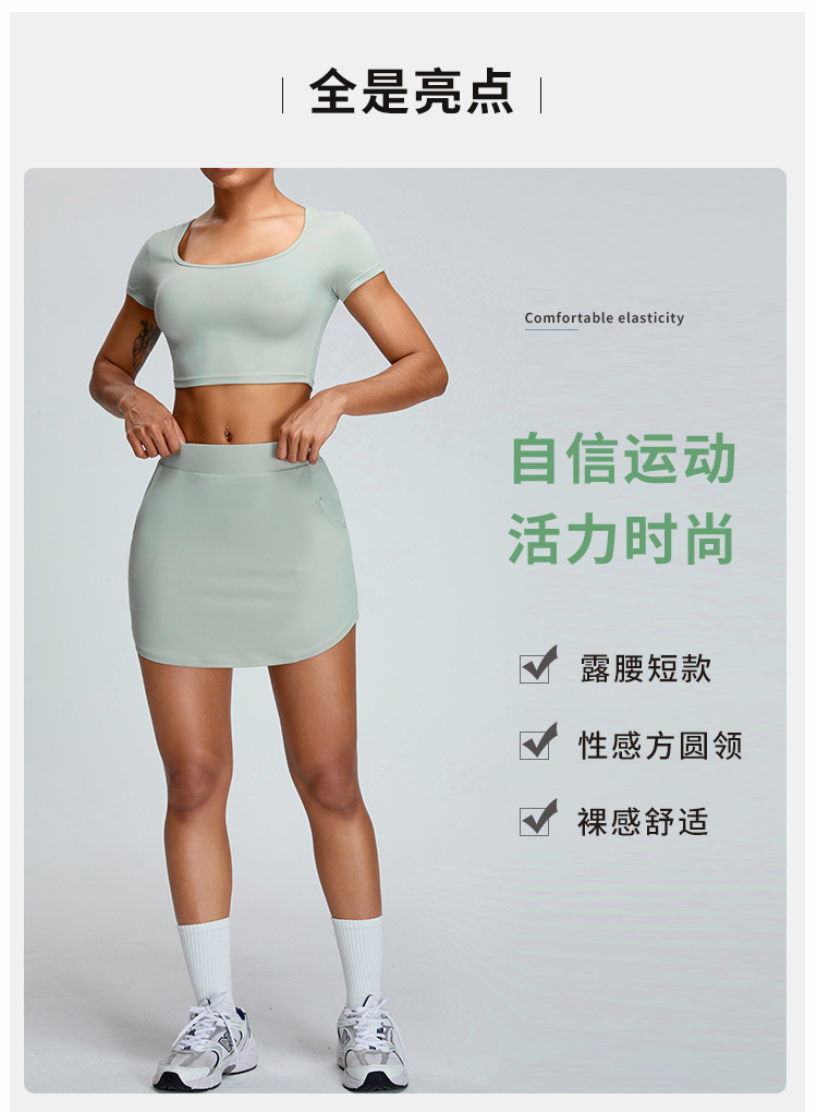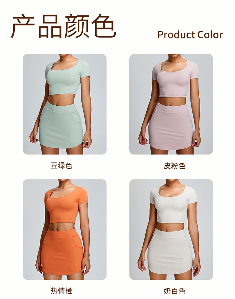 Primavera y verano nueva ropa de yoga traje de manga corta moda femenina simple deportes falda traje casual deportes A-line falda Pantalones