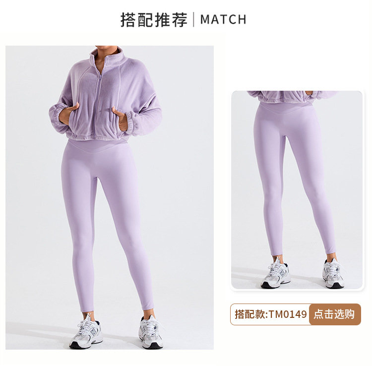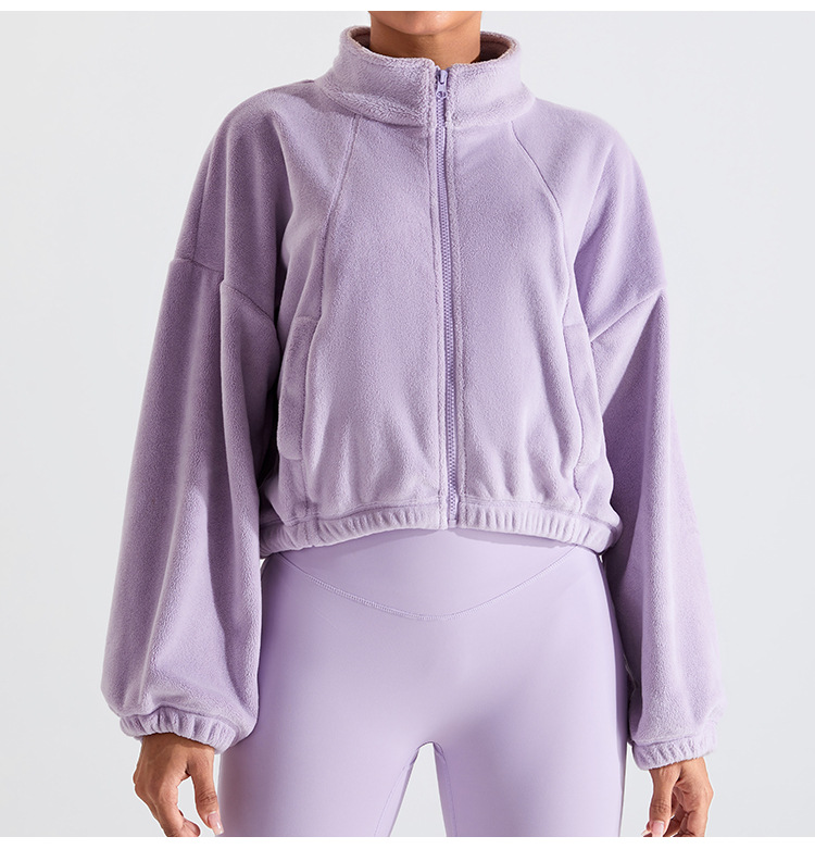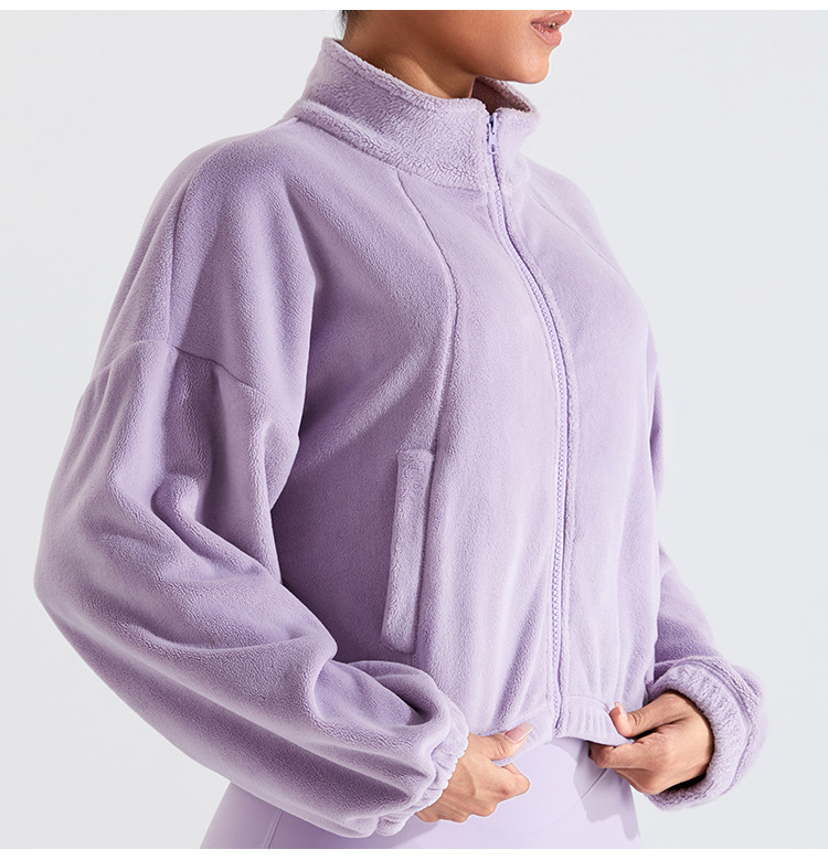 Otoño e Invierno nuevo al aire libre a prueba de viento olímpico chaqueta deportiva de las mujeres collar de soporte de lana suelta forrado caliente yoga chaqueta de fitness