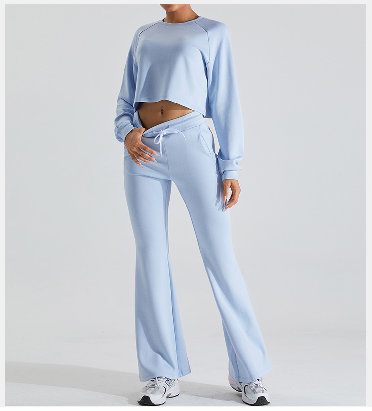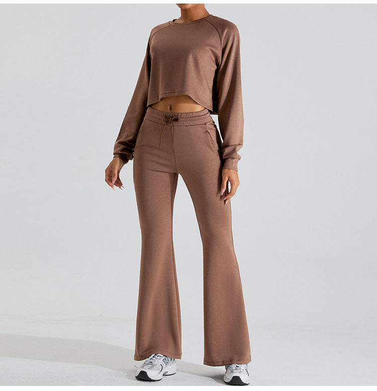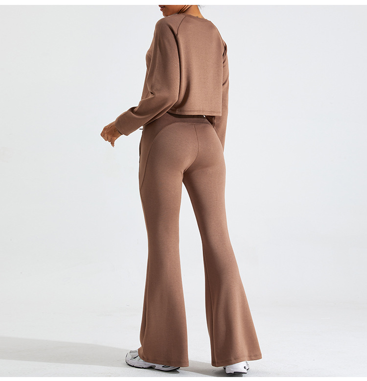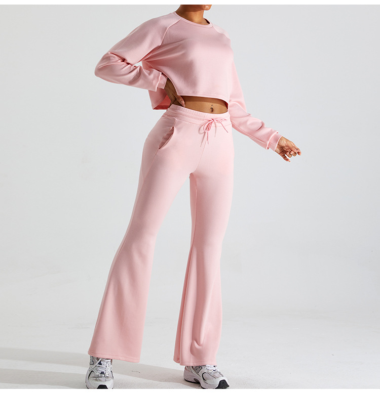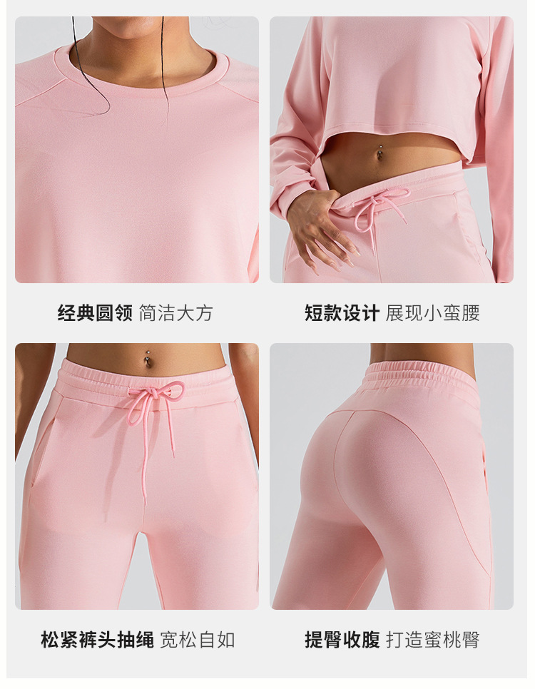 Otoño e Invierno nuevo suéter deportivo casual de manga larga pantalones traje de mujer suave capa de aire glutinoso pantalones de yoga deportes top