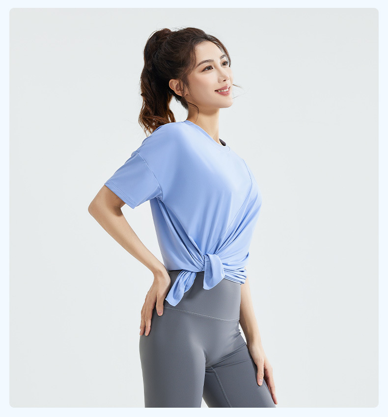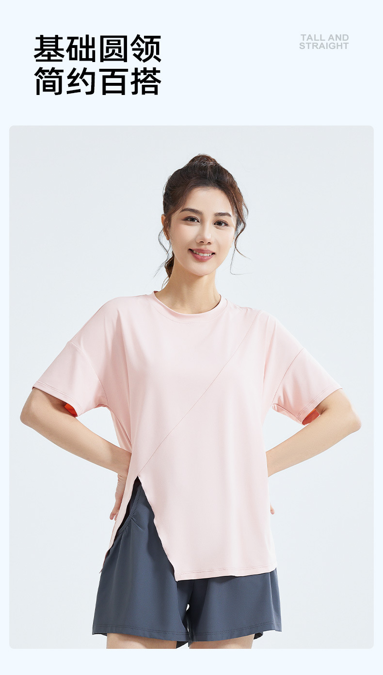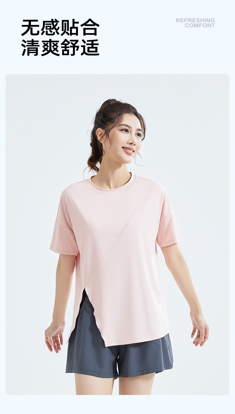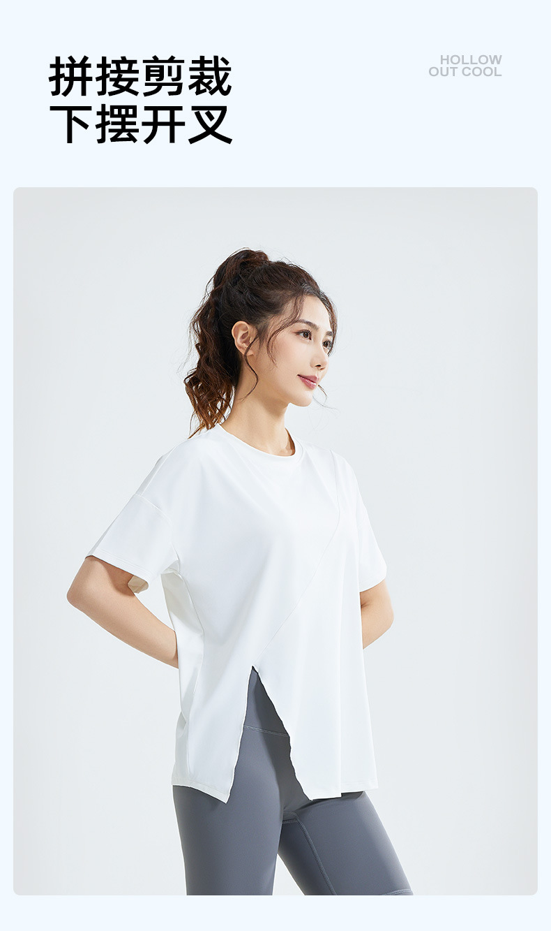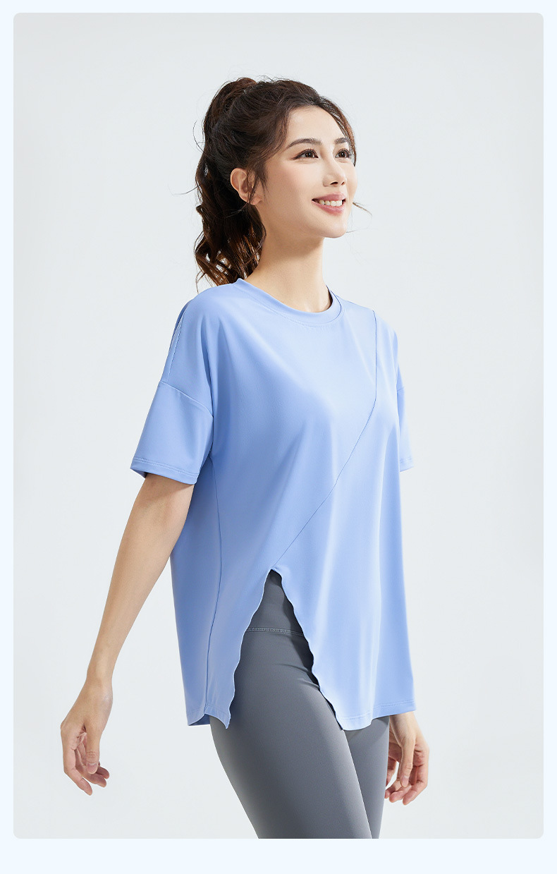Juyitang Traje de yoga suelto dividido Ejercicio de carrera Ejercicio Fitness Top Blusa Manga corta Verano Mujer