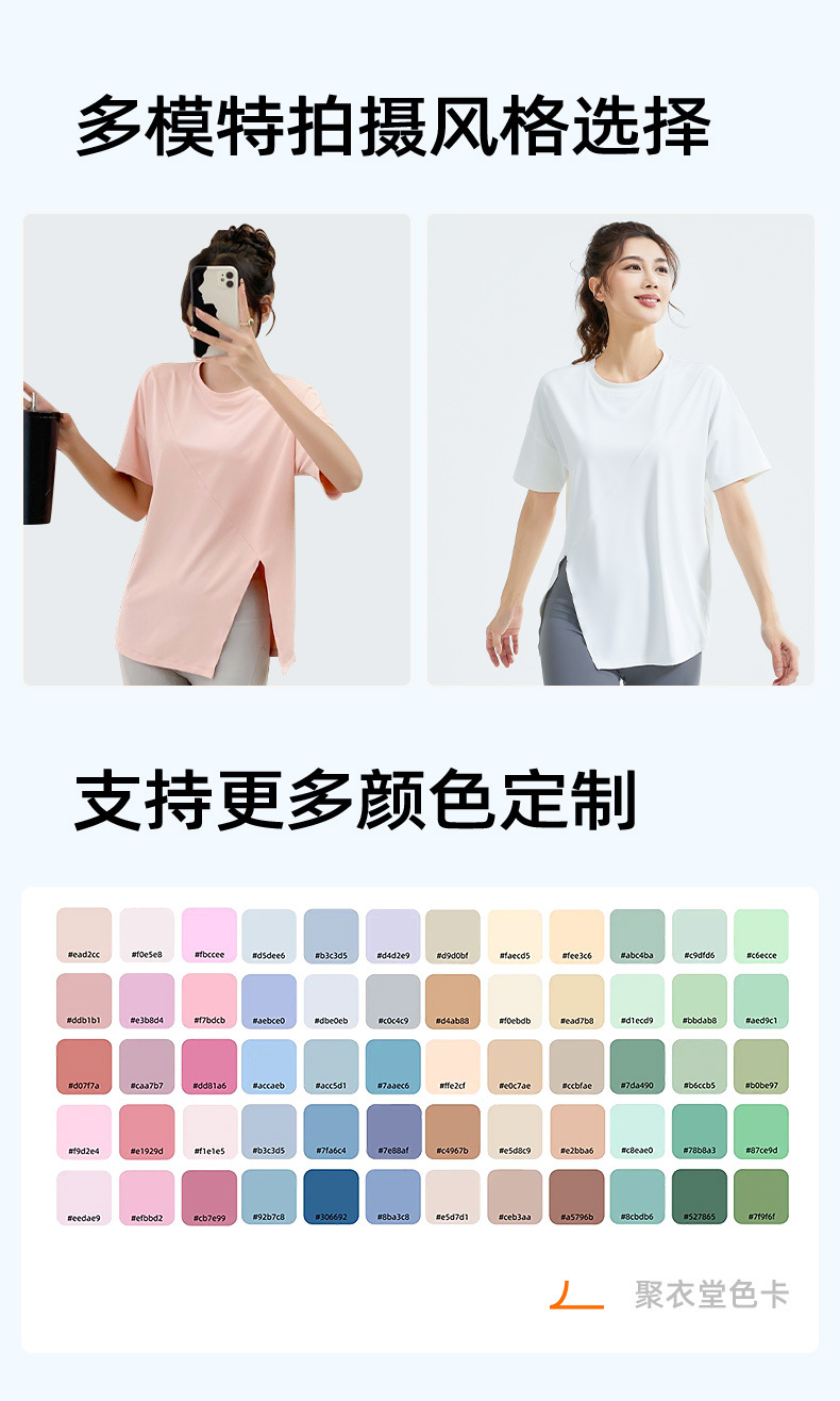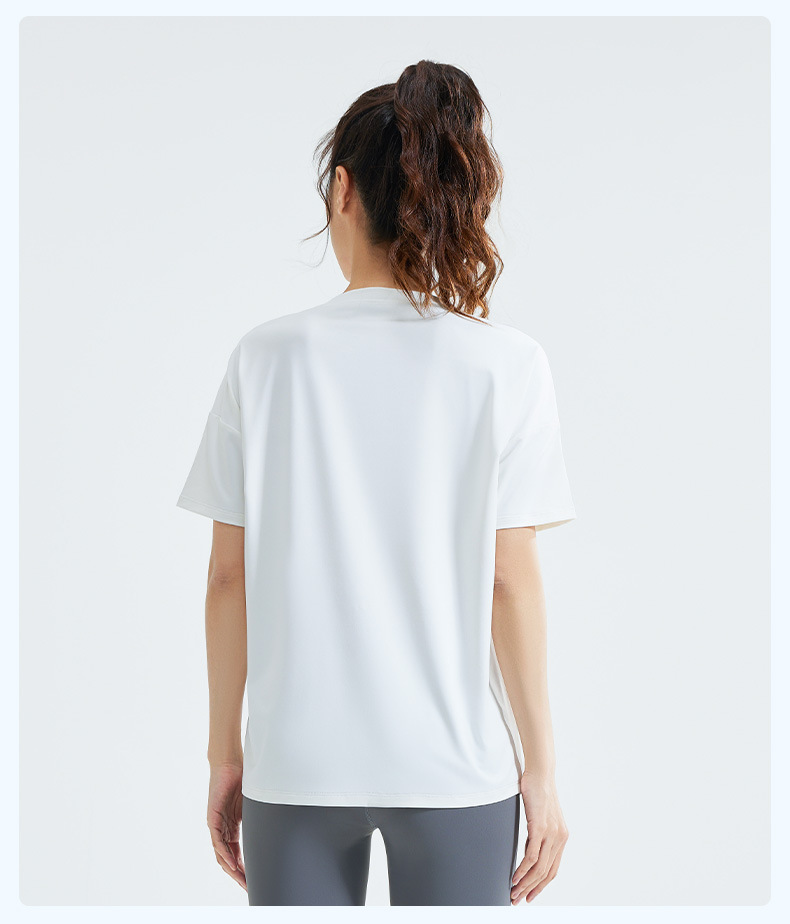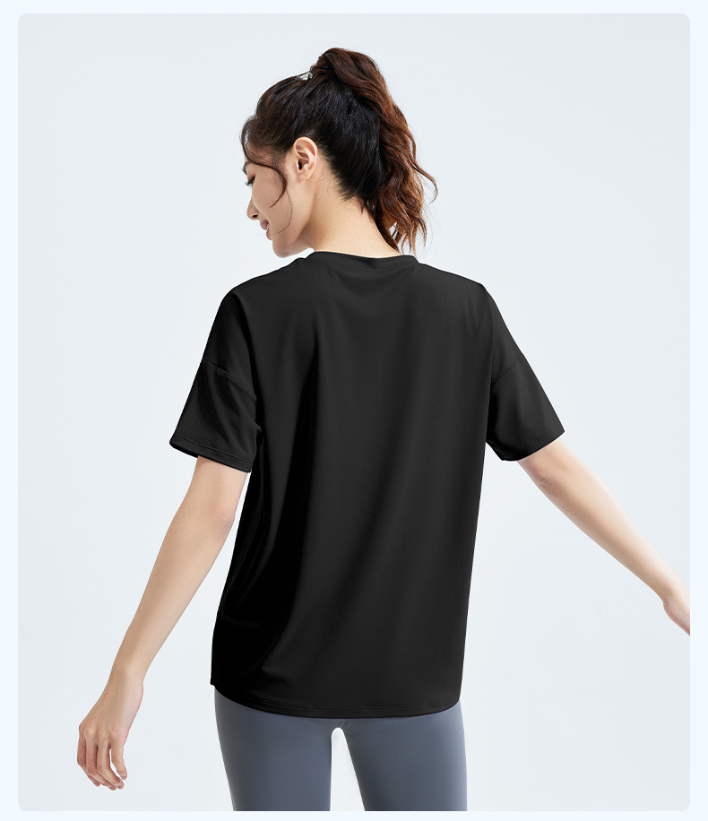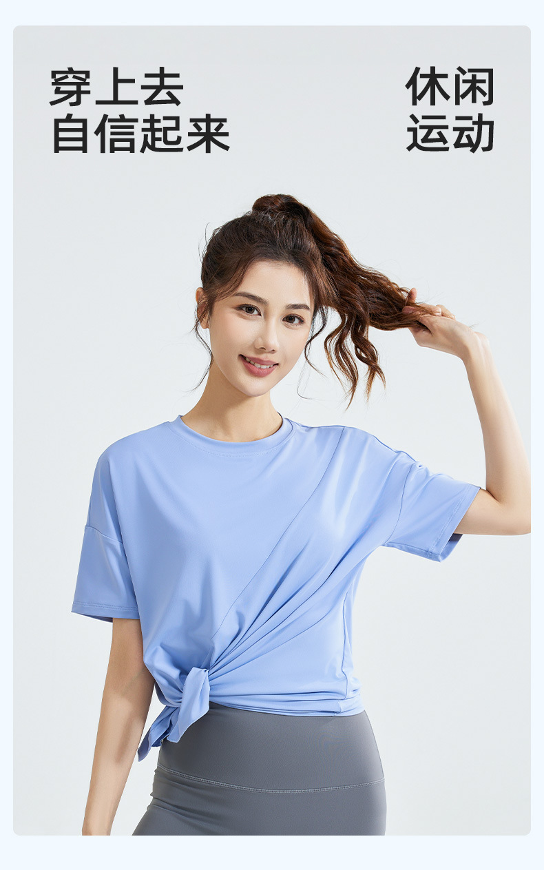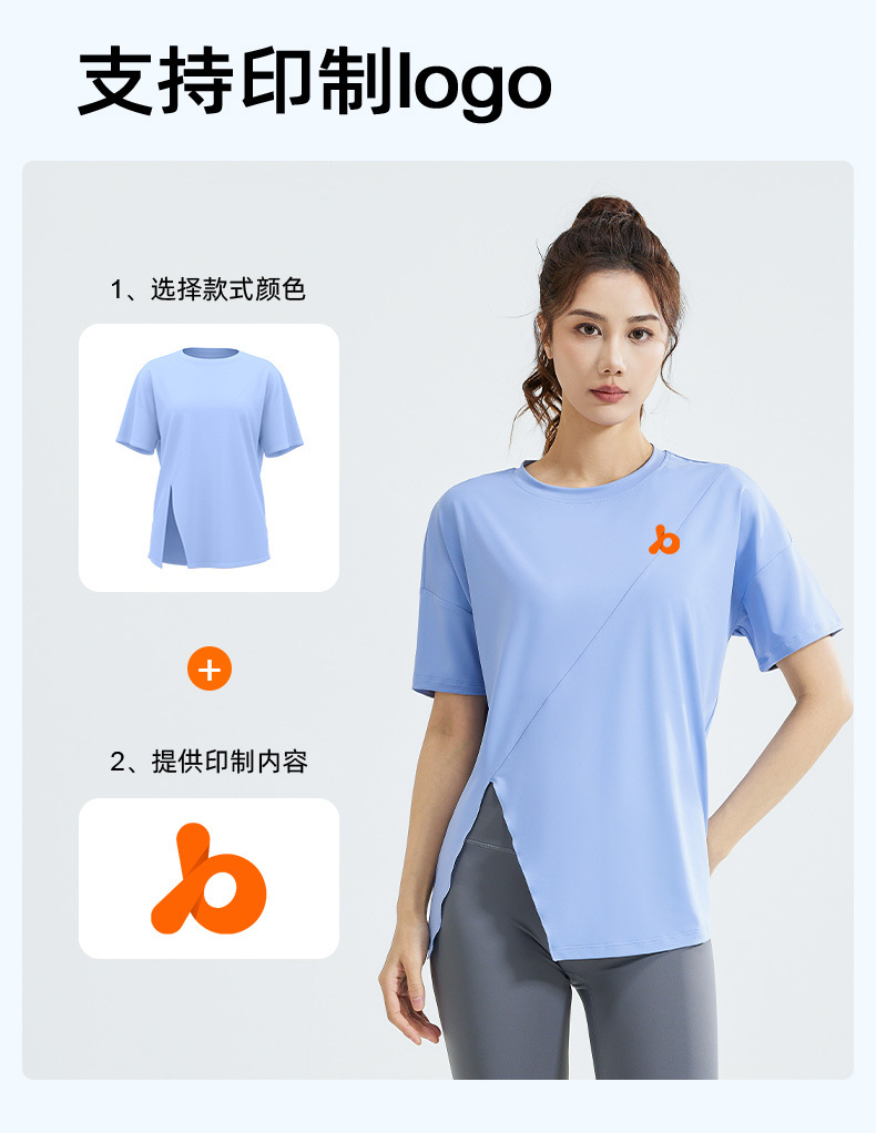 Juyitang Traje de yoga suelto dividido Ejercicio de carrera Ejercicio Fitness Top Blusa Manga corta Verano Mujer