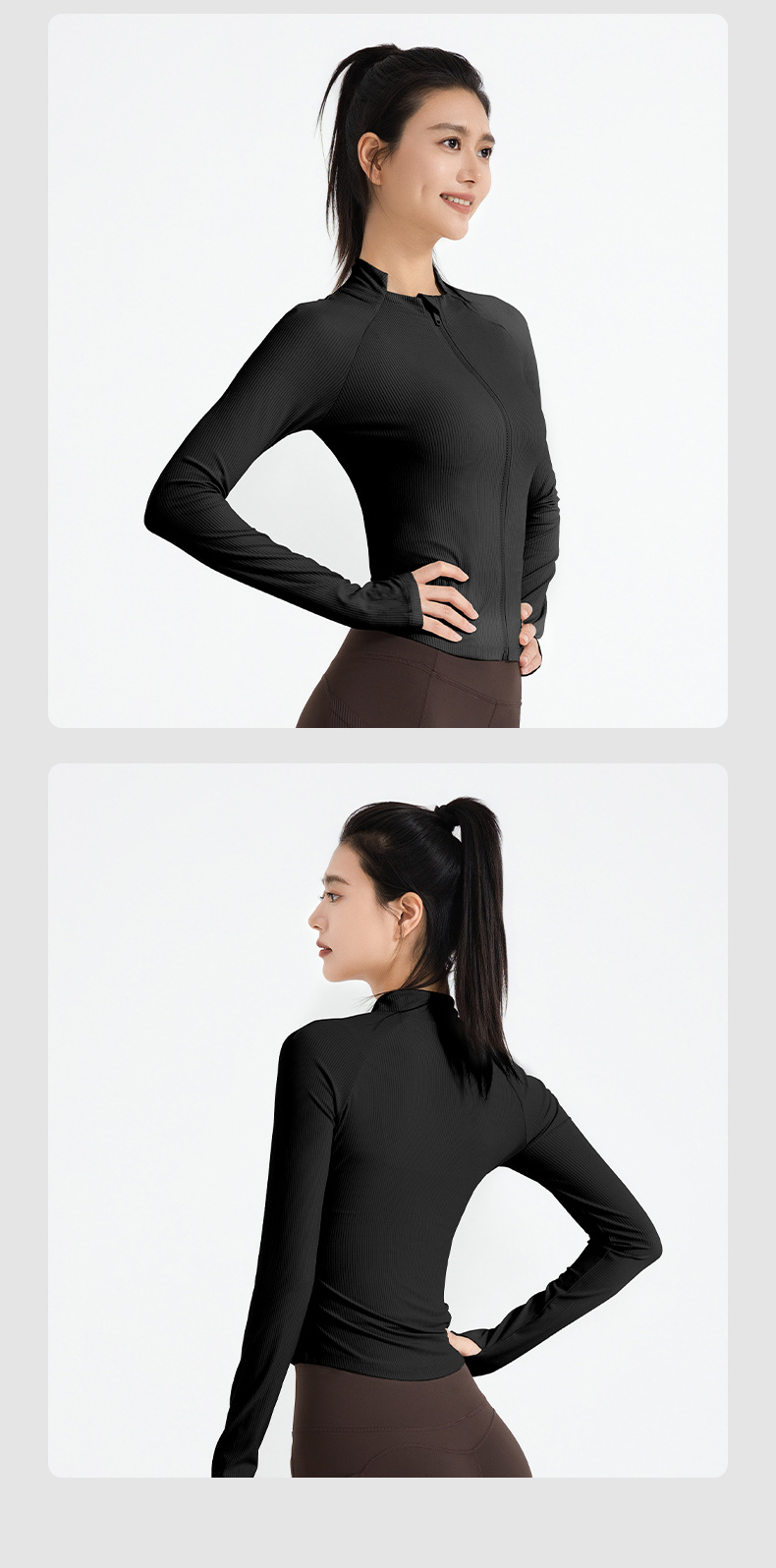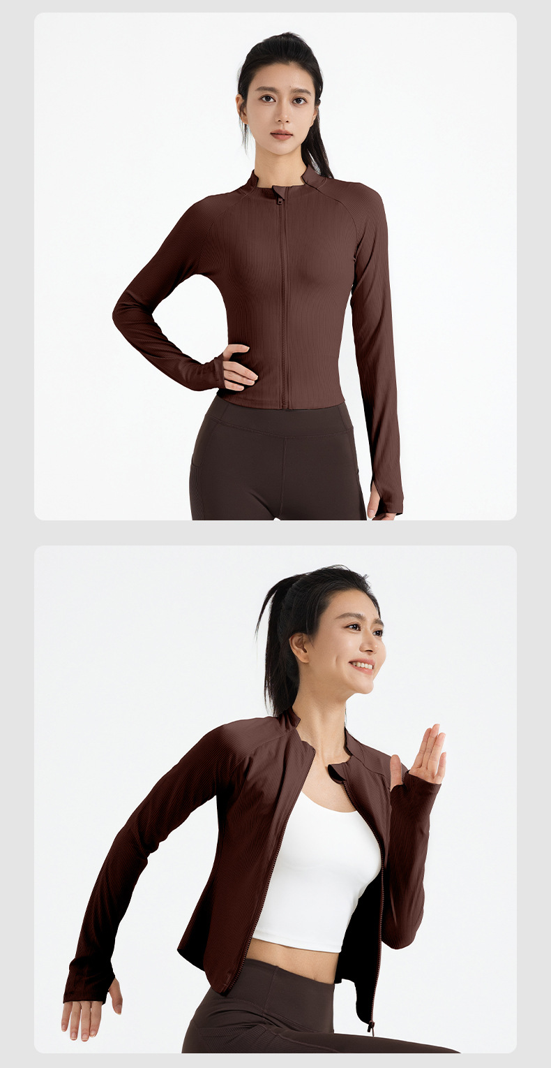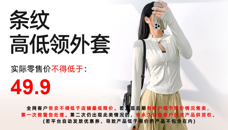 Juyitang nueva chaqueta deportiva delgada de cuello alto y bajo a rayas para correr chaqueta de yoga para mujeres