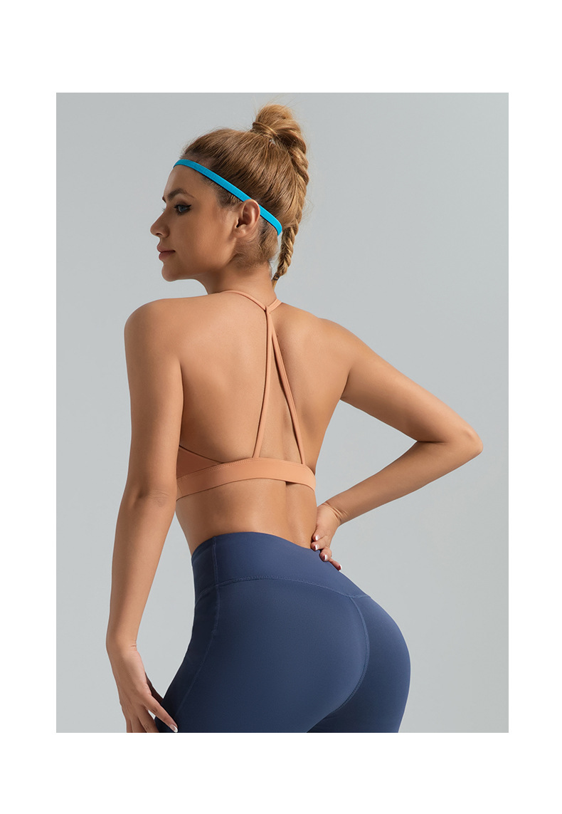 Zona transfronteriza Sujetador de cuello colgante de alta elasticidad Almohadilla para el pecho integrada fija Ropa interior deportiva Fitness Yoga Beauty Back Sling