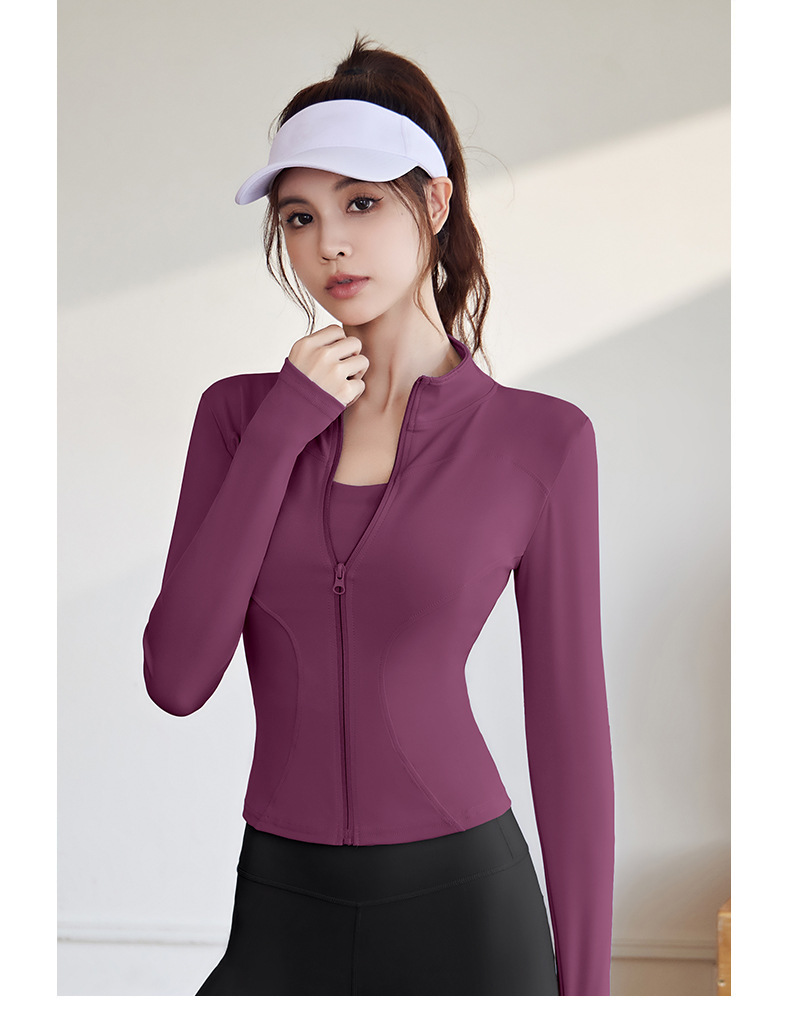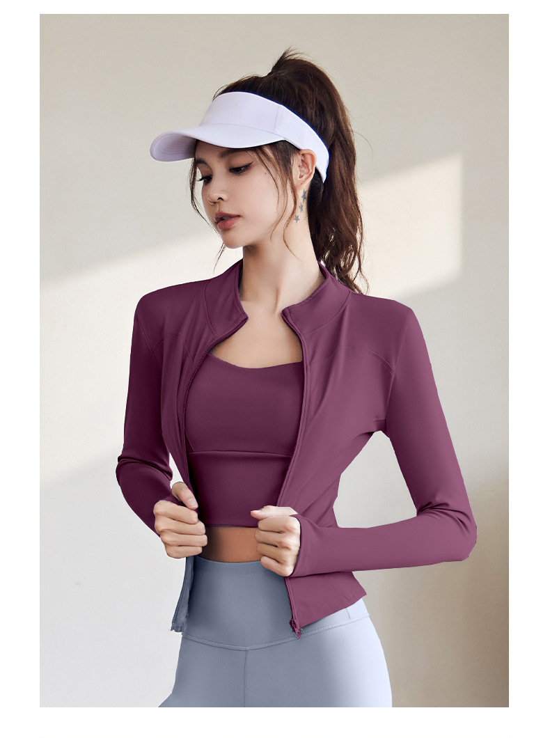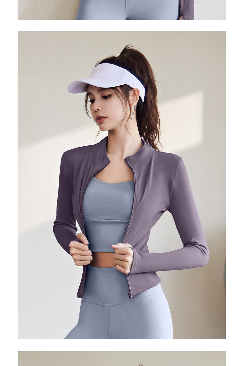 Juyitang Spring and Autumn Sports Chaqueta de manga larga para mujer Traje de yoga para correr Chaqueta superior