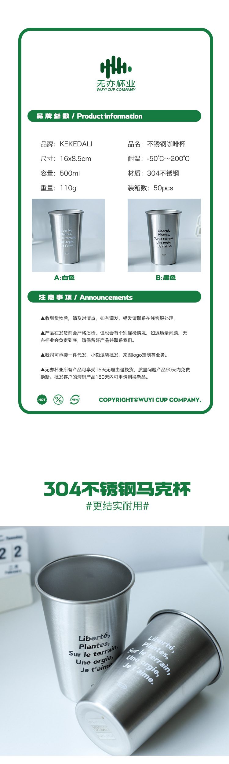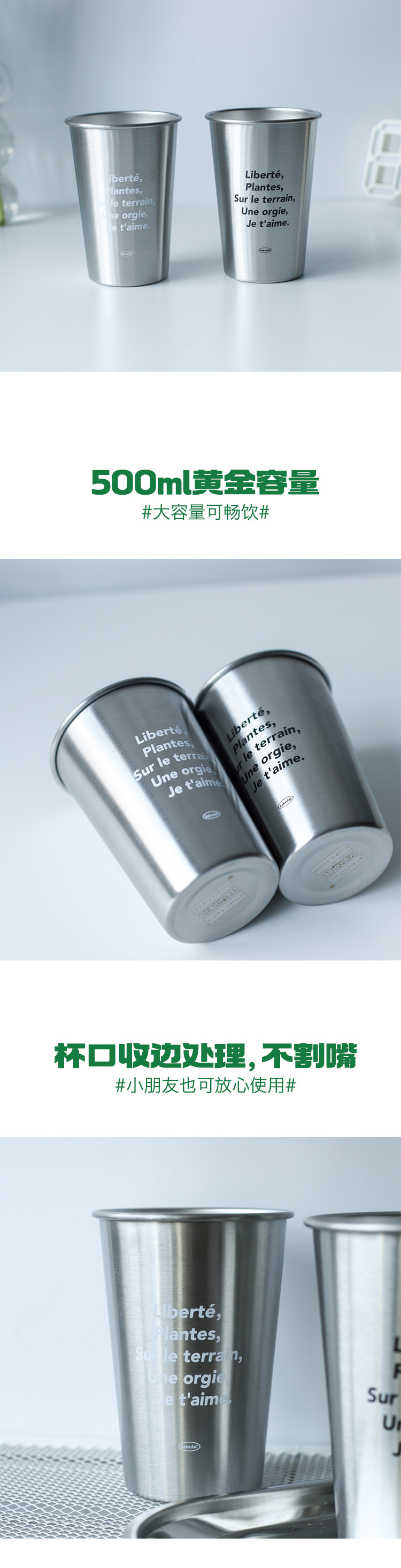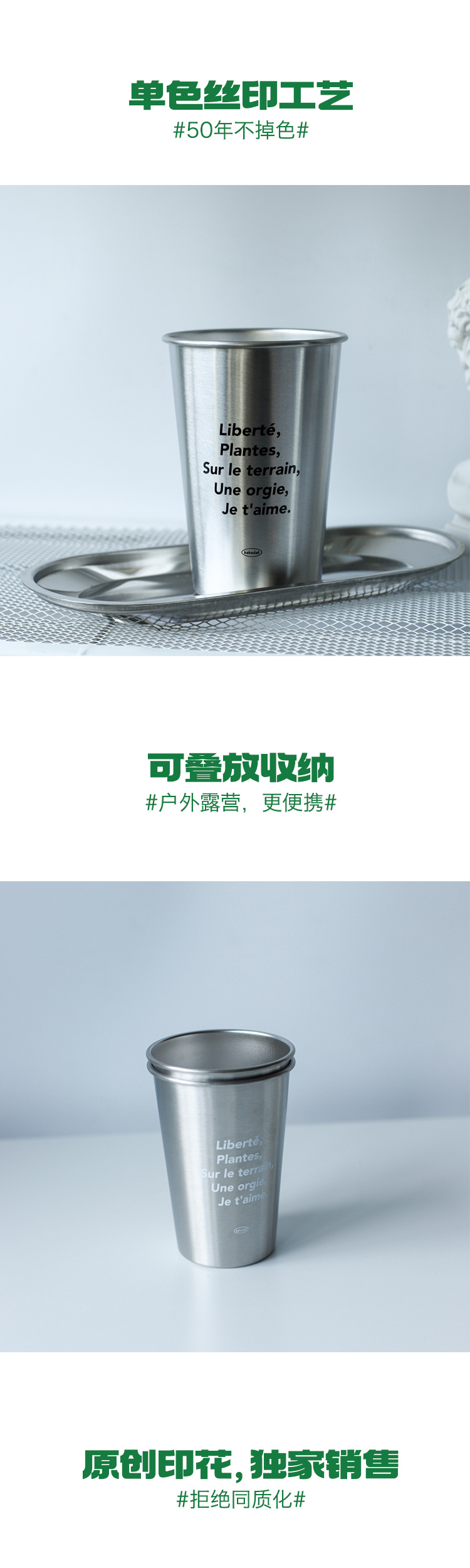 Corea del Sur ins estilo simple 304 taza de acero inoxidable al aire libre camping apilable taza de café industrial estilo pareja taza