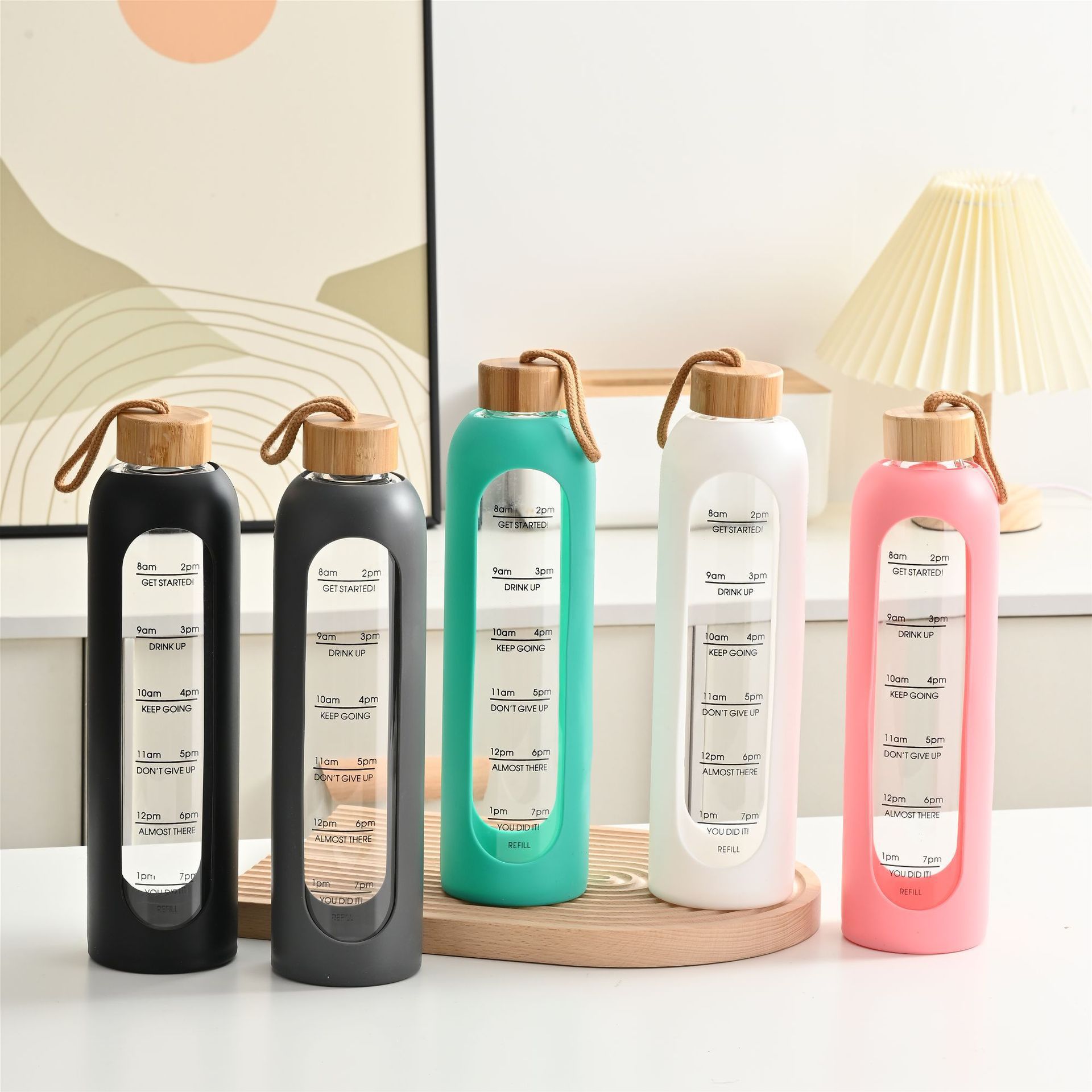 Botella de agua de vidrio portátil de gran capacidad, copa de agua de vidrio de borosilicato resistente a altas temperaturas de una sola capa, una pequeña cantidad de personalización