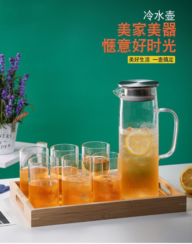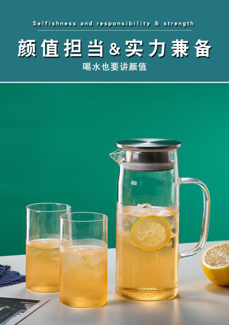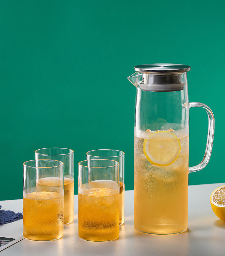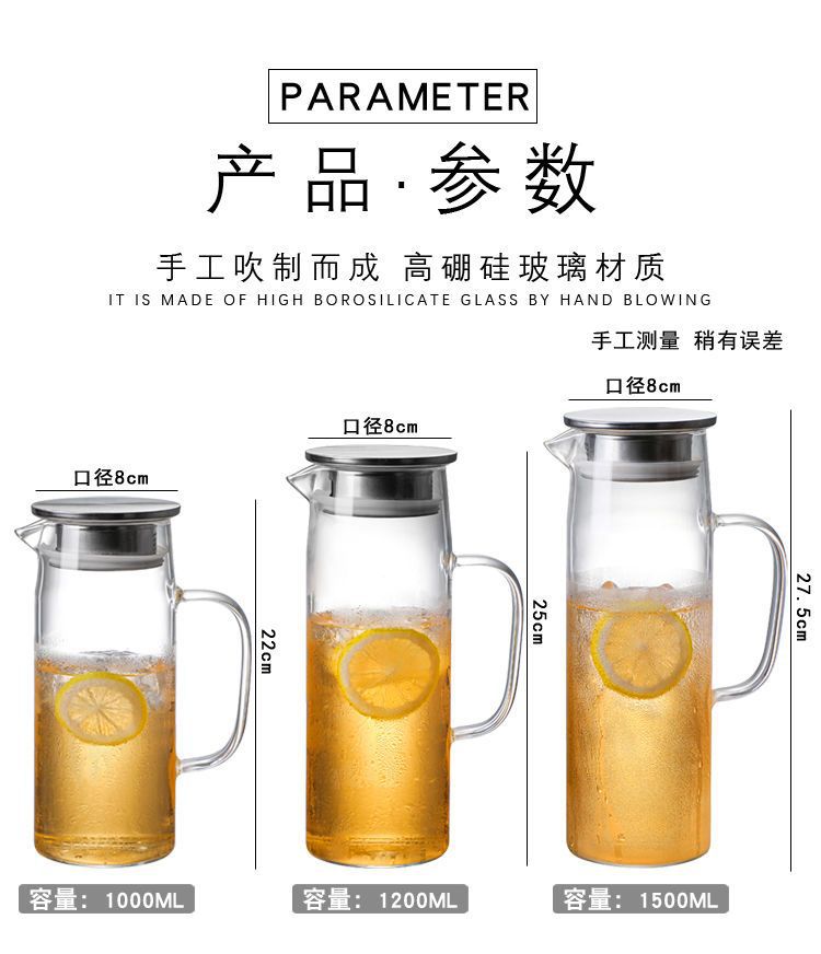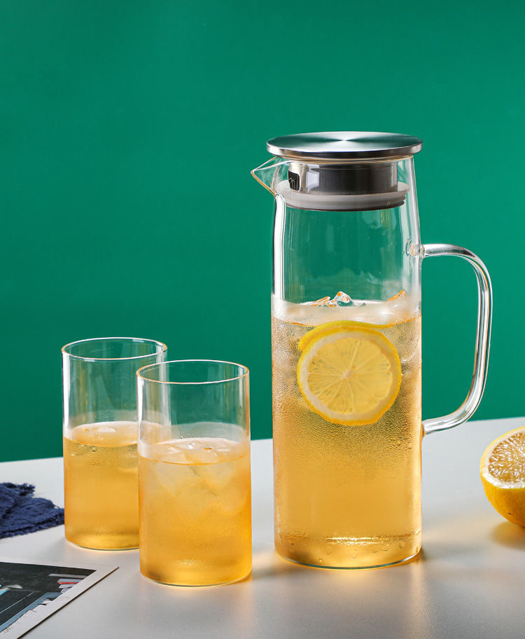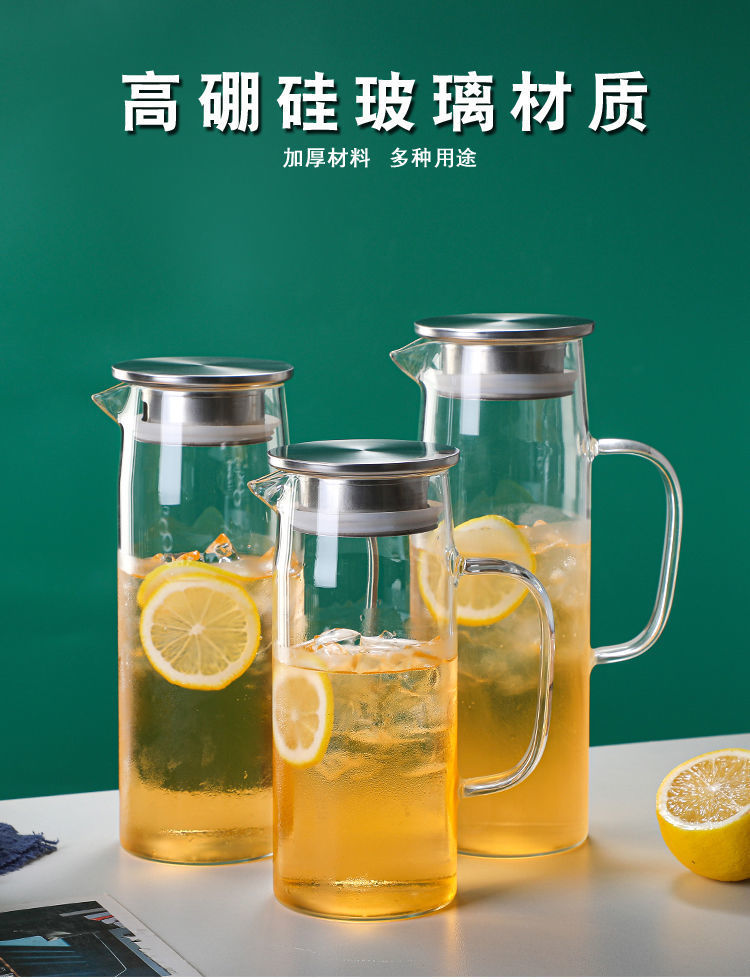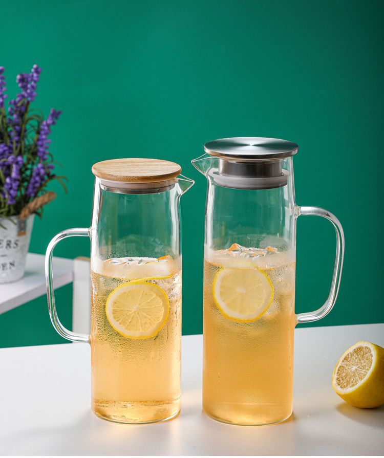 En stock botella de agua fría de vidrio borosilicato con mango simple olla recta de gran capacidad botella de agua fría de vidrio engrosado