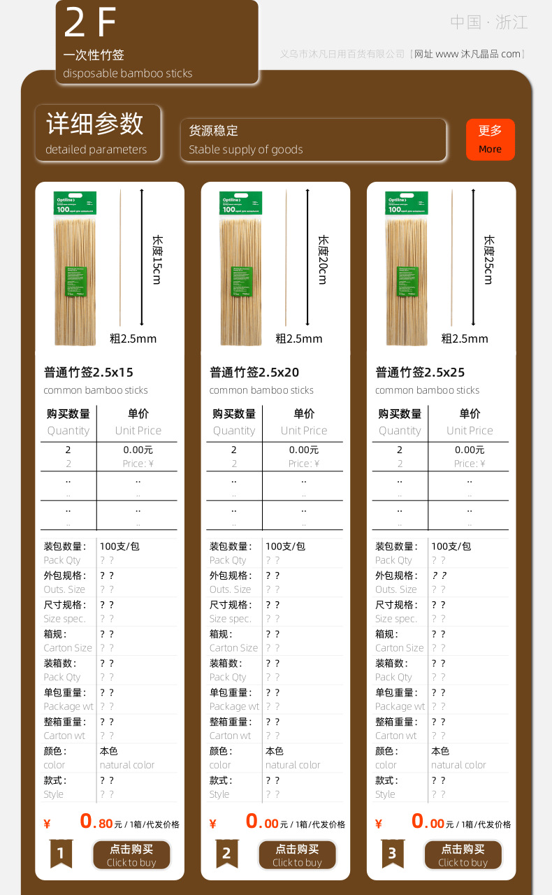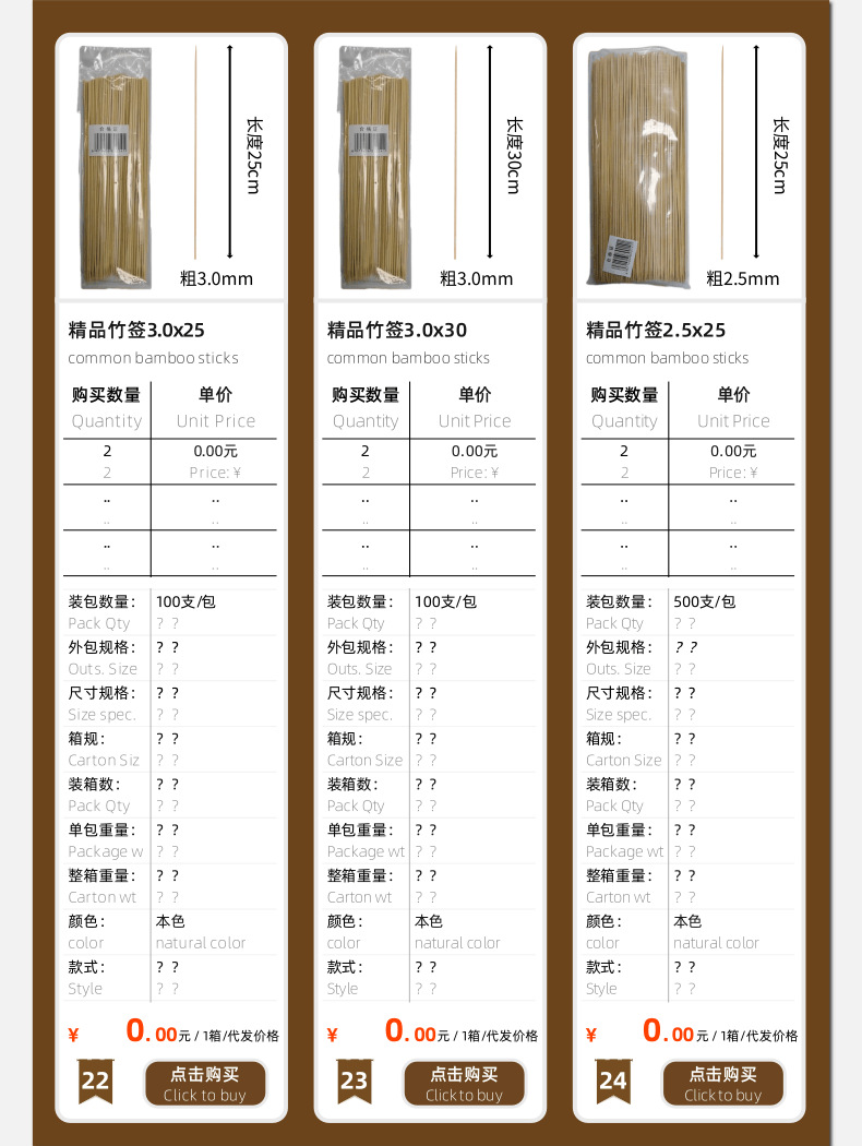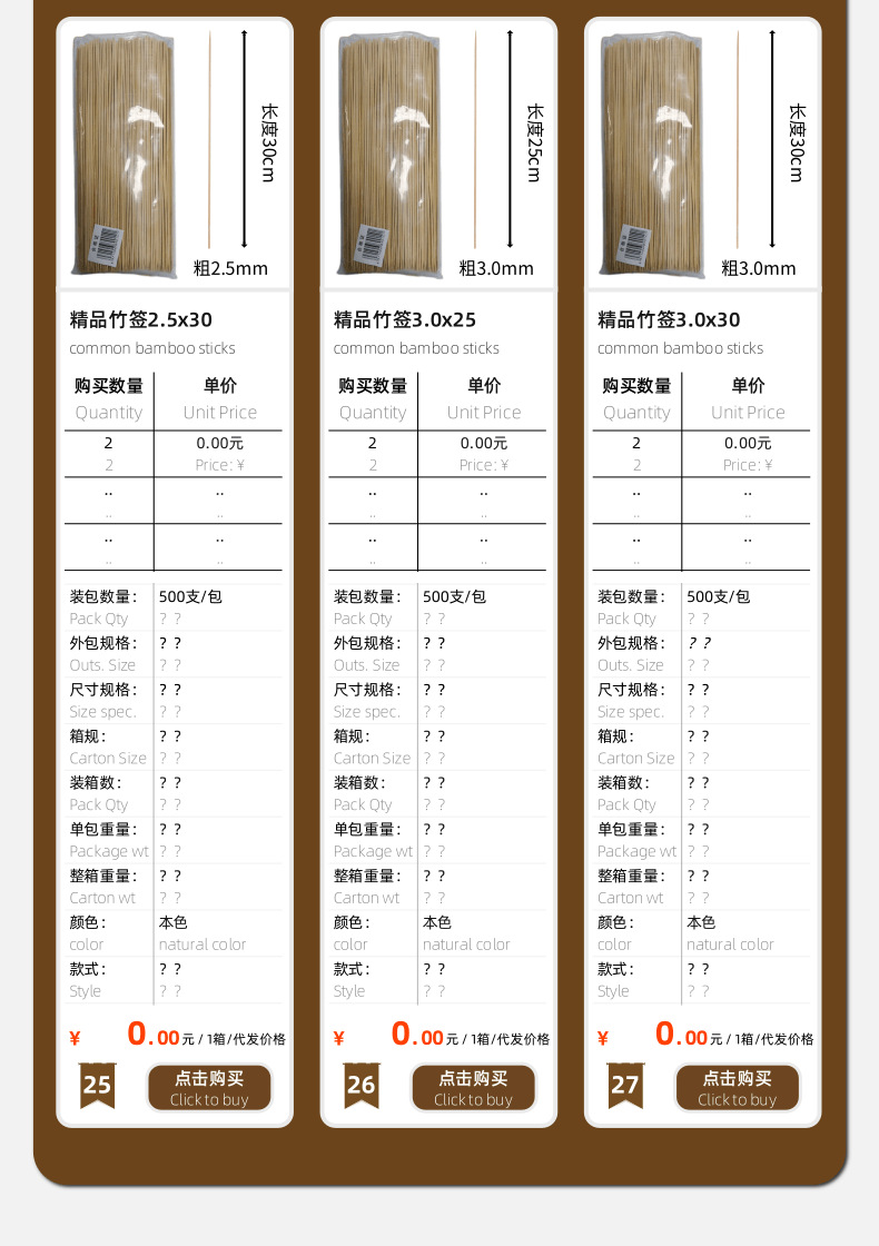 一个产品,29个SKU,一次性竹签:2包起批价格:【可混批】