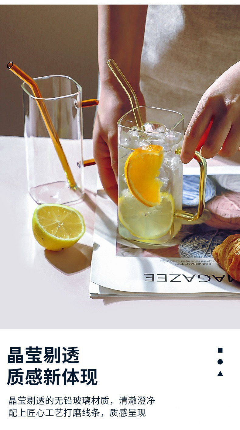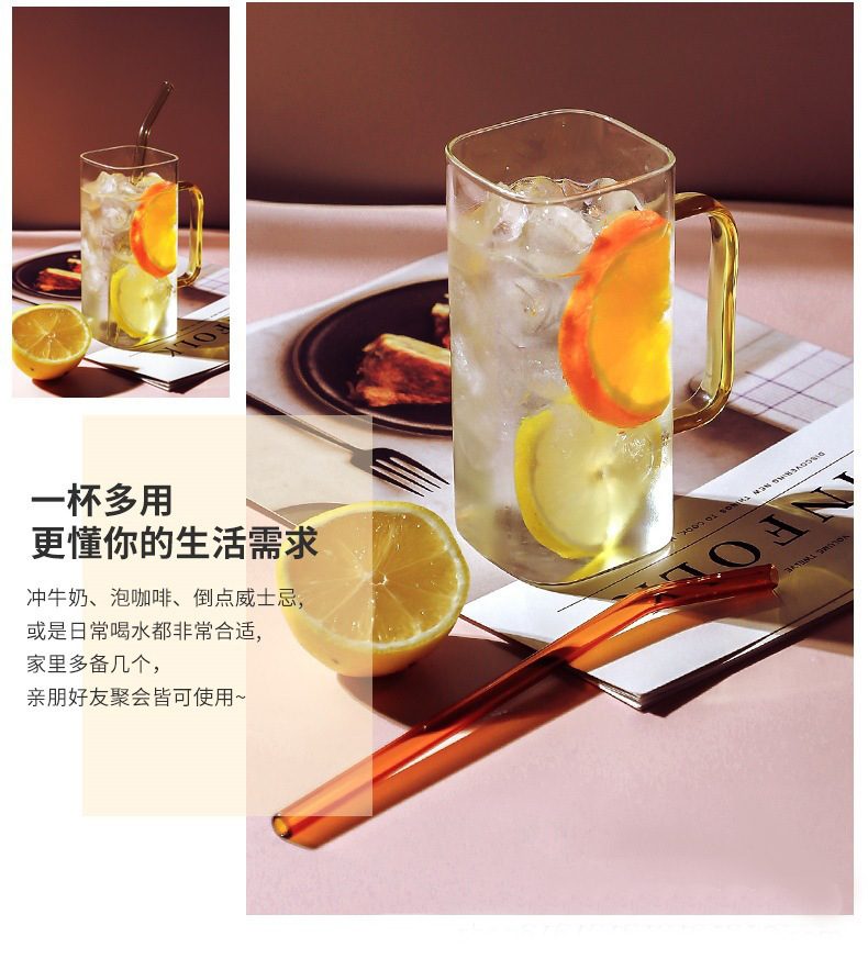 Vaso de vidrio con alto contenido de borosilicato con asa, taza de agua de paja cuadrada de alto valor para el hogar, taza de agua calefactable de fondo plano resistente a altas temperaturas