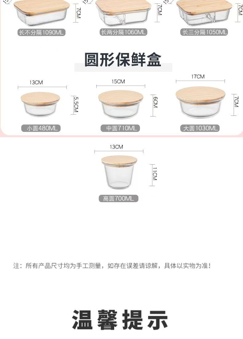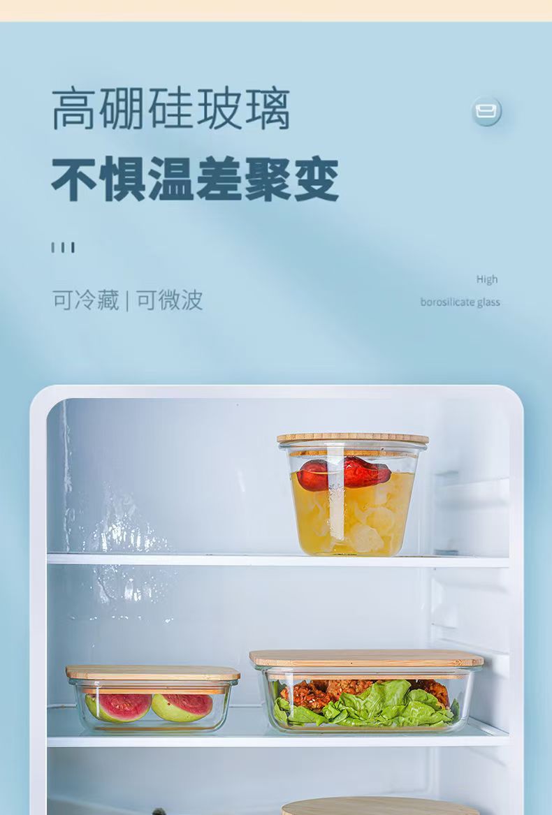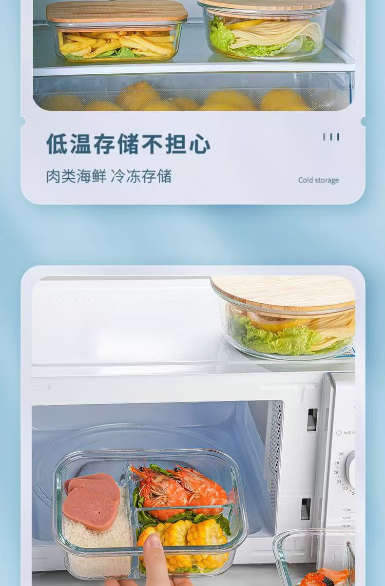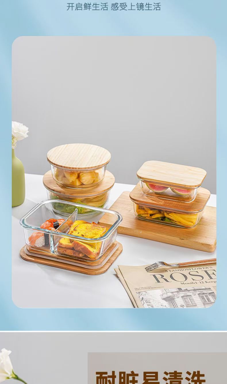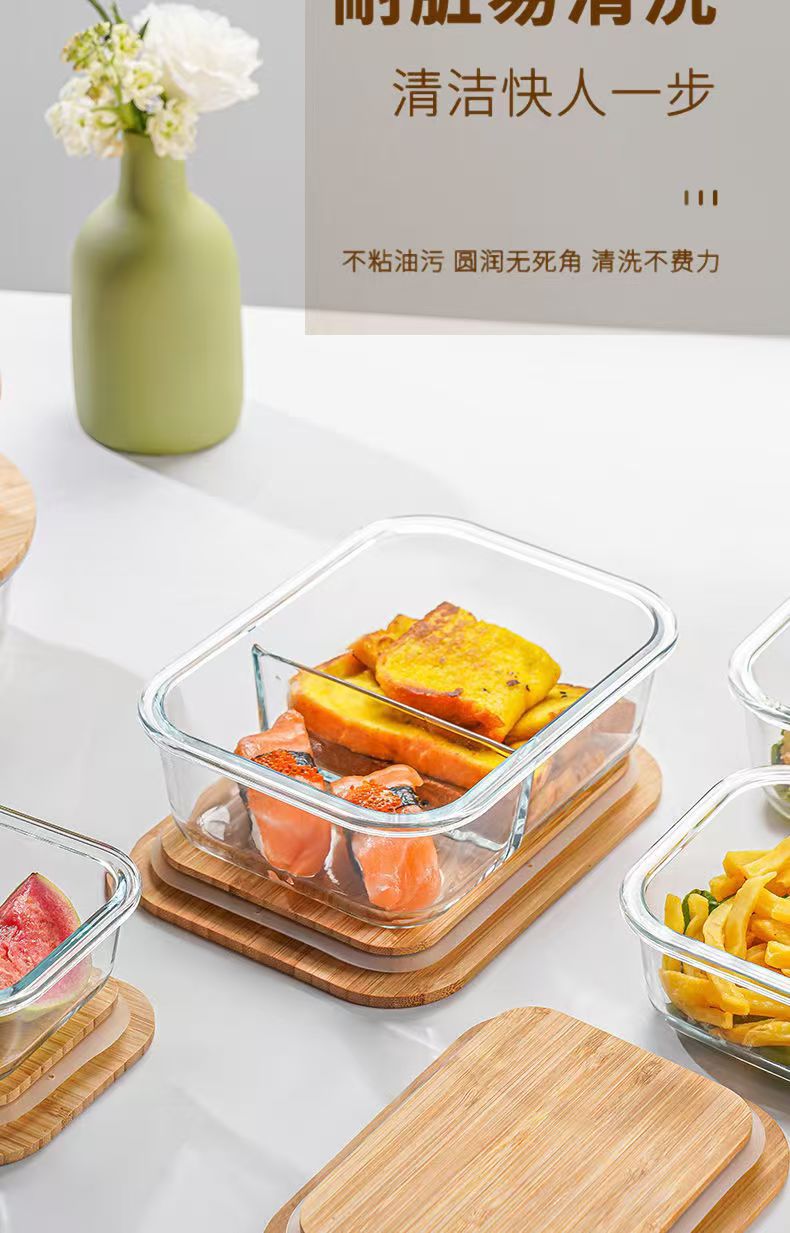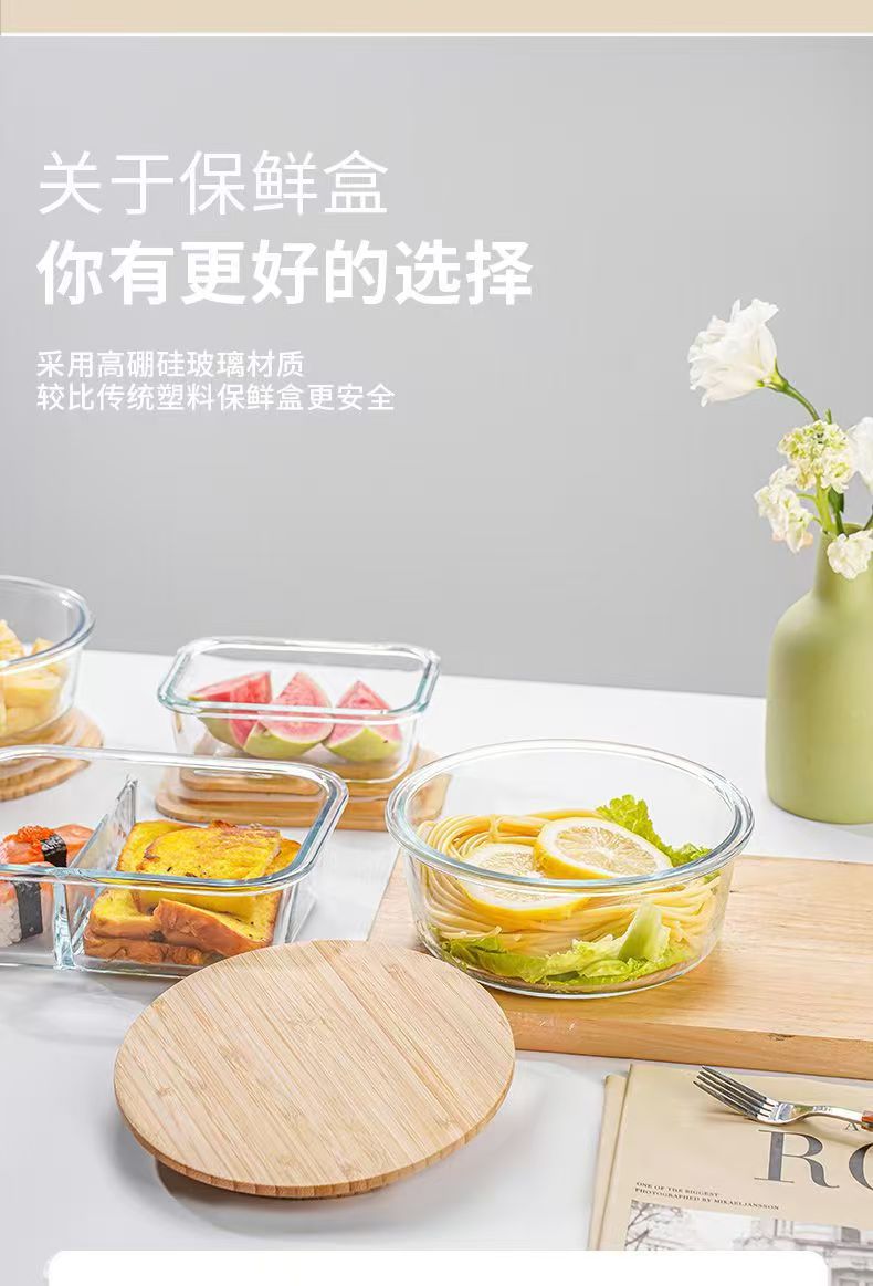 Fiambrera de vidrio redonda, horno de microondas, horno de calefacción especial, caja de mantequilla de frutas frescas con separación de arroz