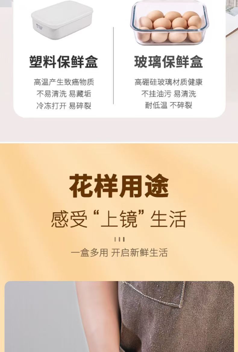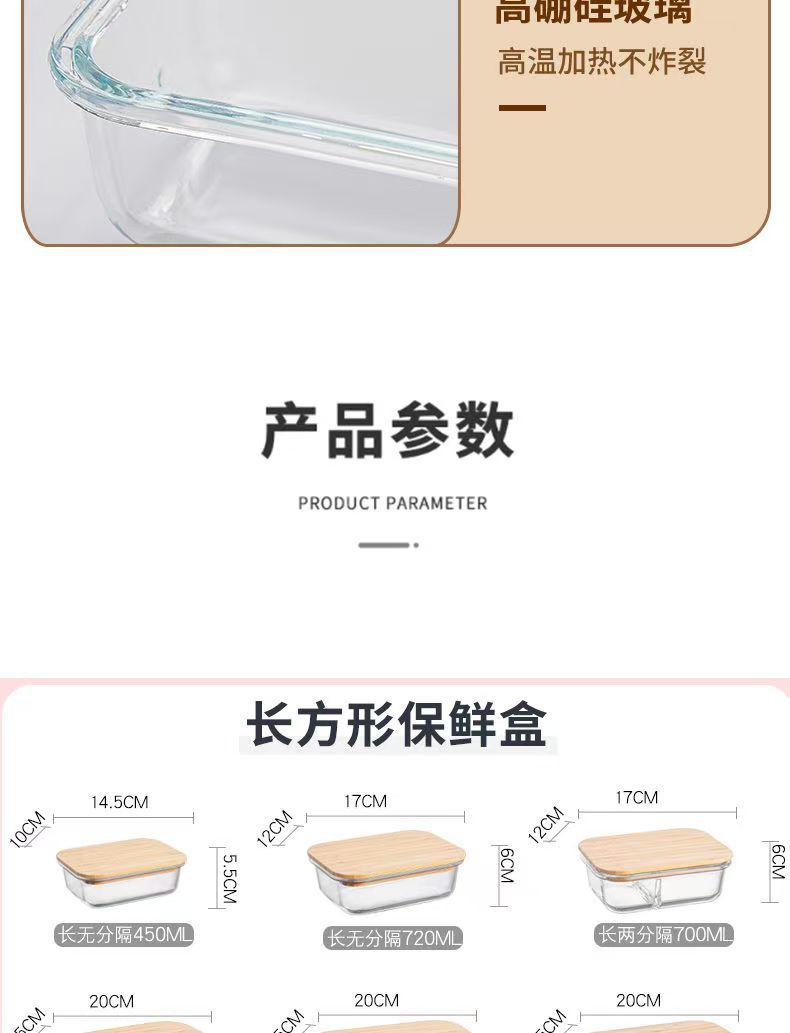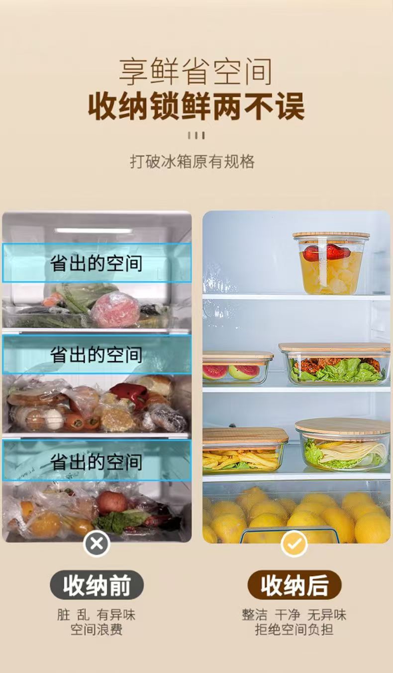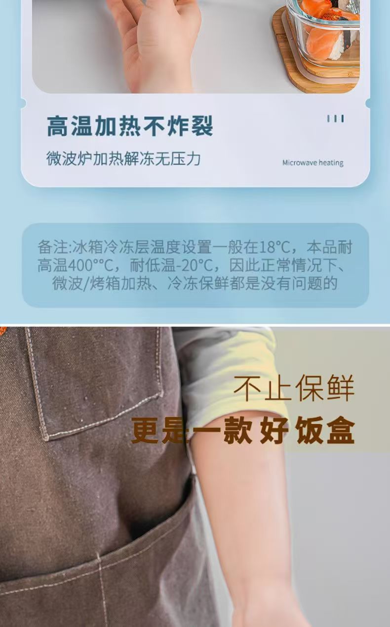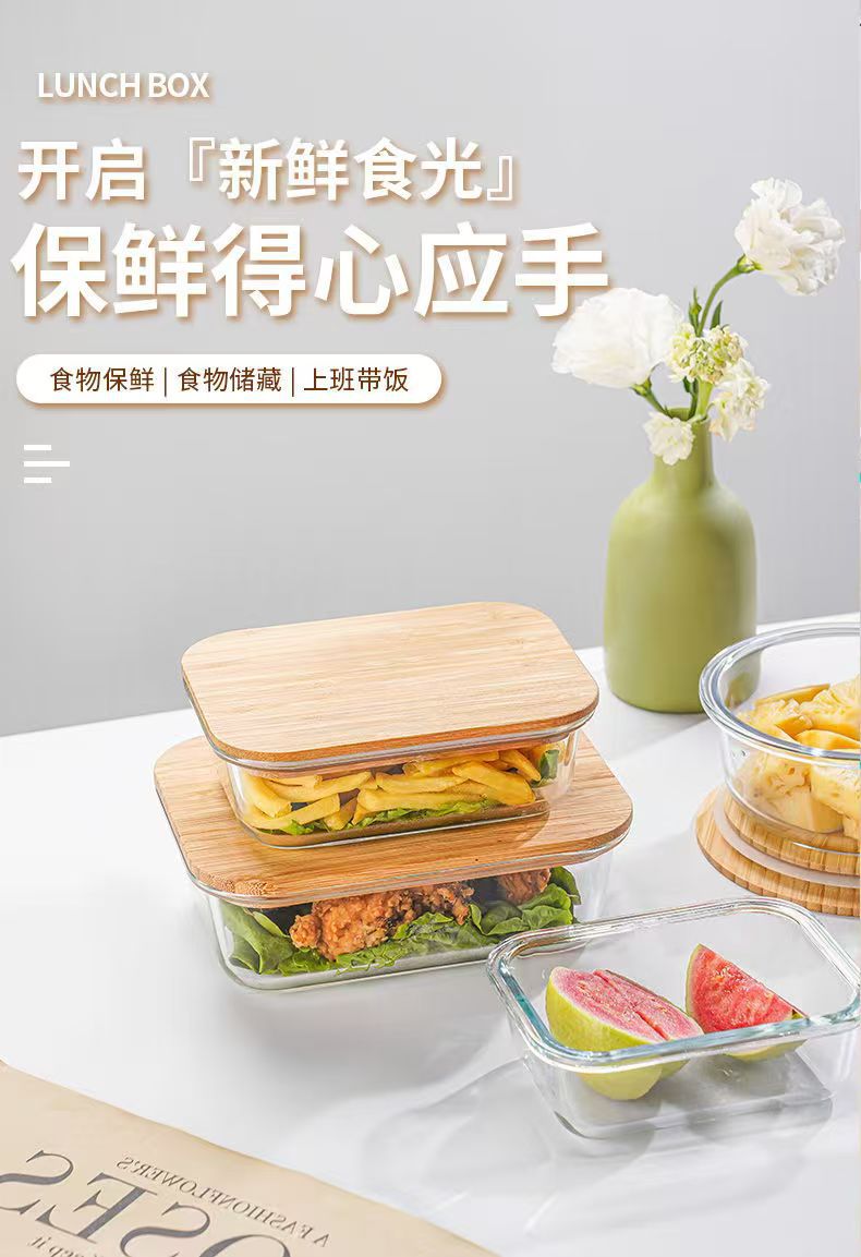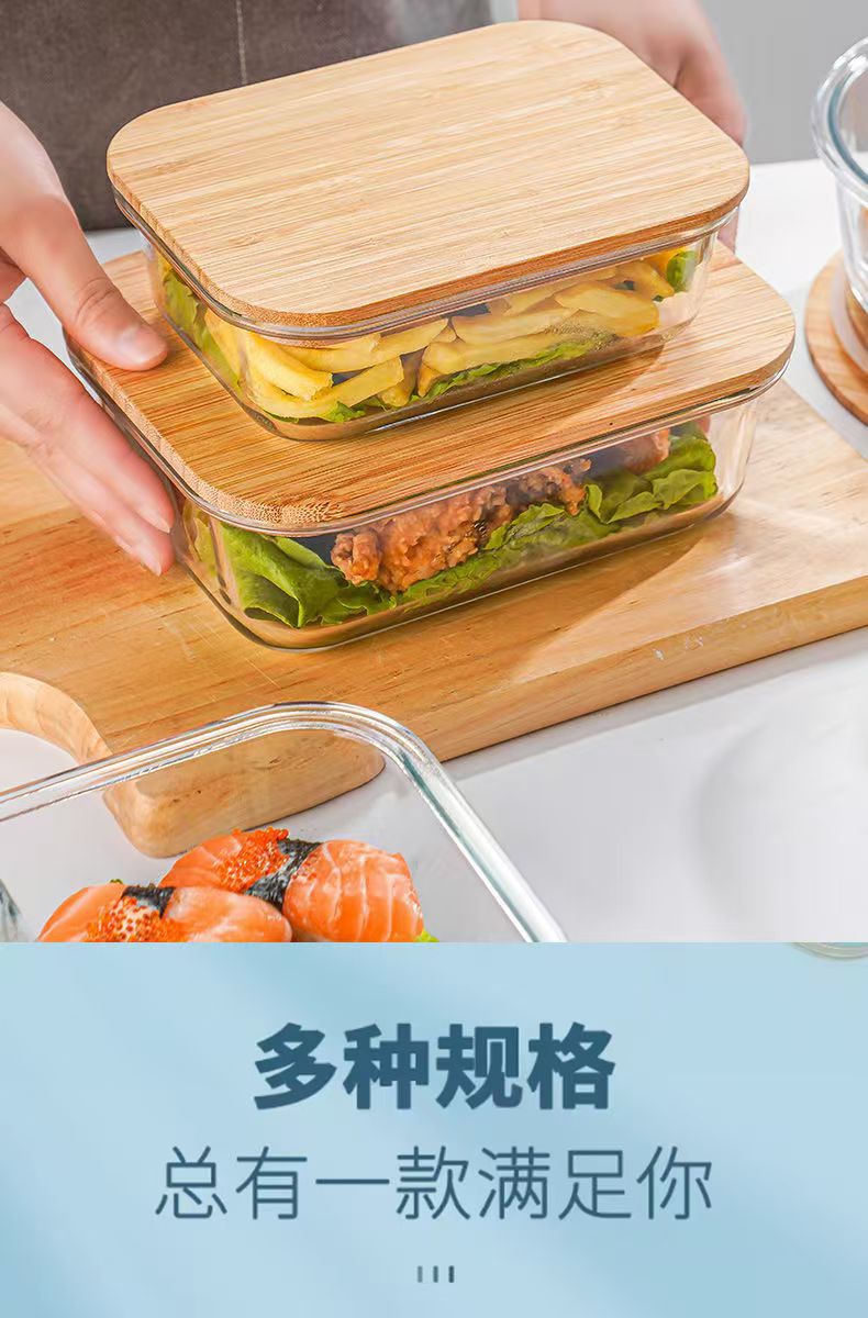 Fiambrera de vidrio redonda, horno de microondas, horno de calefacción especial, caja de mantequilla de frutas frescas con separación de arroz