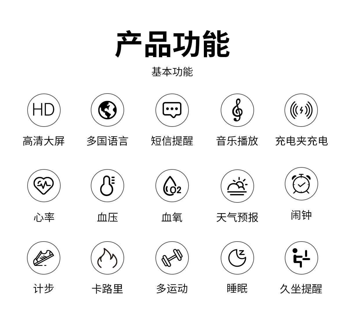 Comercio exterior transfronterizo inteligente pulsera reloj ritmo cardíaco presión arterial ejercicio conteo paso sueño monitoreo información recordatorio regalo electrónico