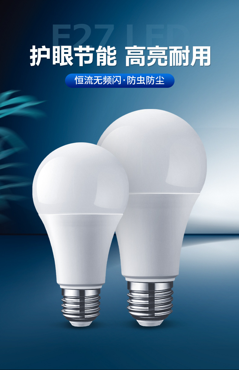 Bombilla led de flujo constante de ahorro de energía luz blanca E27 lámpara de bola de tornillo bolsa de plástico de alto brillo al por mayor lámpara de ahorro de energía de aluminio lámpara LED de cañón